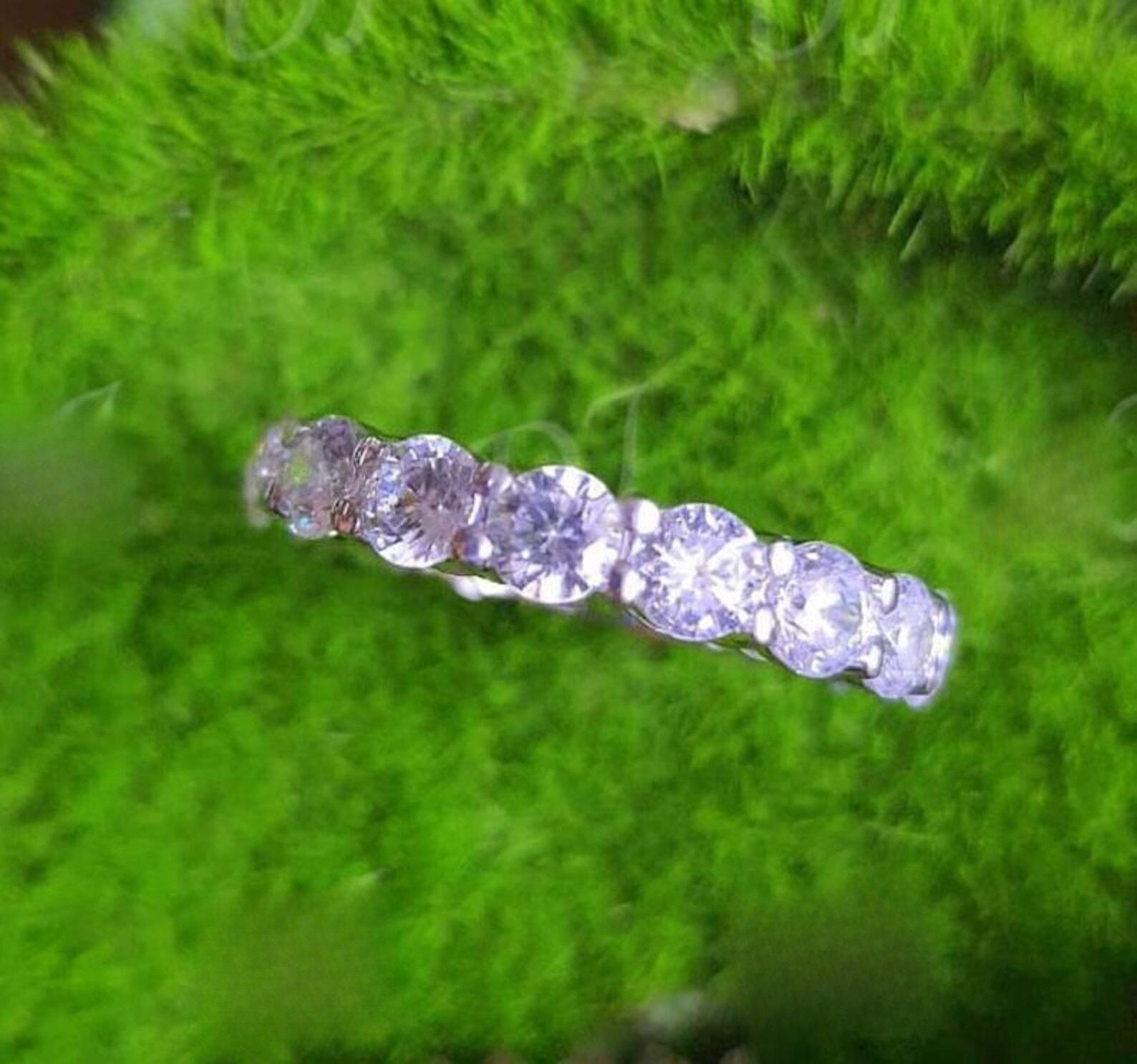 2Ct Round Cut Diamond Ring Full Eternity Band Engagement Ring 14K White Gold Plated 925 Sterling Silver Simulated Diamond Band Ring