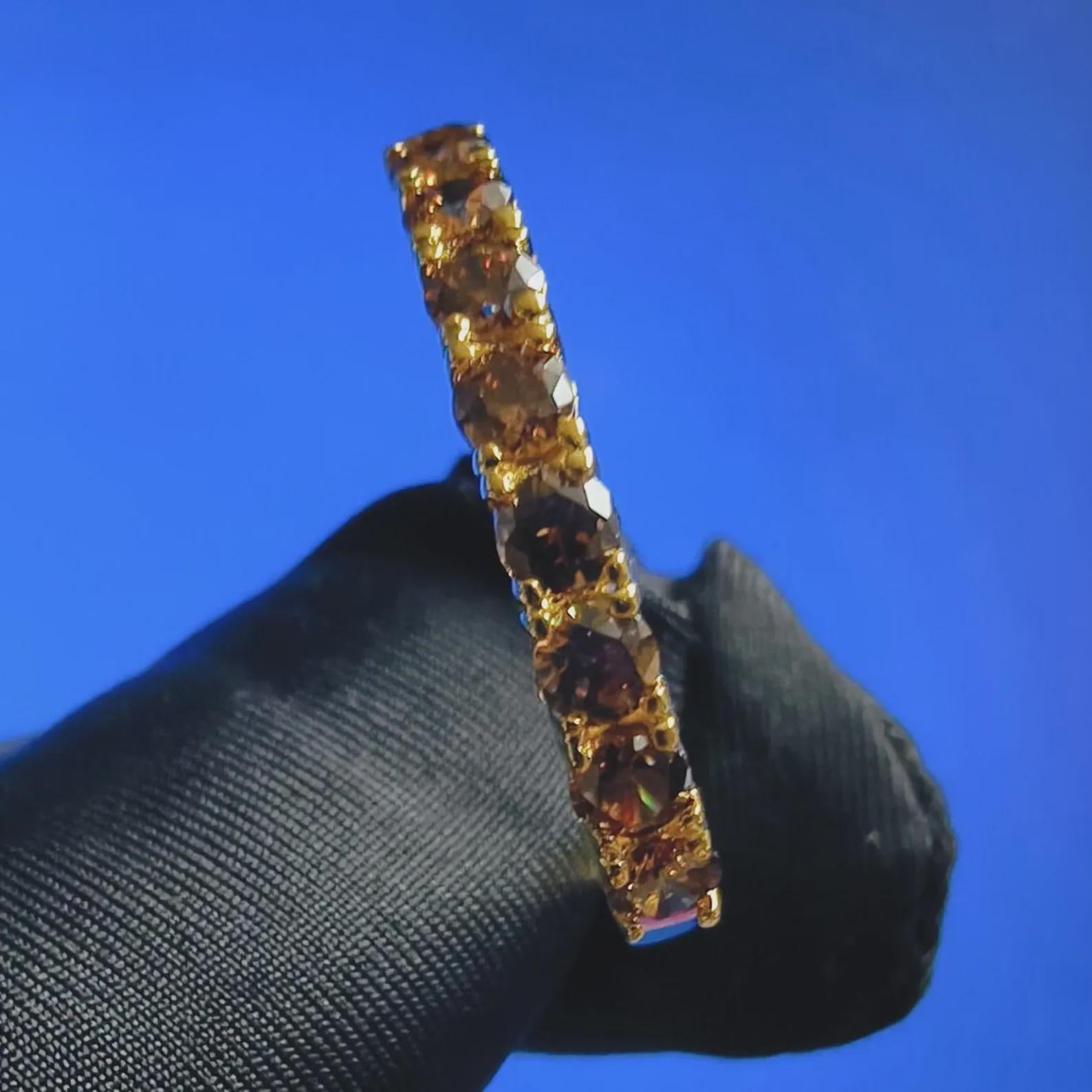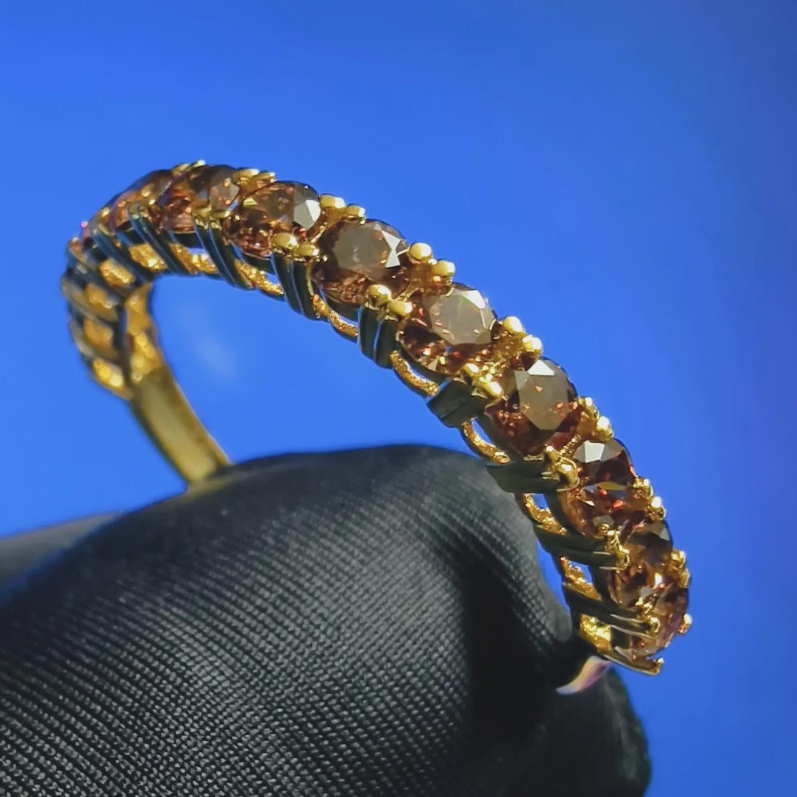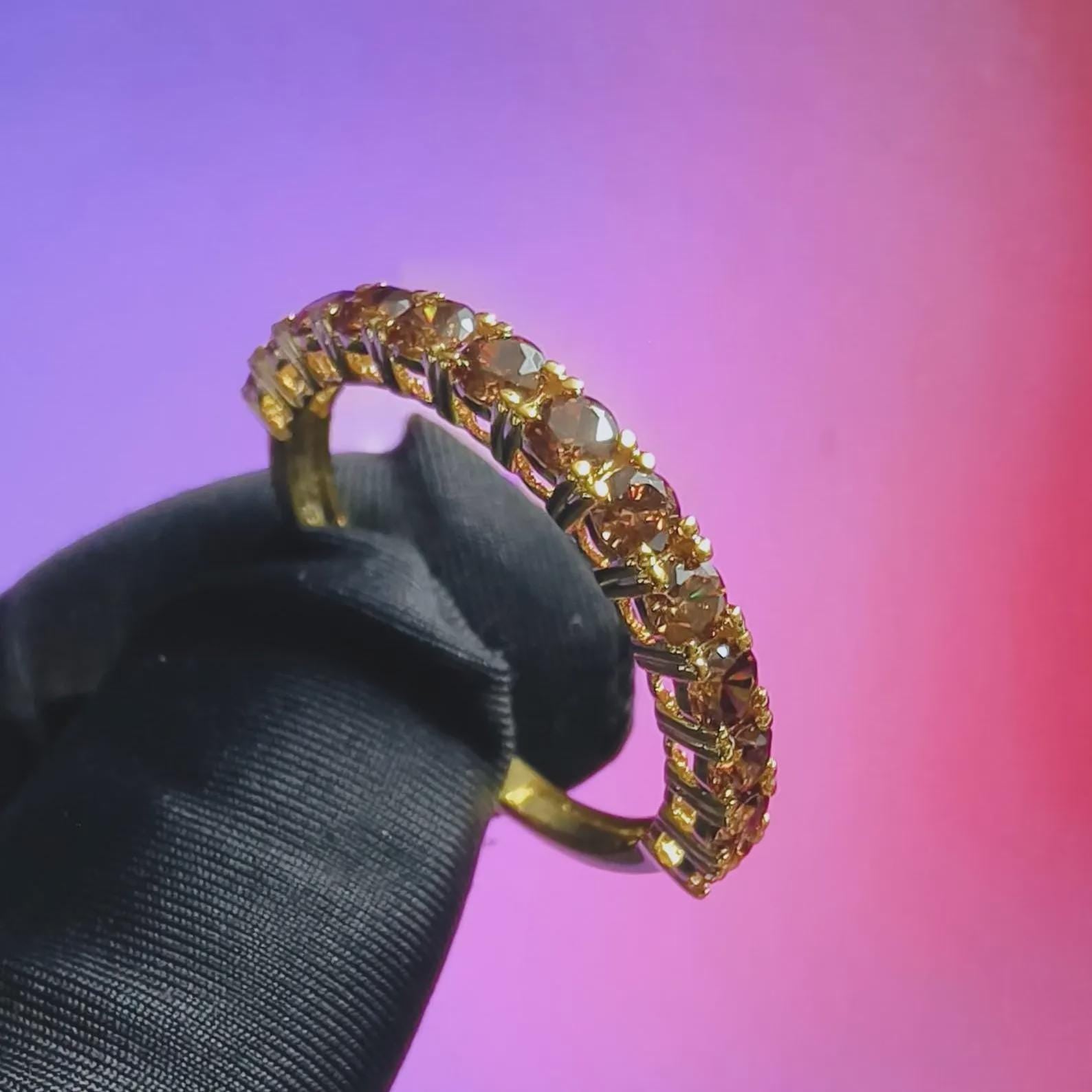 2Ct Round Cut Half Eternity Band Simulated Chocolate Diamond Engagement Ring 14K Yellow Gold Plated 925 Sterling Silver, Anniversary Ring