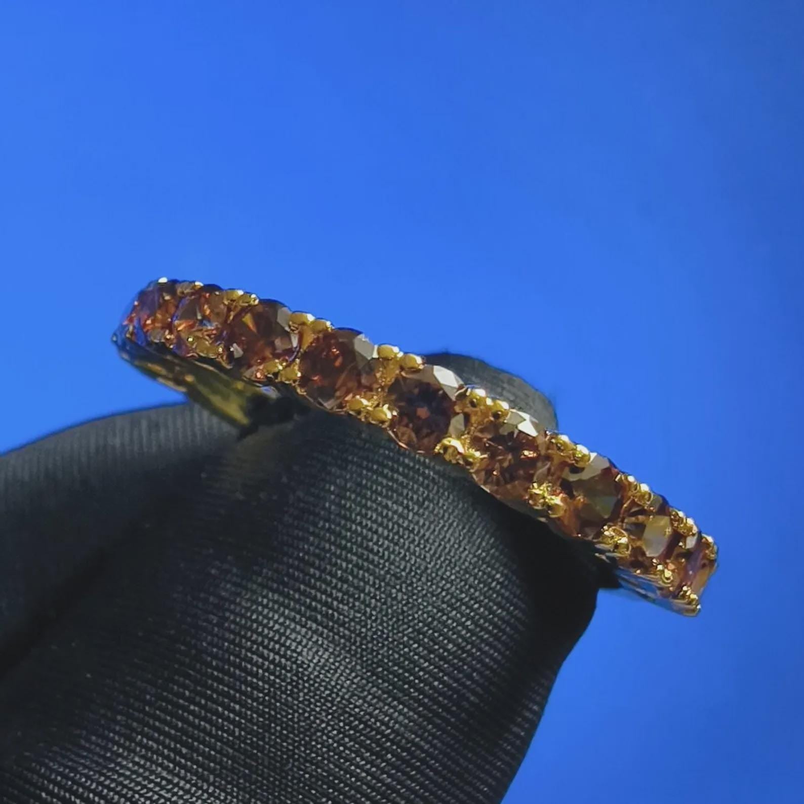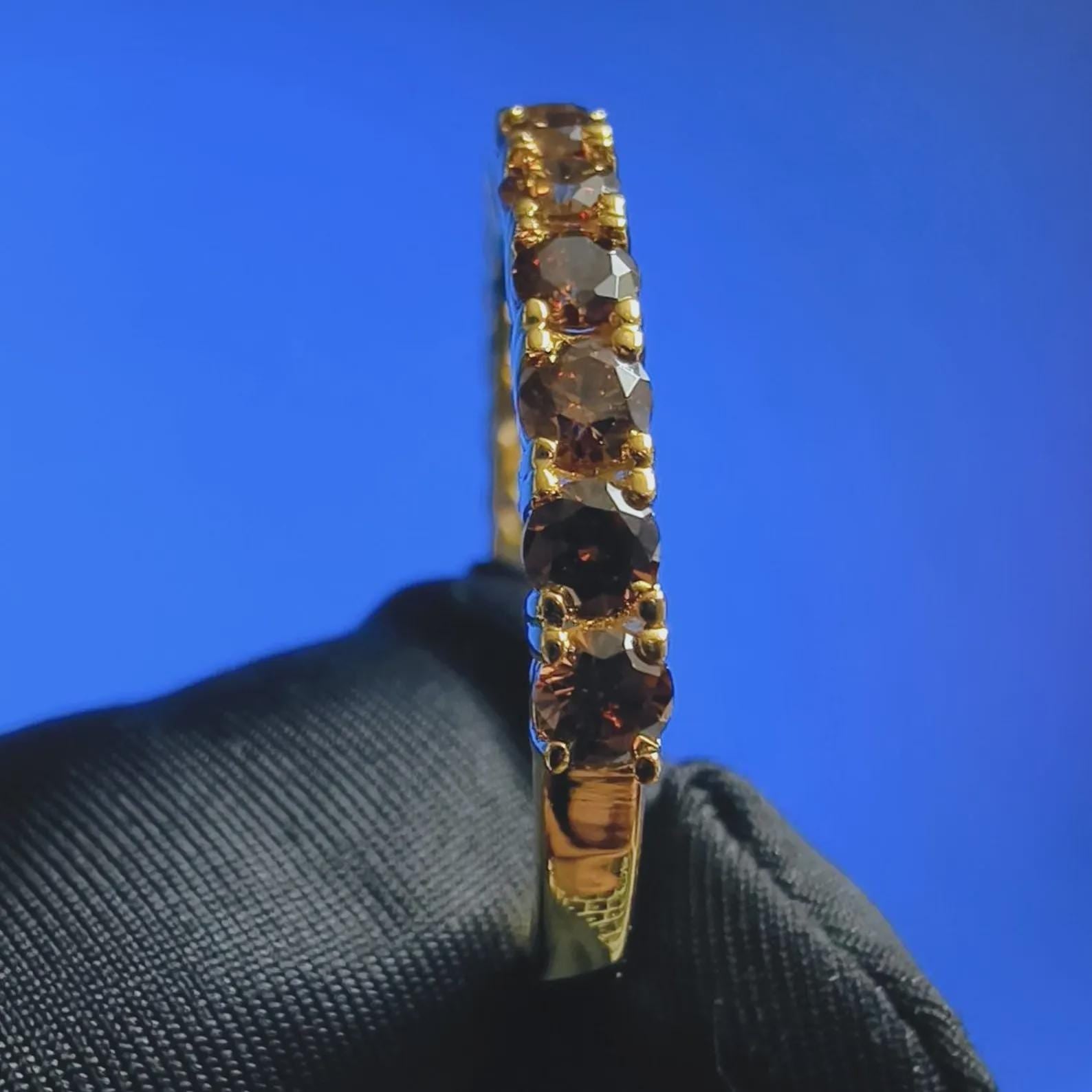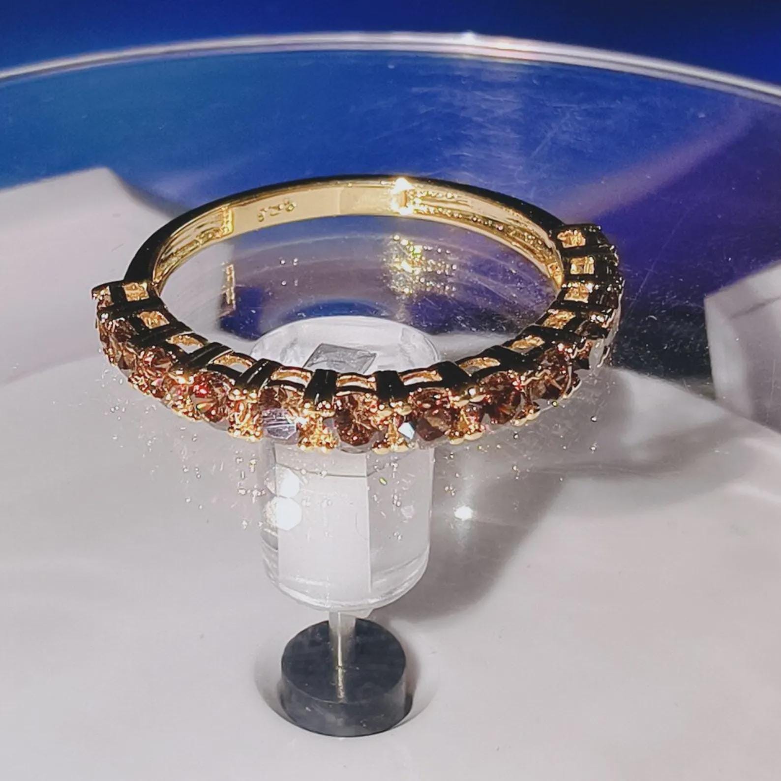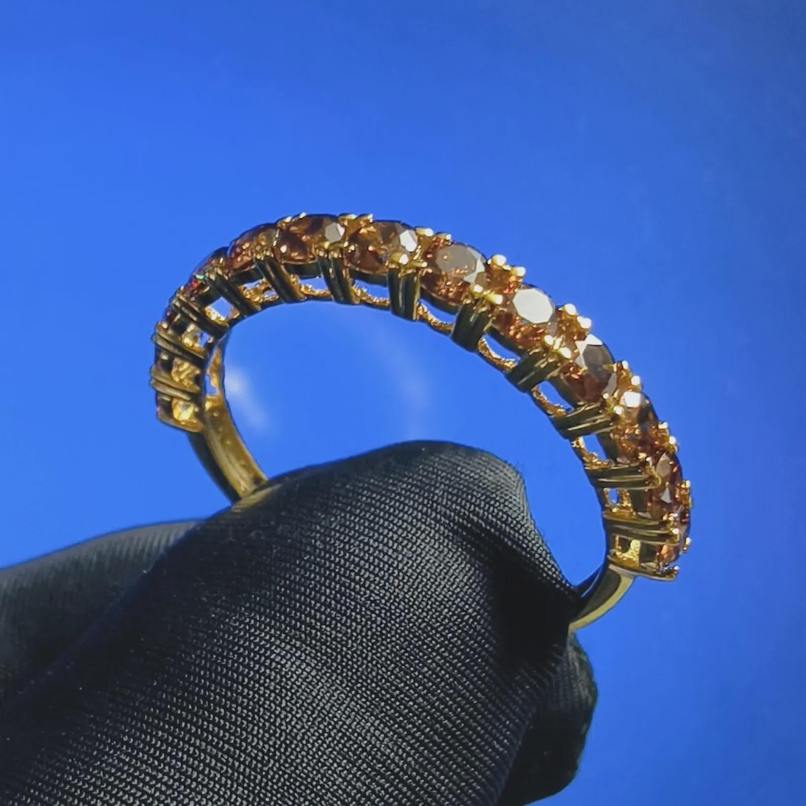 2Ct Round Cut Half Eternity Band Simulated Chocolate Diamond Engagement Ring 14K Yellow Gold Plated 925 Sterling Silver, Anniversary Ring