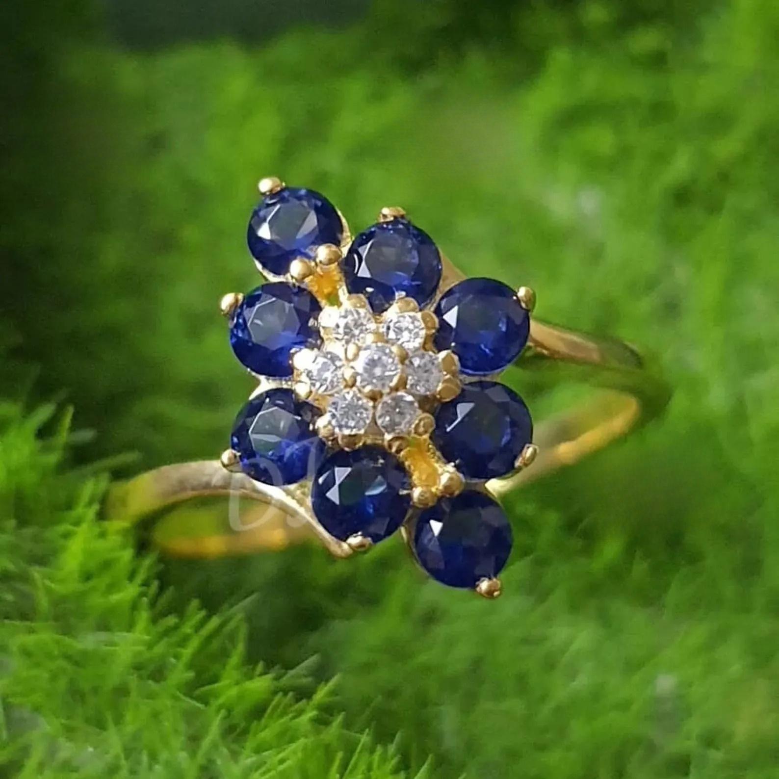 2Ct Round Cut Lab Created Blue Sapphire 14K Yellow Gold Plated Cluster Engagement, Wedding, Anniversary, Birthday Gift For Her