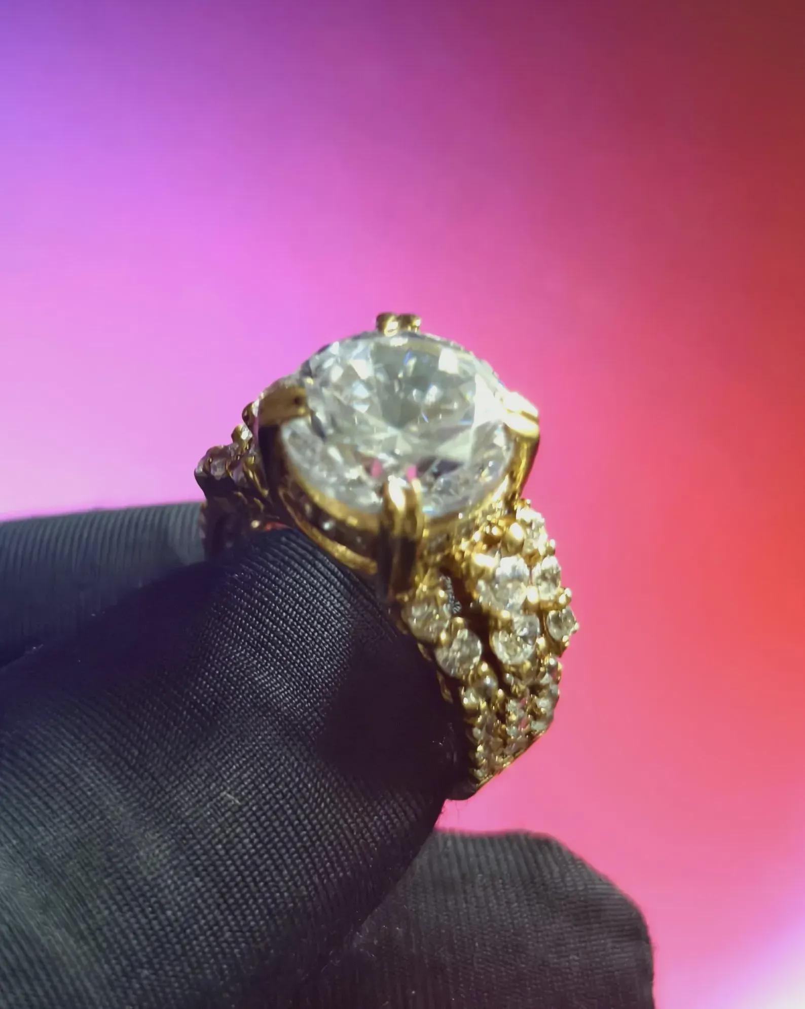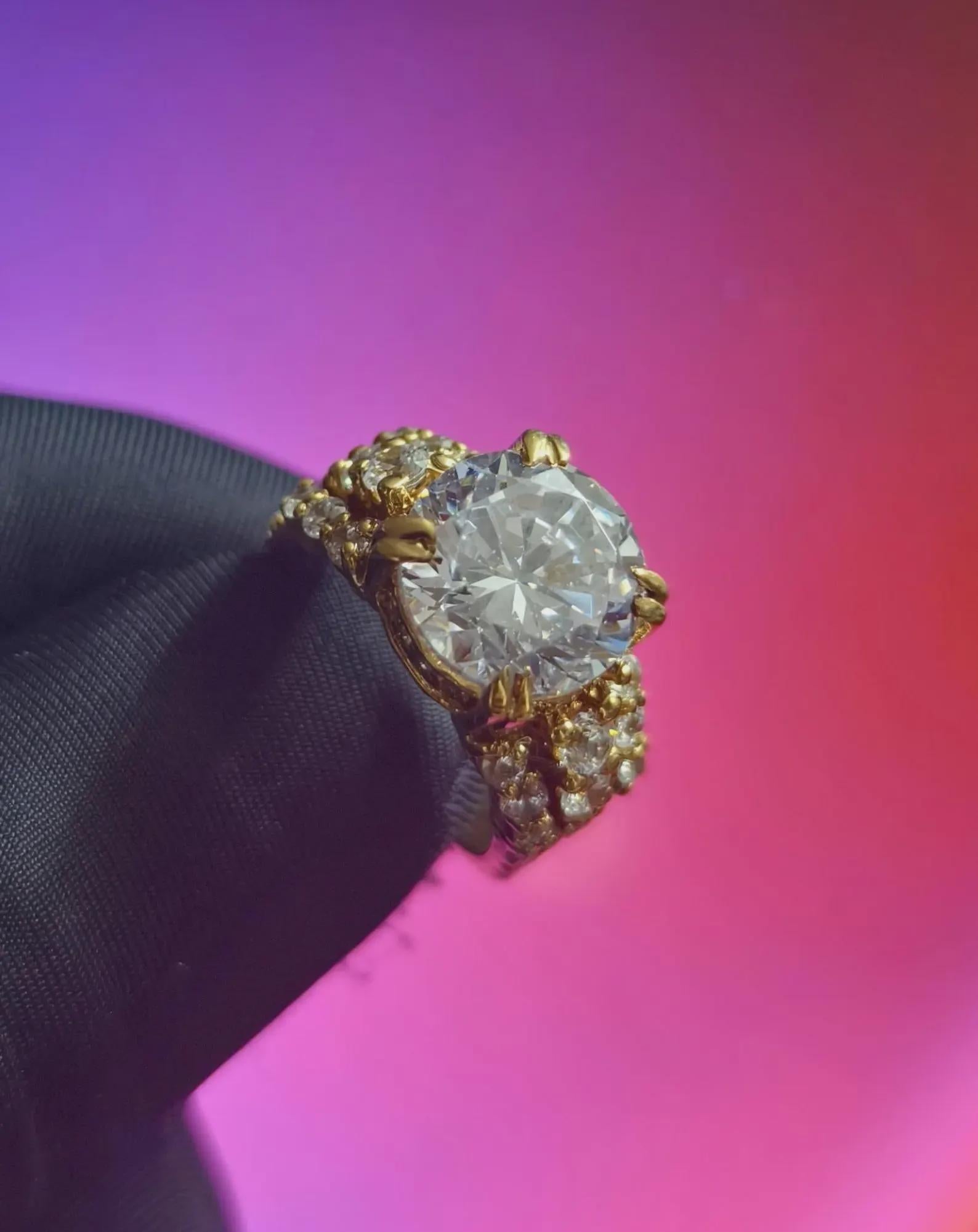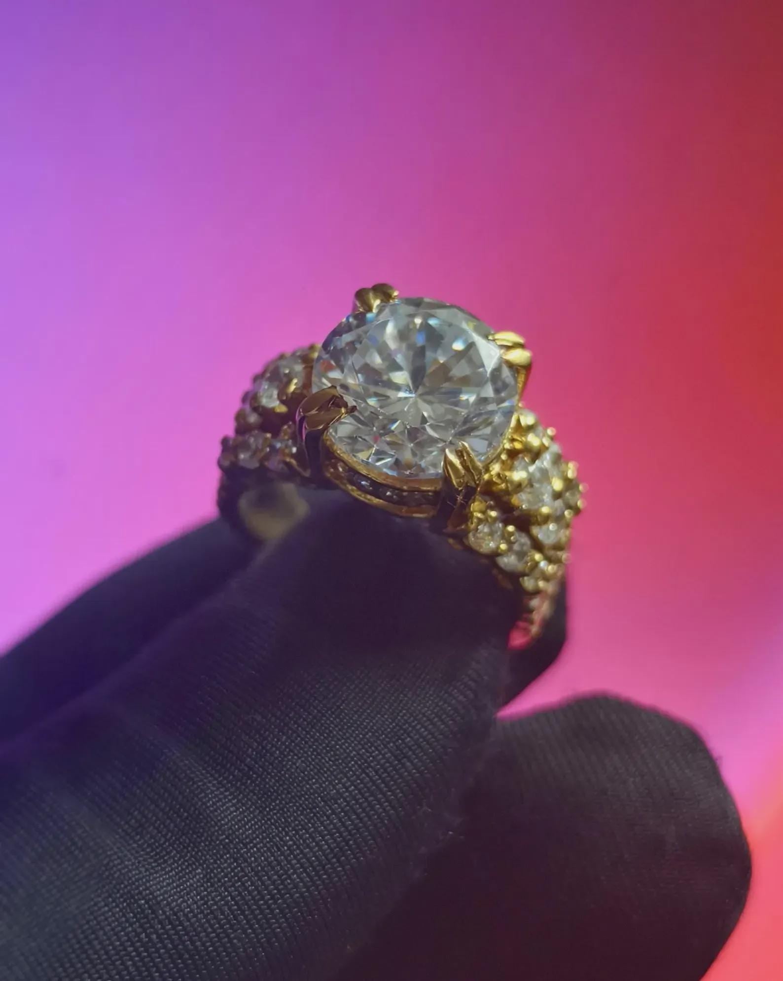 2Ct Round Cut Lab Created Diamond Solitaire Prong Setting Ring Round Cut 14K Yellow Gold Plated 925 Silver, Anniversary Ring, Wedding Gift
