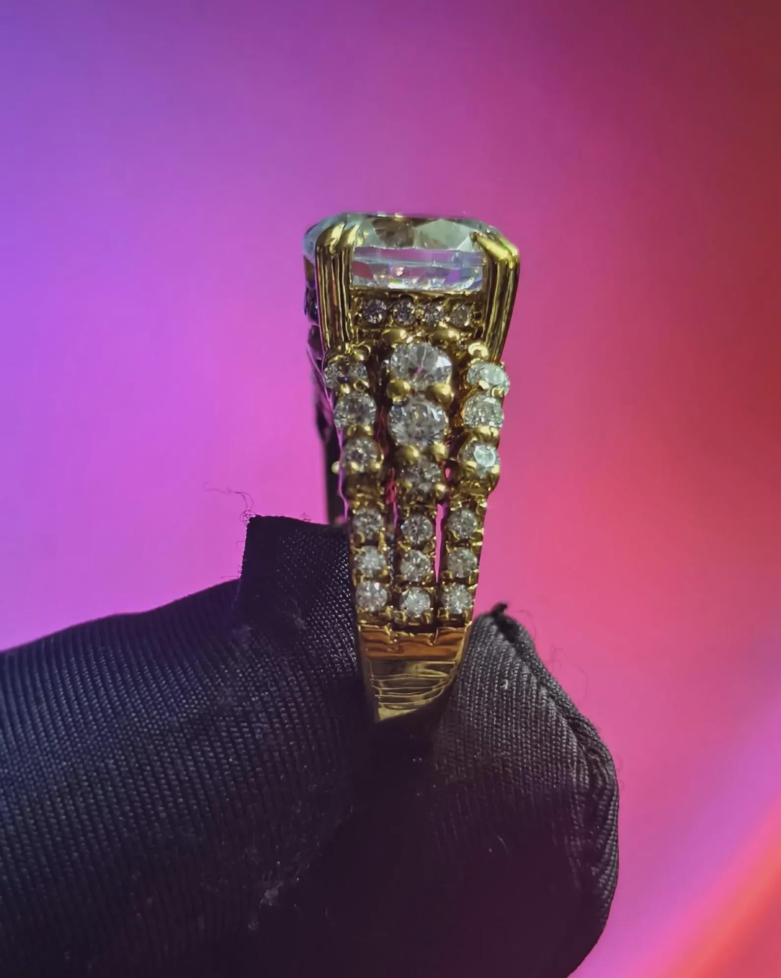 We would be more than happy to customize the item according to your specific requirements. If you have any special requests, please feel free to contact us, and we will do our best to accommodate them. For additional personalization, we can modify the gemstones, the width of the band, and the curvature of the rings to match your desired style and preferences.