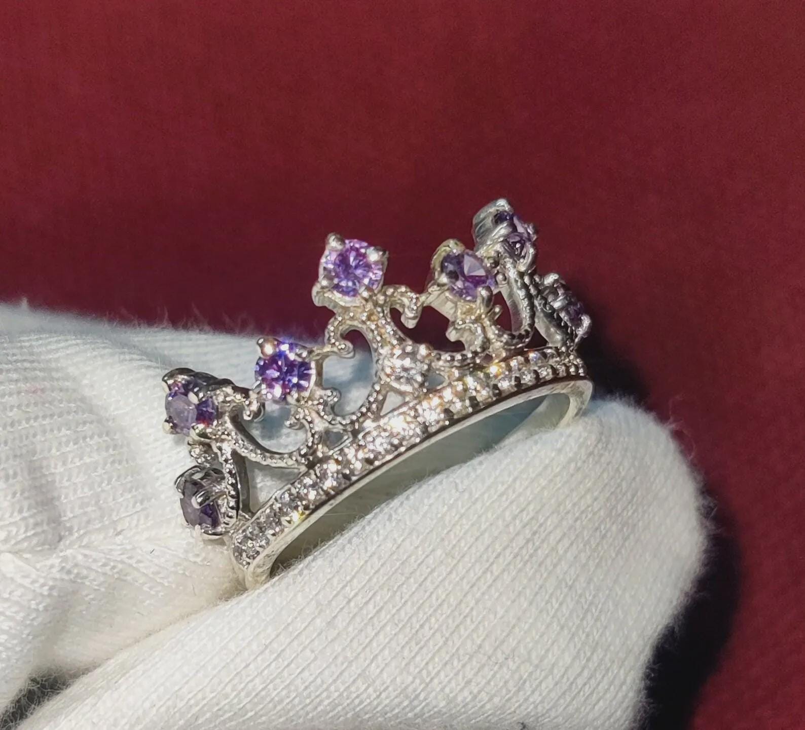 2Ct Round Cut Simulated Amethyst Crown Engagement Anniversary Ring Prong 14K White Gold Finish 925 Sterling Silver Simulated Diamond Band