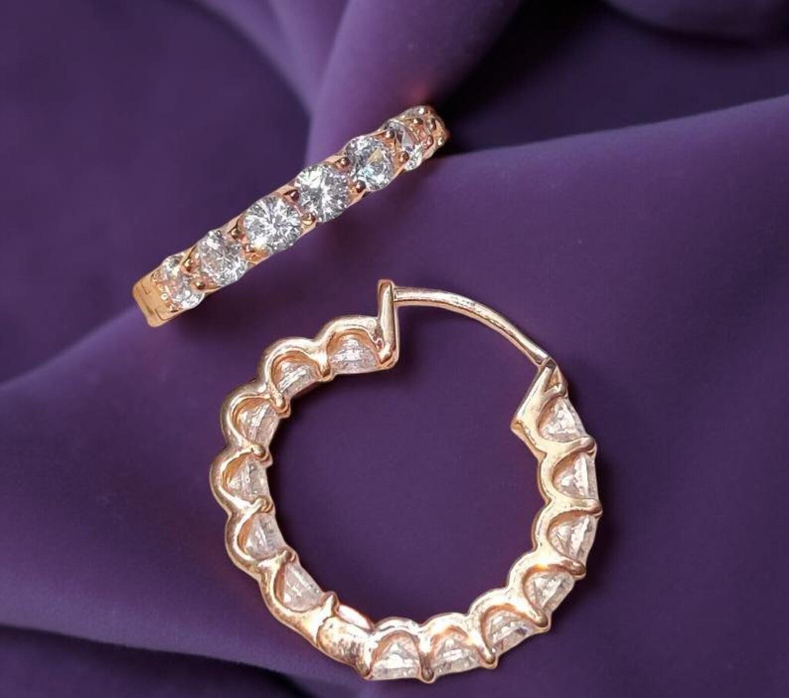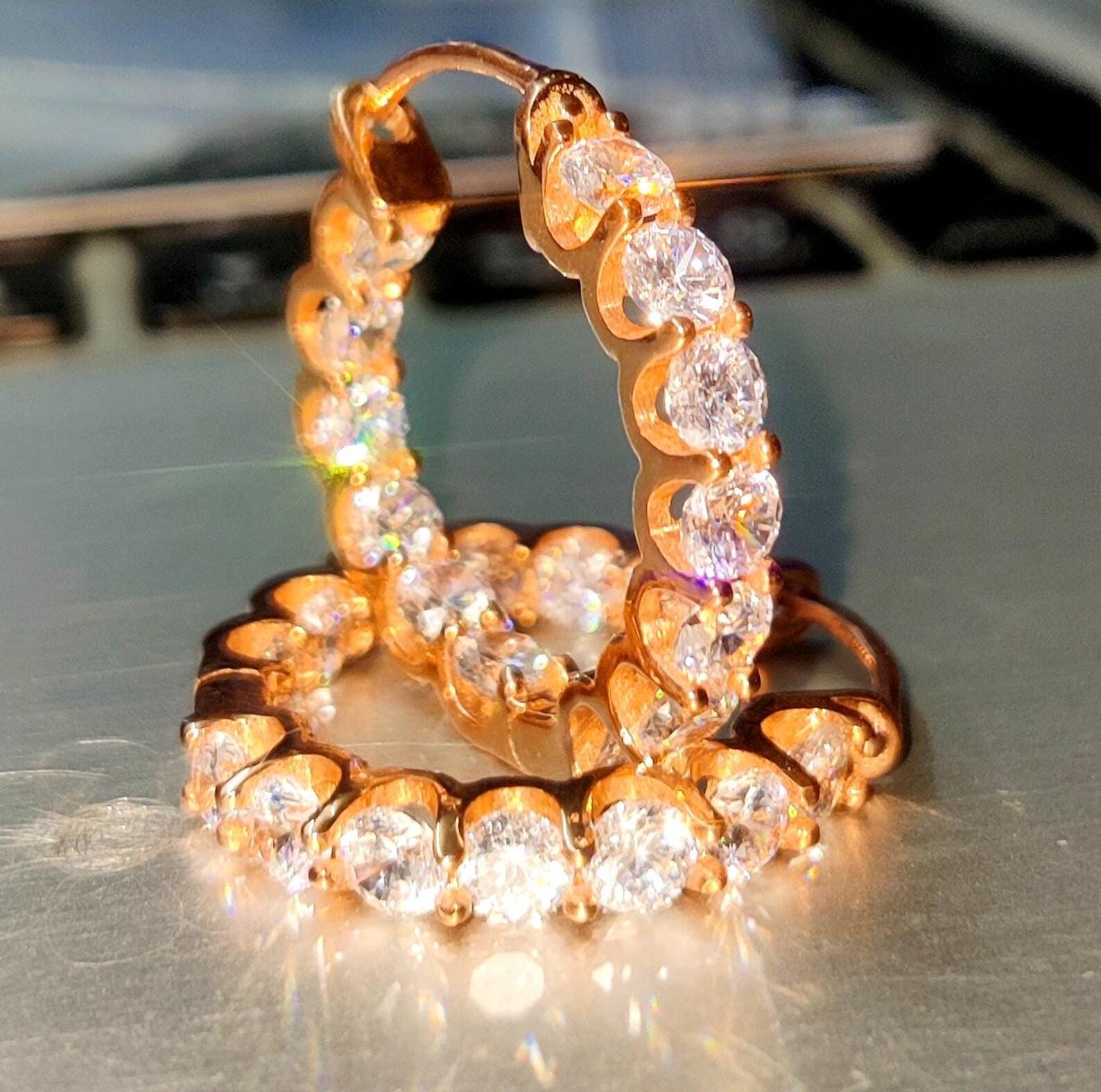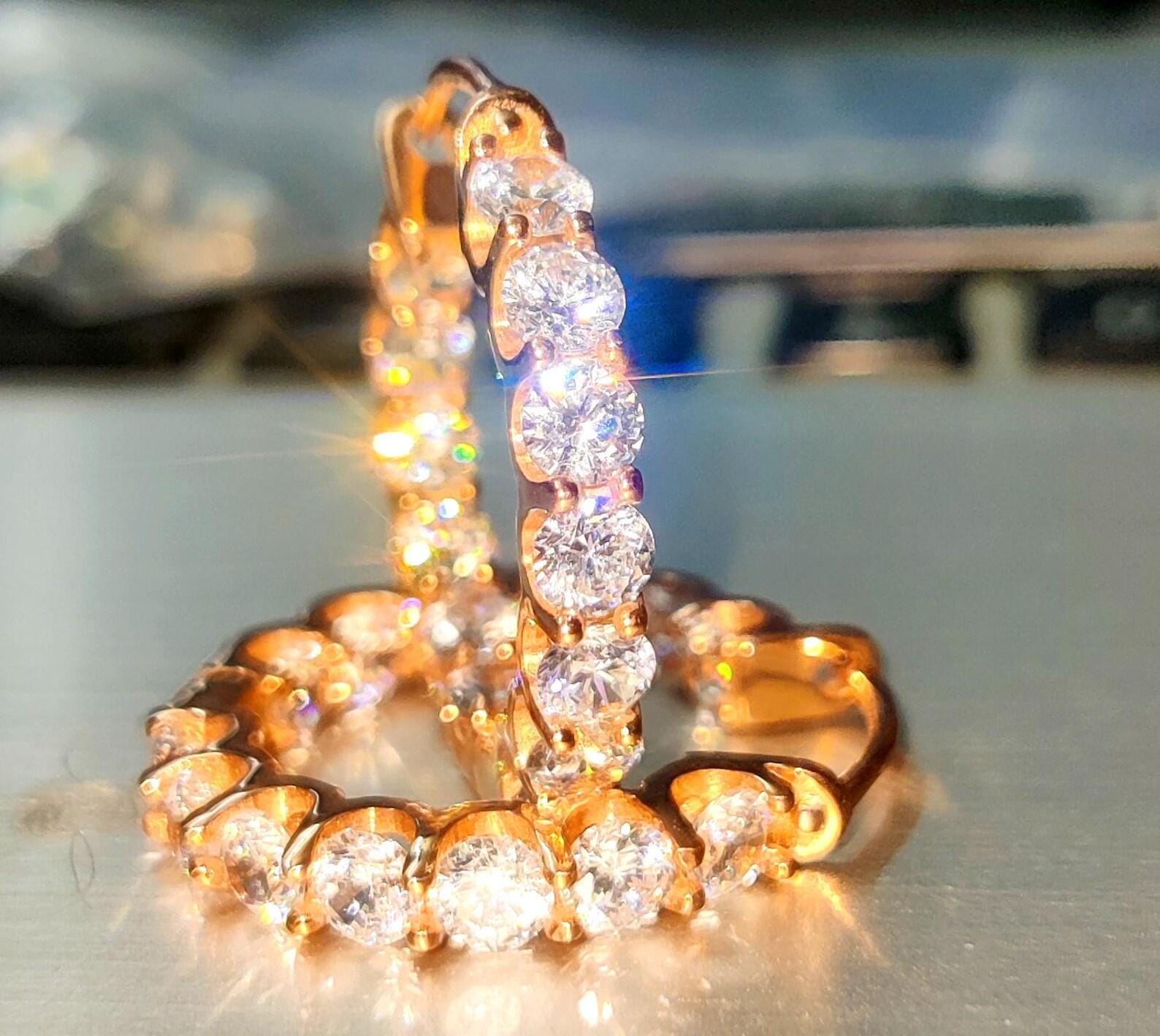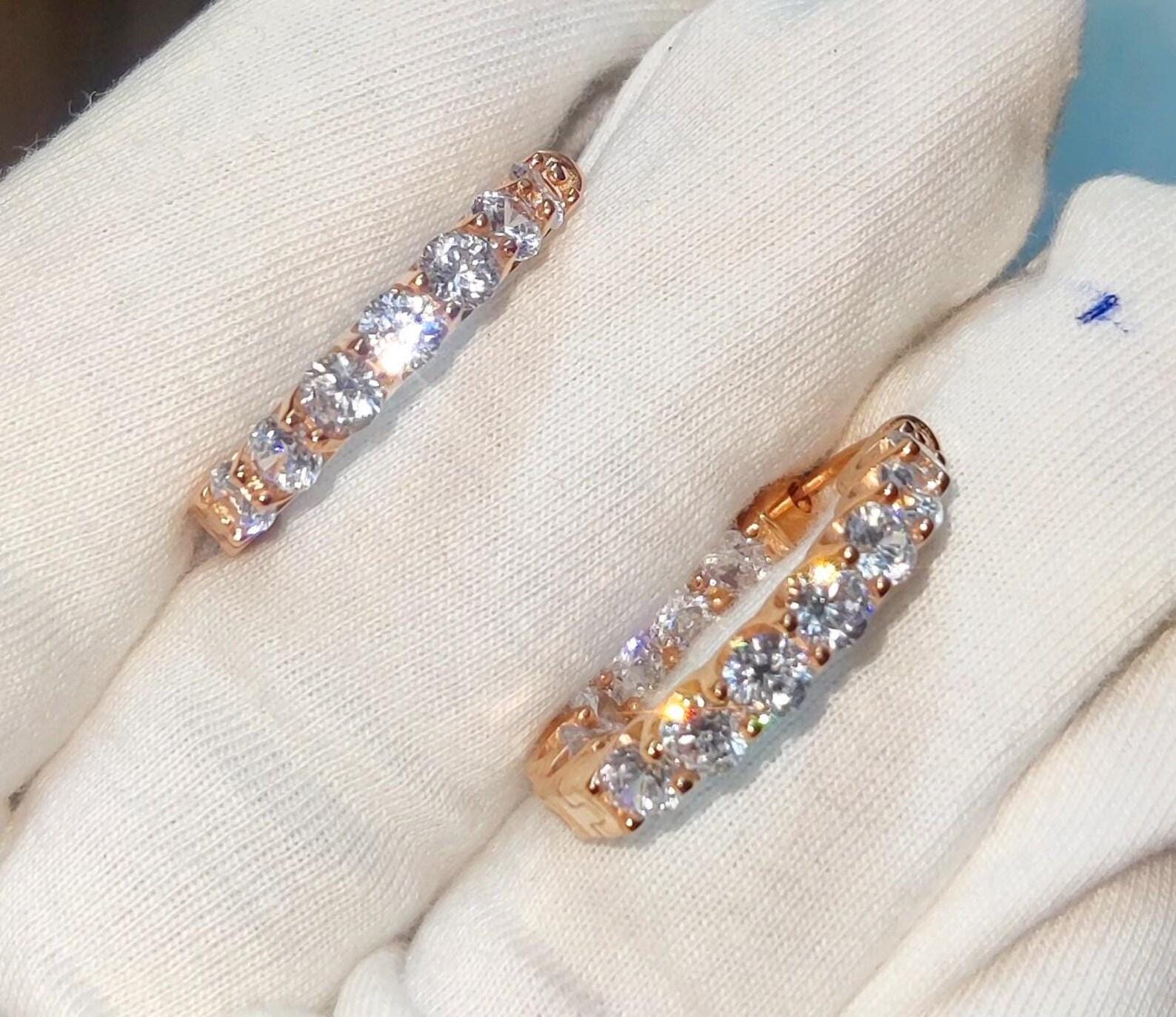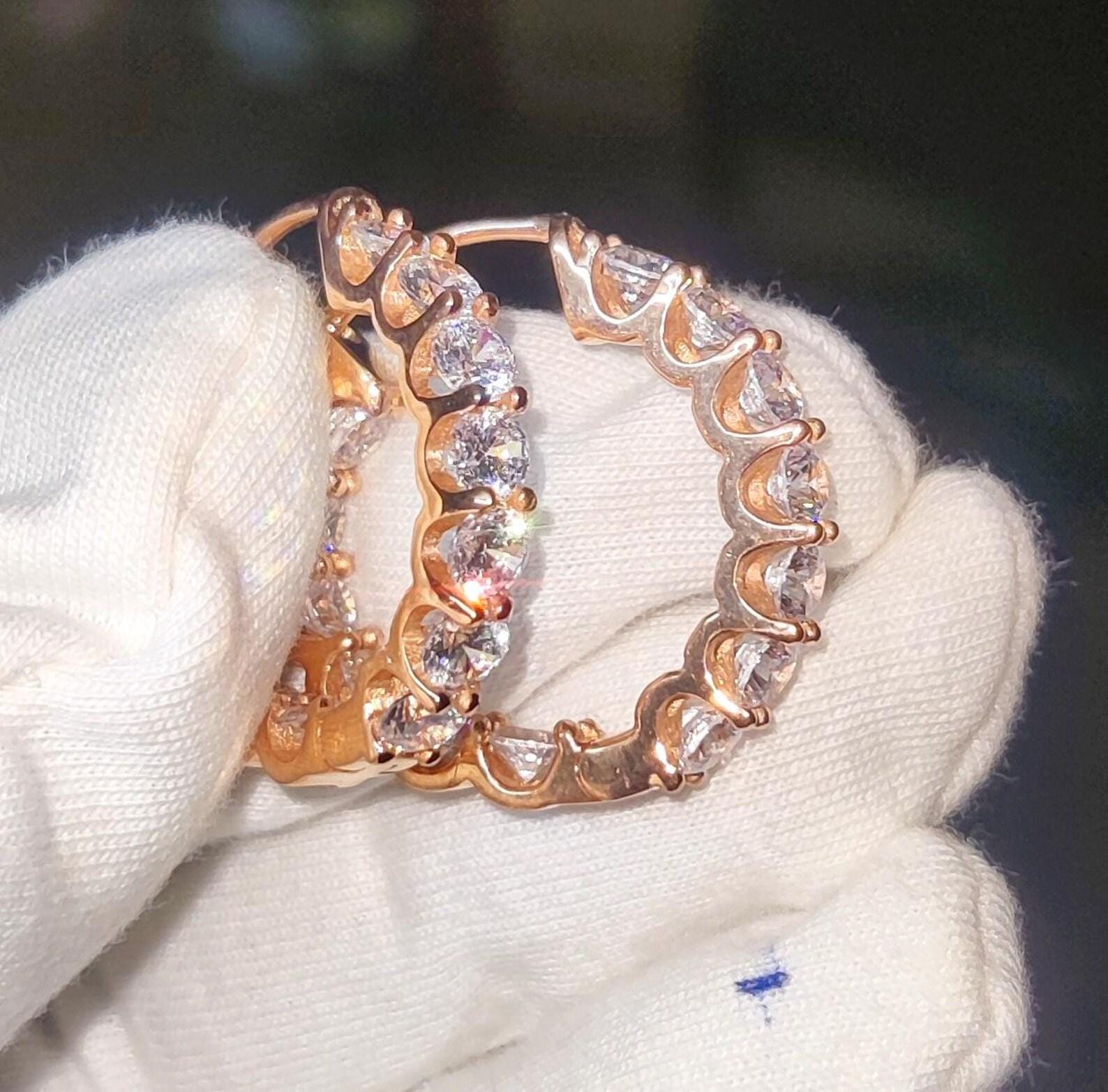 2Ct Round Cut Simulated Diamond Hoop Women Earrings 14K Rose Gold Plated, Anniversary, Birthday, Wedding Gift For Her
