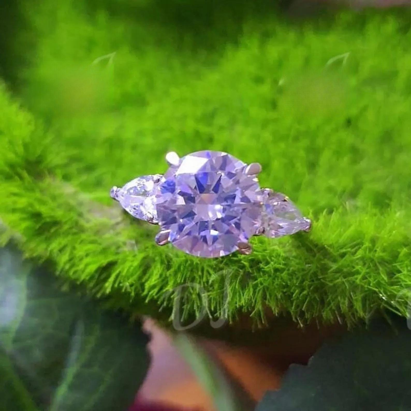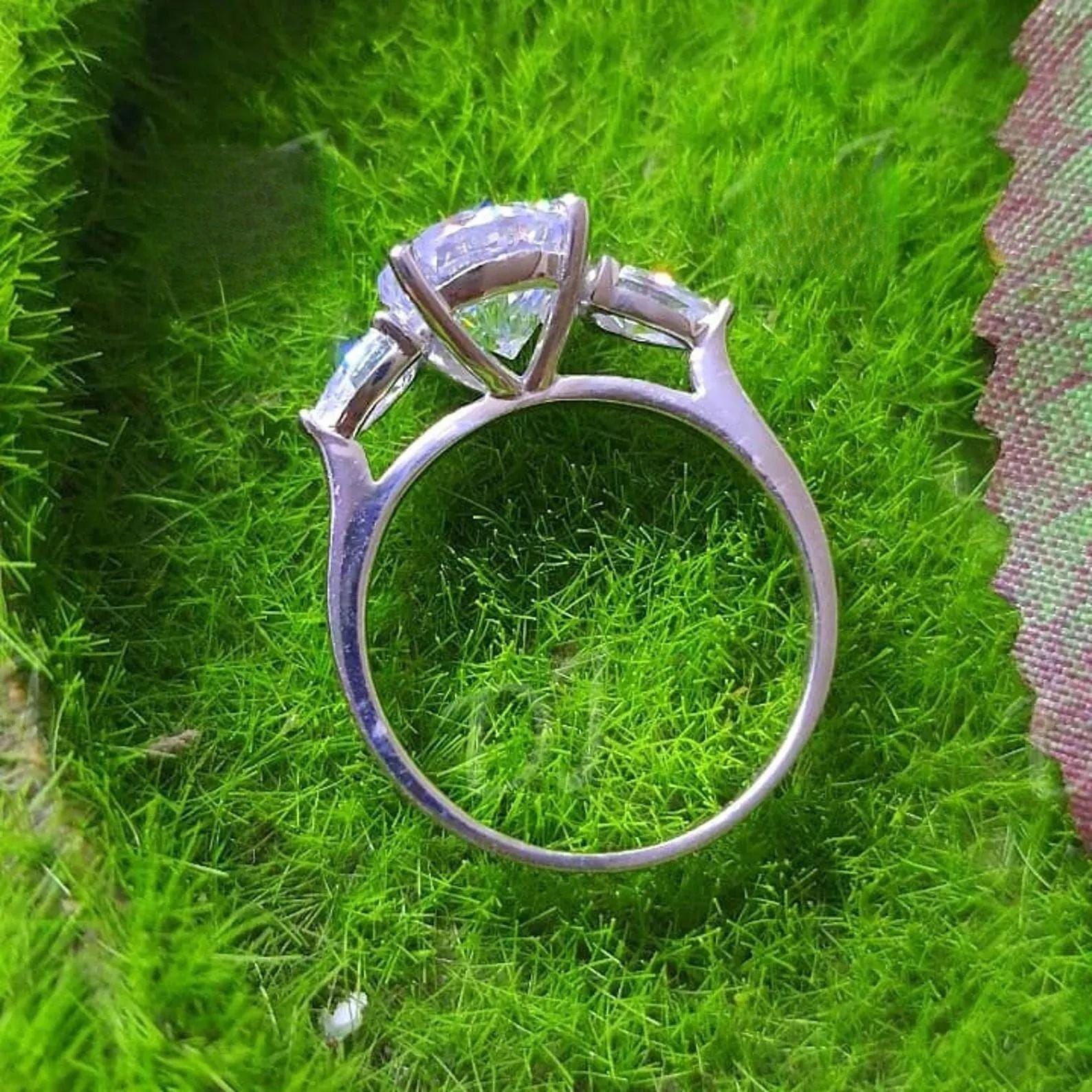 2Ct Round Cut Simulated White Diamond Three Stone Wedding Engagement Anniversary Ring 14k White Gold Plated- 925 Silver, Gift for Her