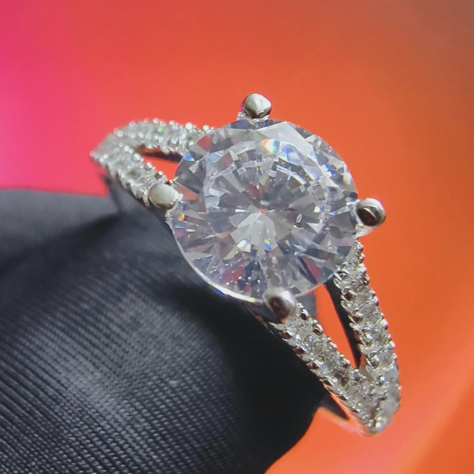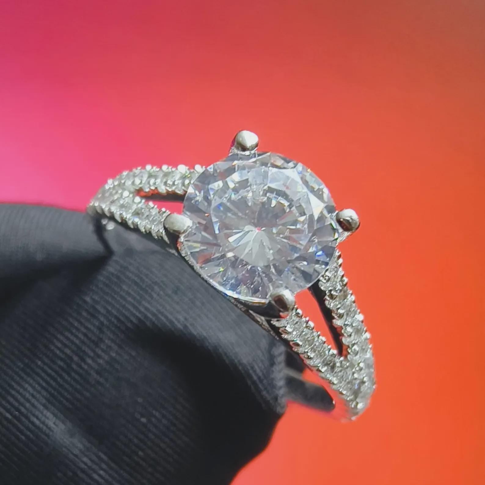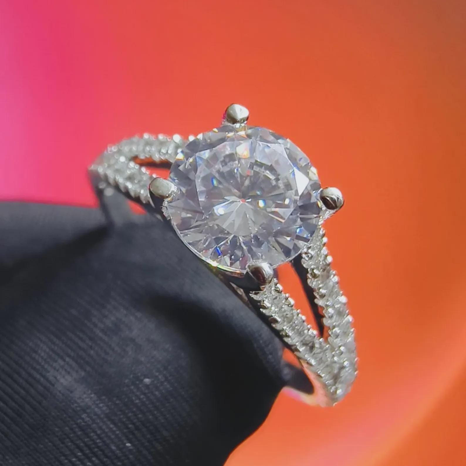 2Ct Round Cut Simulated White Diamond Wedding Engagement Anniversary Ring 14k White Gold Plated- 925 Silver, Gift for Her