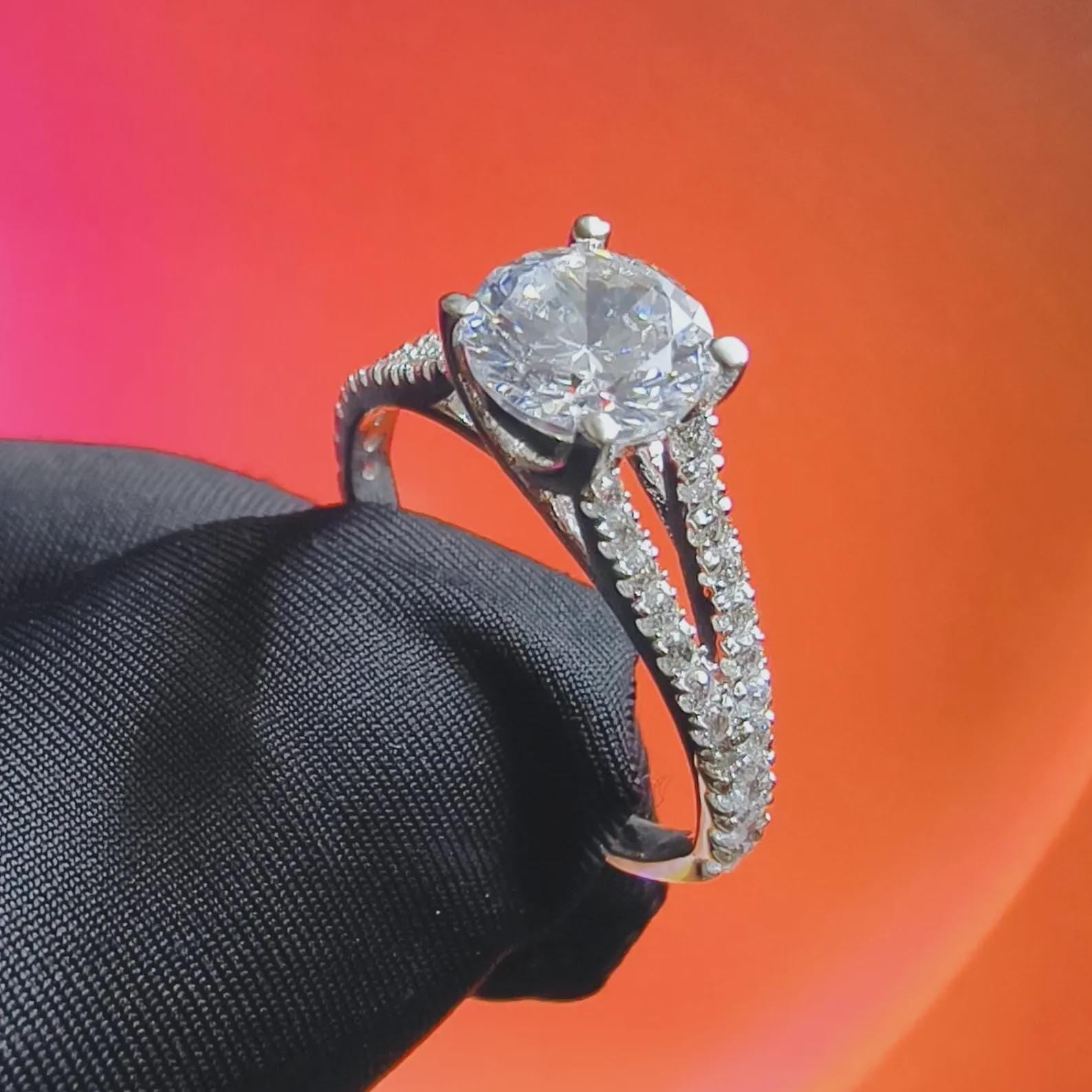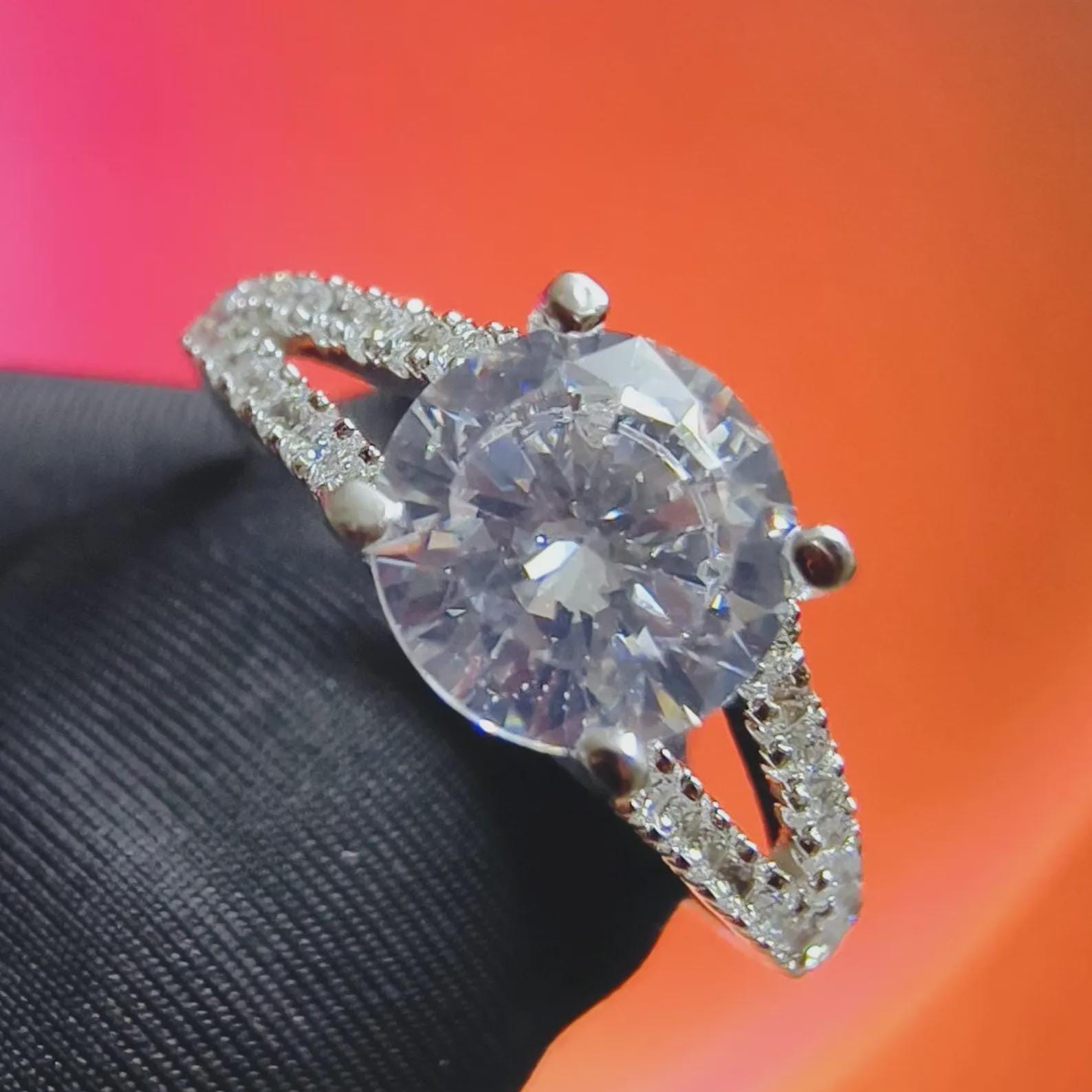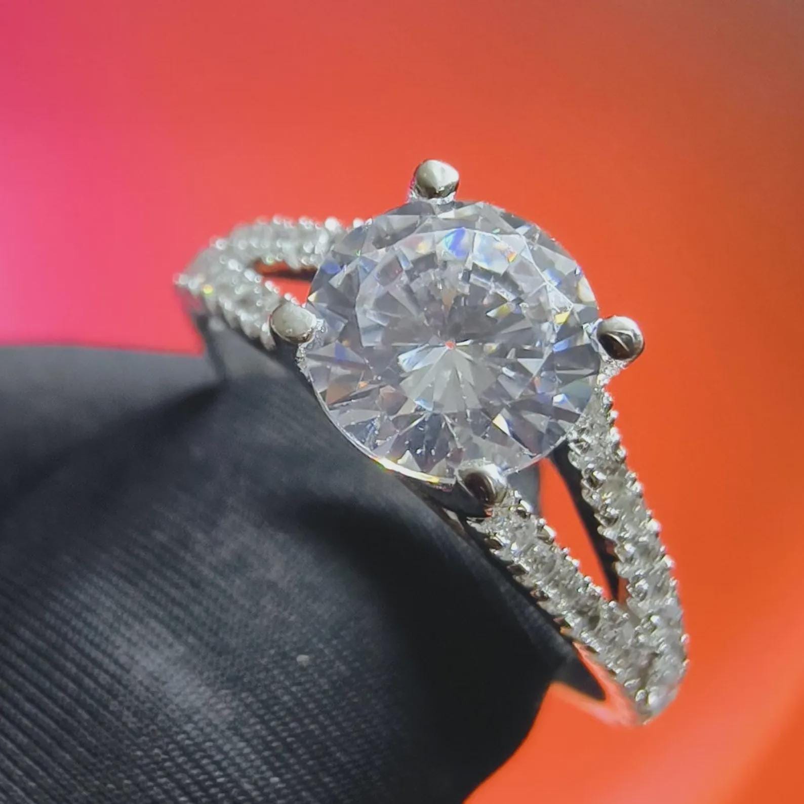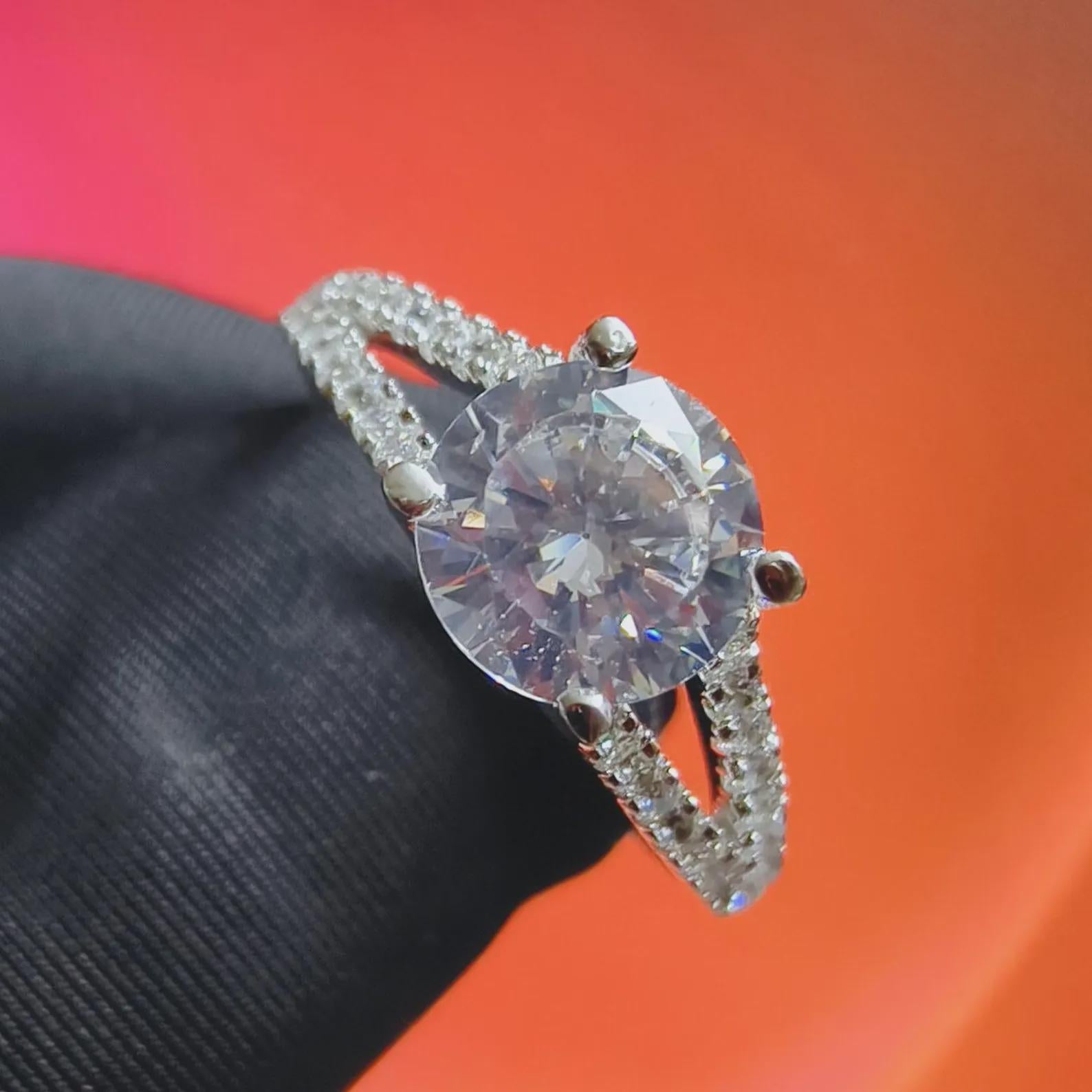 2Ct Round Cut Simulated White Diamond Wedding Engagement Anniversary Ring 14k White Gold Plated- 925 Silver, Gift for Her