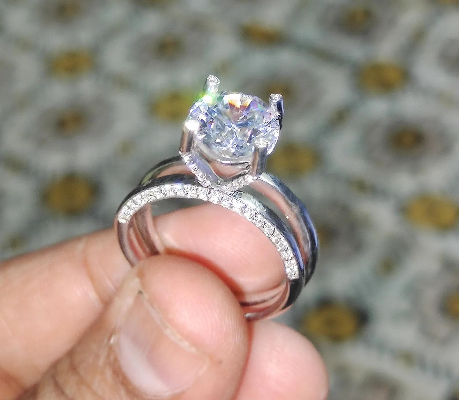 We would be more than happy to customize the item according to your specific requirements. If you have any special requests, please feel free to contact us, and we will do our best to accommodate them. For additional personalization, we can modify the gemstones, the width of the band, and the curvature of the rings to match your desired style and preferences.