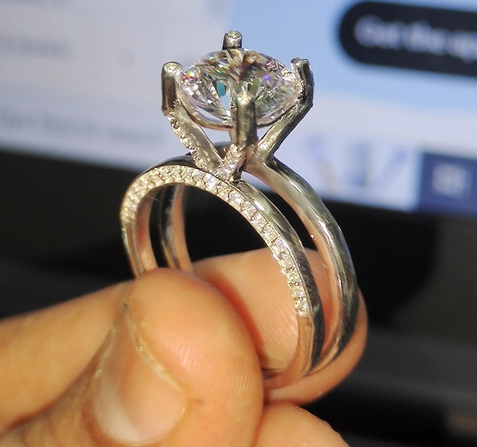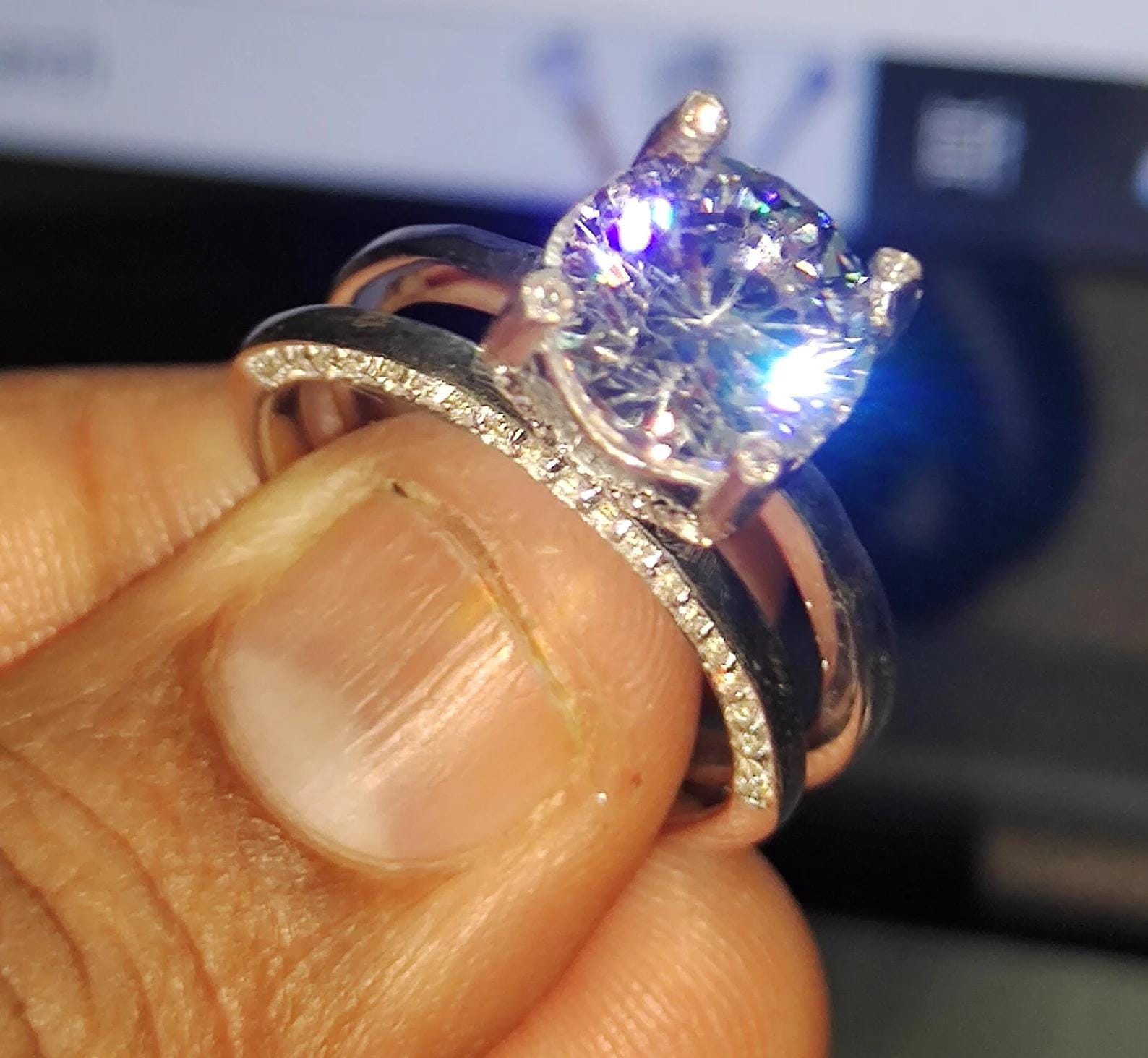 2Ct Round Cut Simulated White Diamond Wedding Women Engagement Anniversary Band Ring 14k White Gold Plated- 925 Silver, Gift for Her