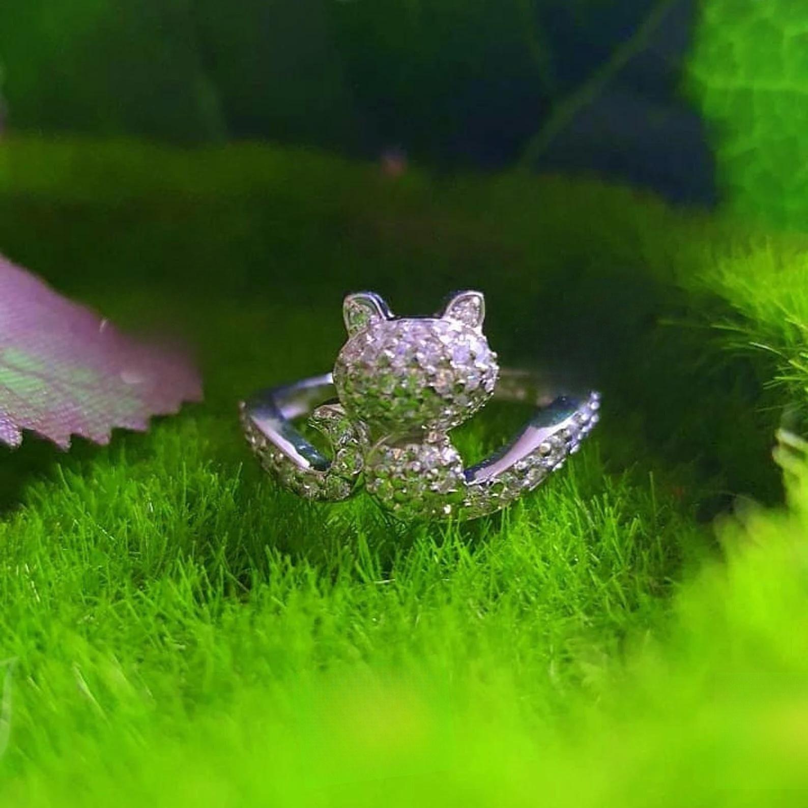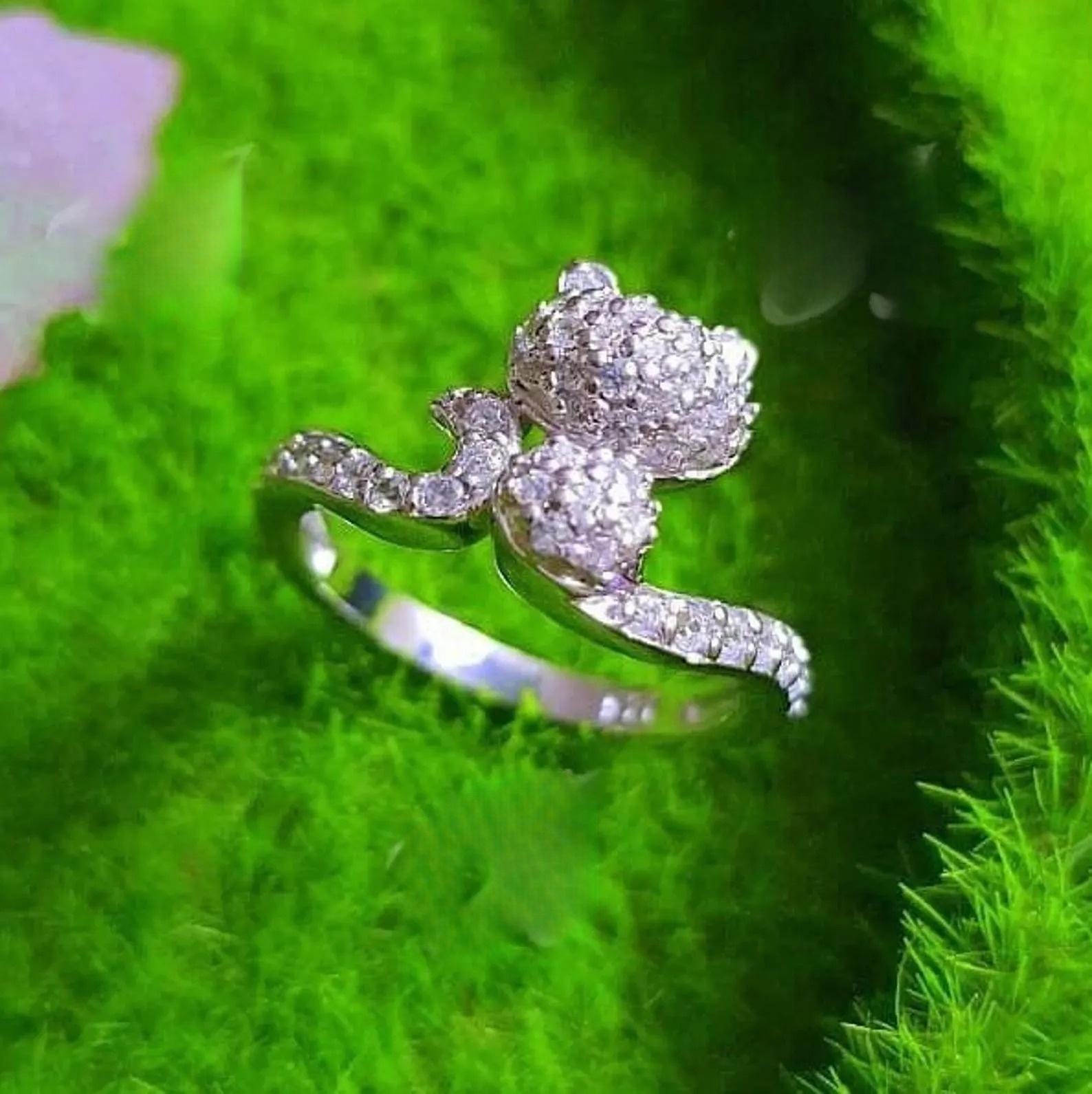2CT Round Cut VVS1/D Diamond Cat Engagement Wedding Ring Cluster Ring 14K white Gold Plated Cat Tail Elongated Engagement Ring, Gift for her