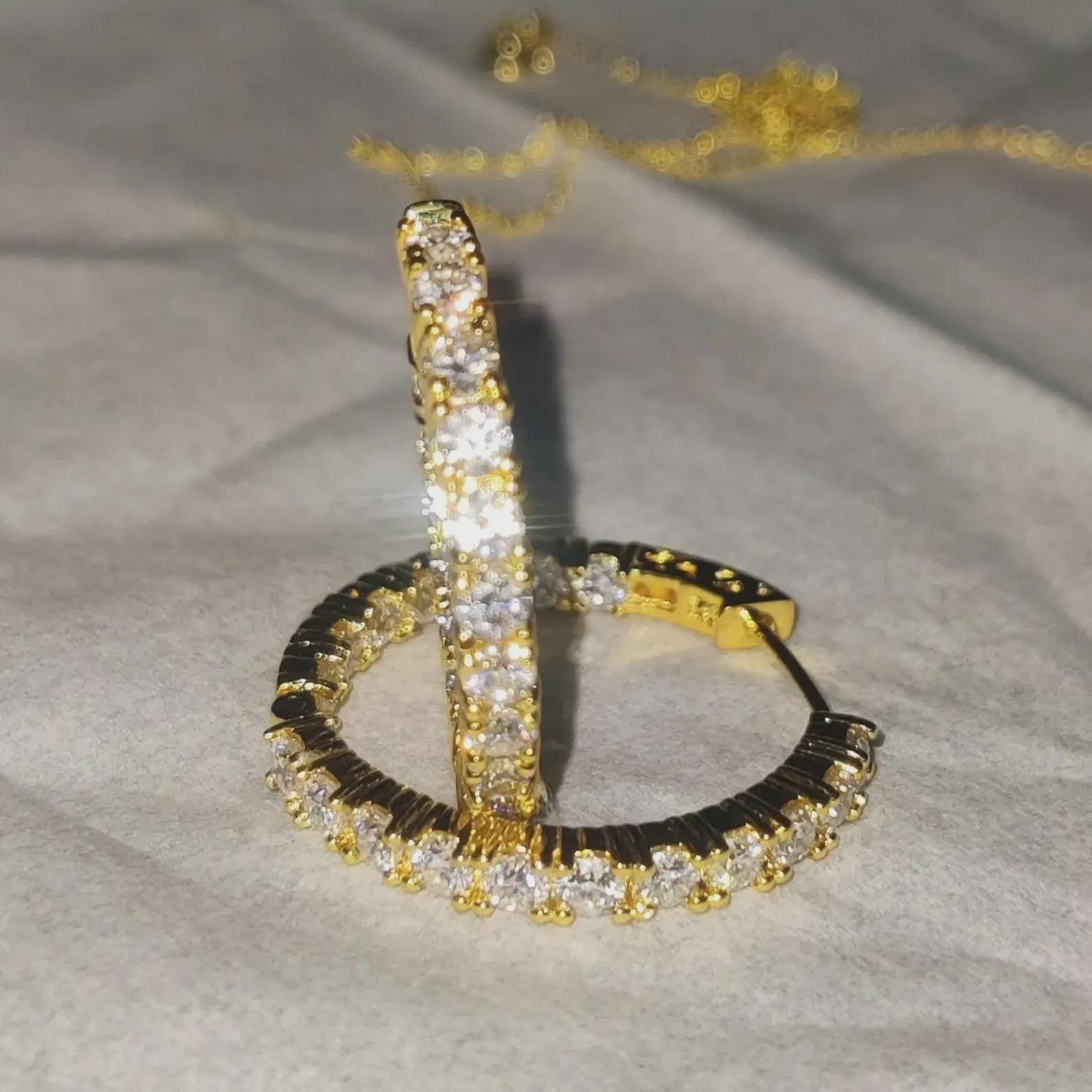 2Ct Round Hoop Earrings Lab Created Diamond Women's Huggie Hoop Earrings 14K Yellow Gold Finish 925 Silver Hoop Earrings