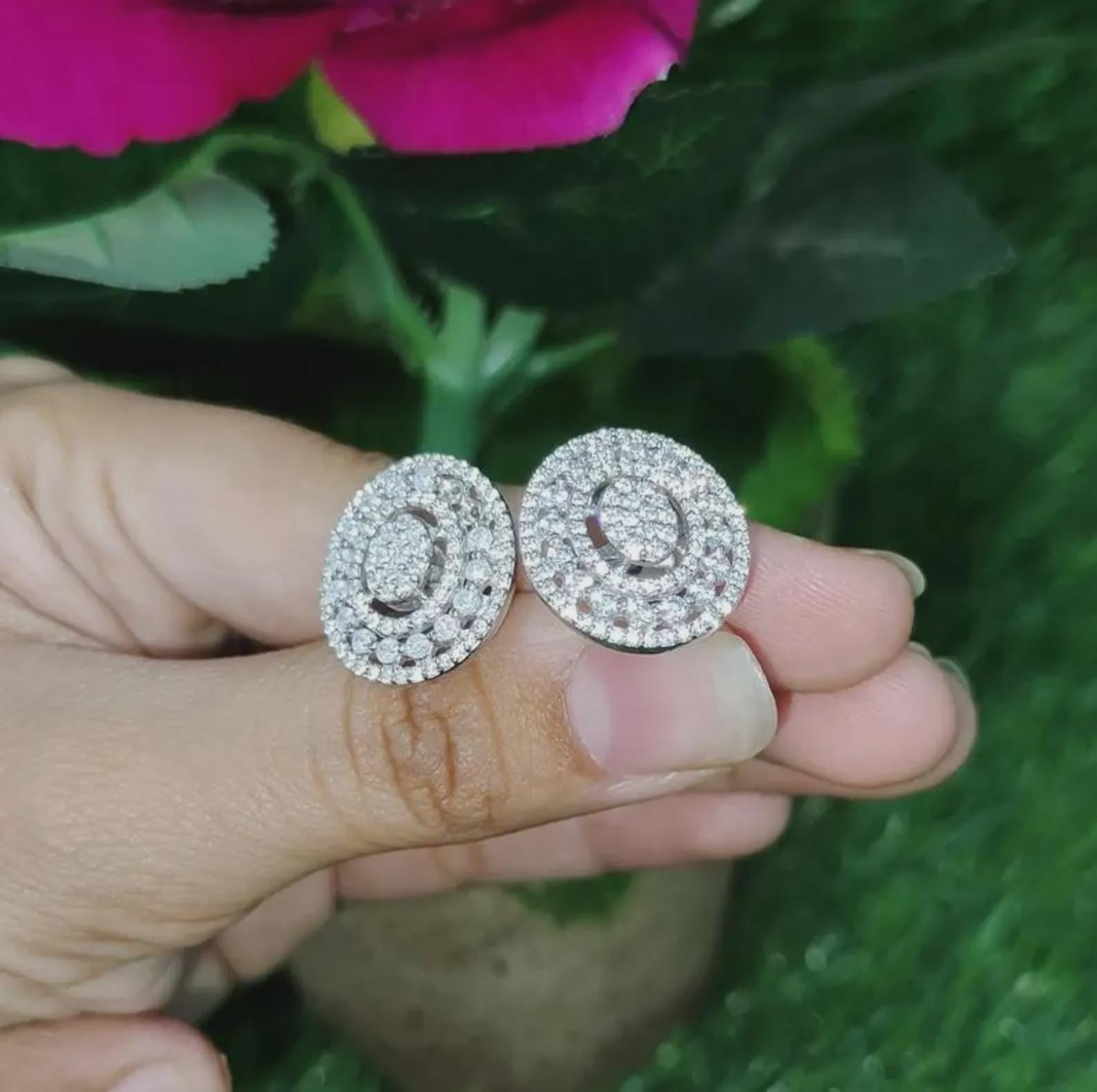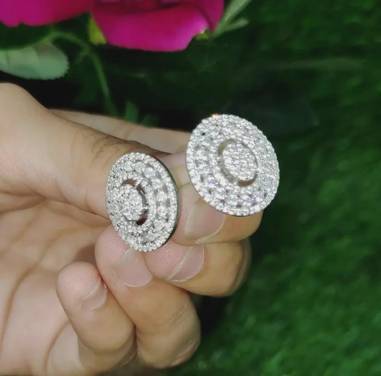 2Ct Round Stud Earrings VVS1 Diamond Cluster Halo Stud Earrings 14K White Gold Finish 925 Silver Stud Earrings Push Back Stud
