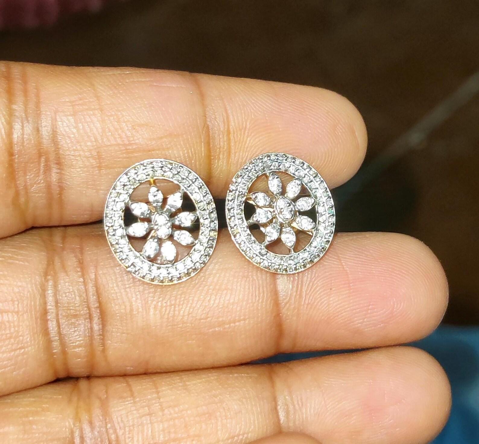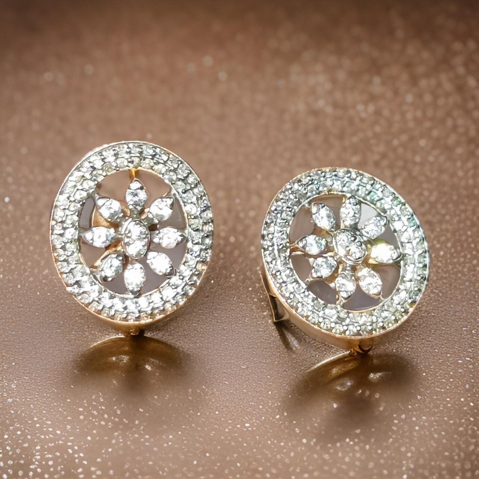 2Ct Round Stud Earrings VVS1 Diamond Cluster Halo Stud Earrings 14K Yellow Gold Finish 925 Silver Stud Earrings Push Back Stud