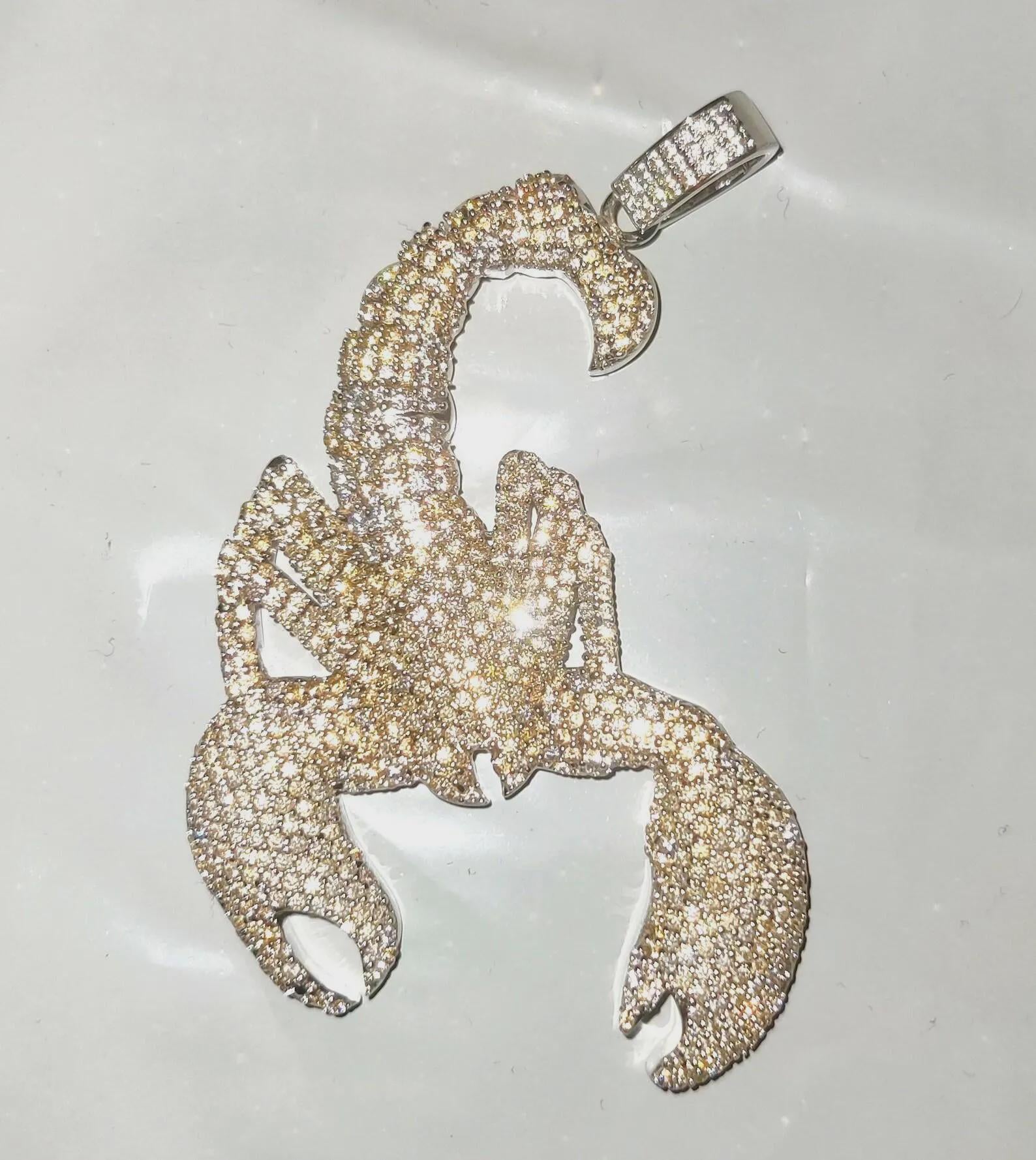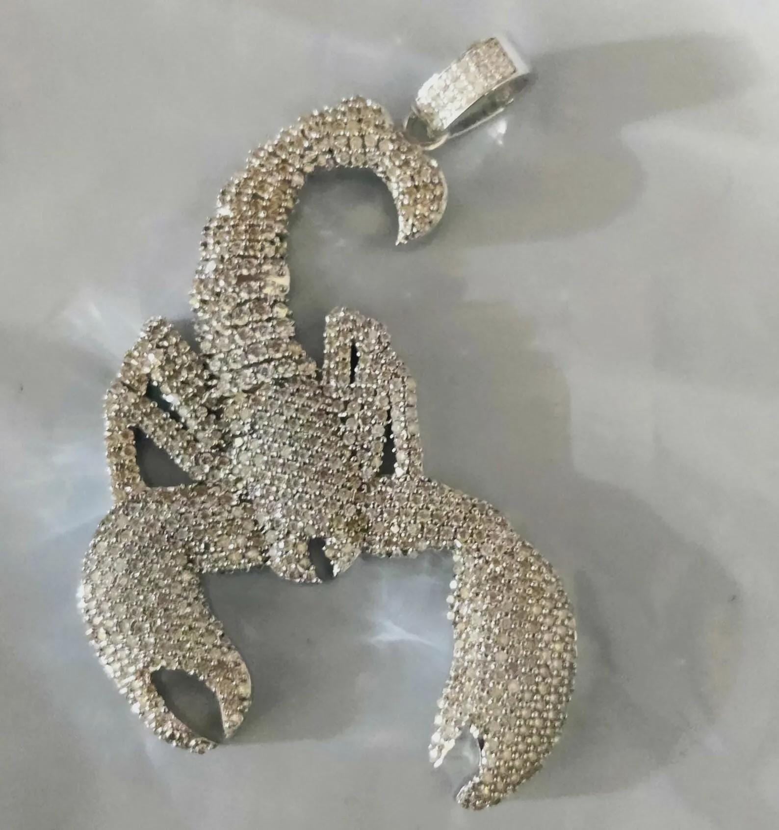 2Ct Scorpion Diamond Pendant Round Cut Simulated Diamond Pendant 925 Sterling Silver Pendant 14K White Gold Plated For Birthday, Party Wear