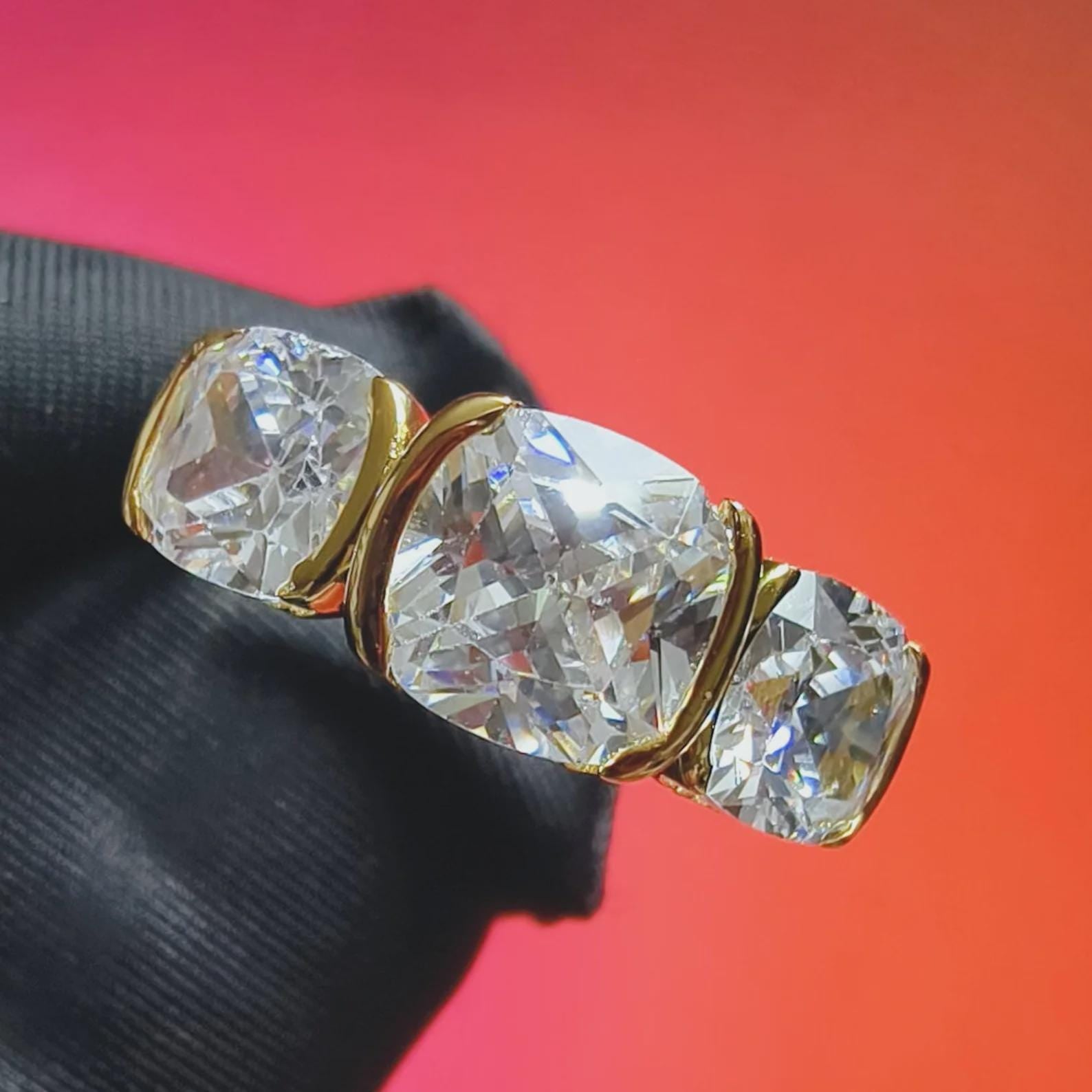 3Ct Cushion Cut Simulated White Diamond Wedding Engagement Anniversary Ring 14k Yellow Gold Plated- 925 Silver, Gift
