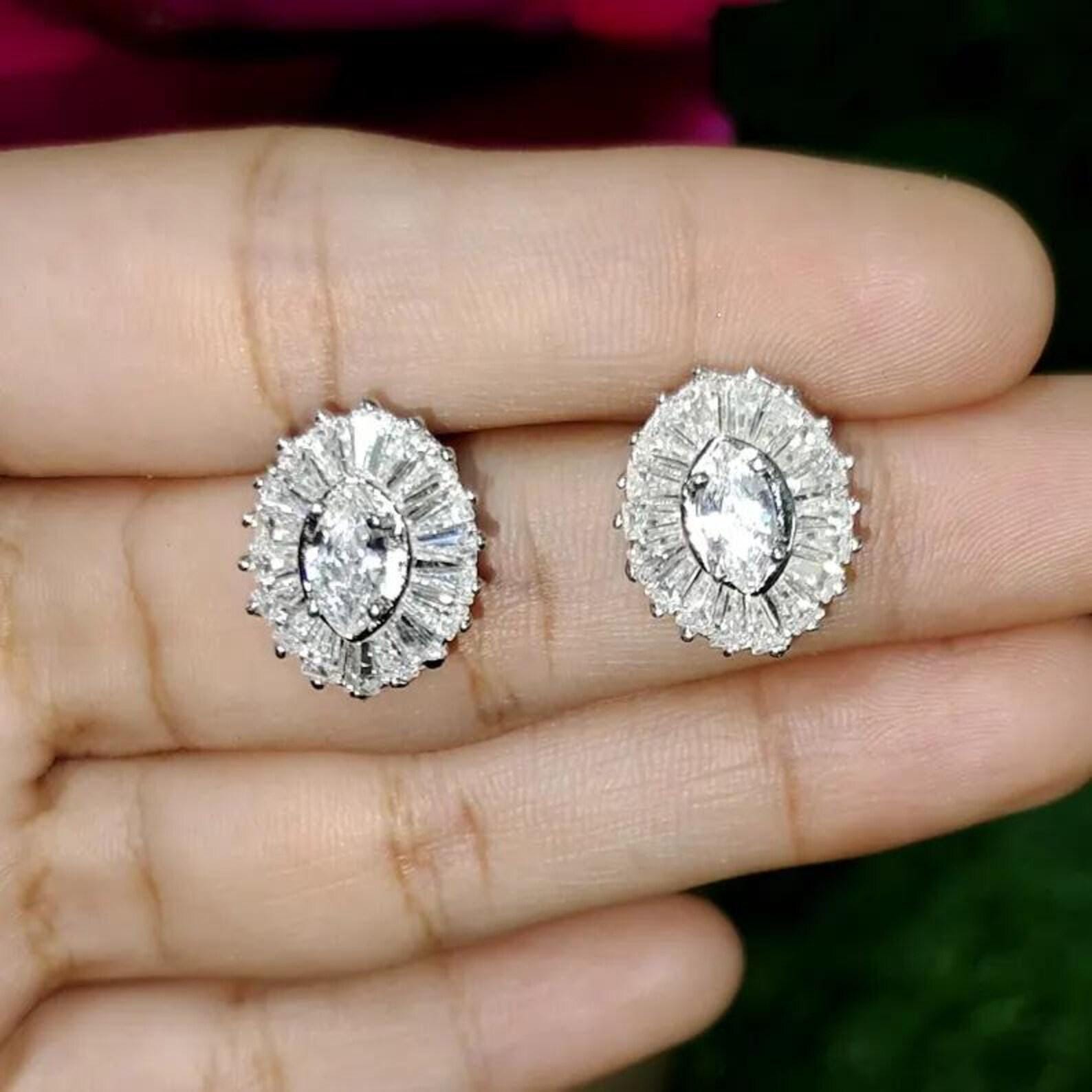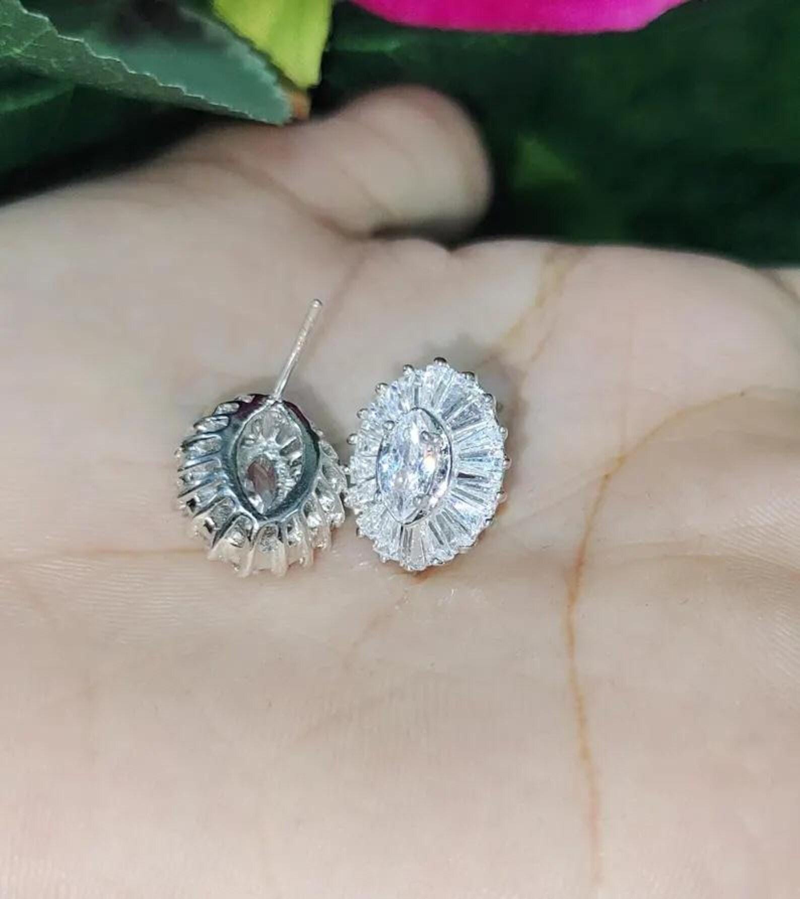 3Ct Diamond Prong Stud Earrings Marquise & Baguette Cut Simulated Diamond Earrings 14K White Gold Finish 925 Silver Gift For Birthday Wear