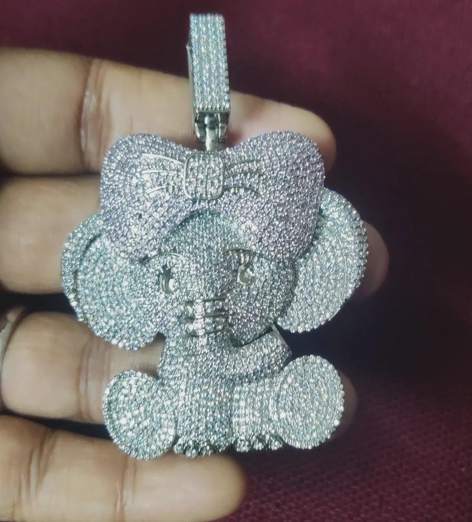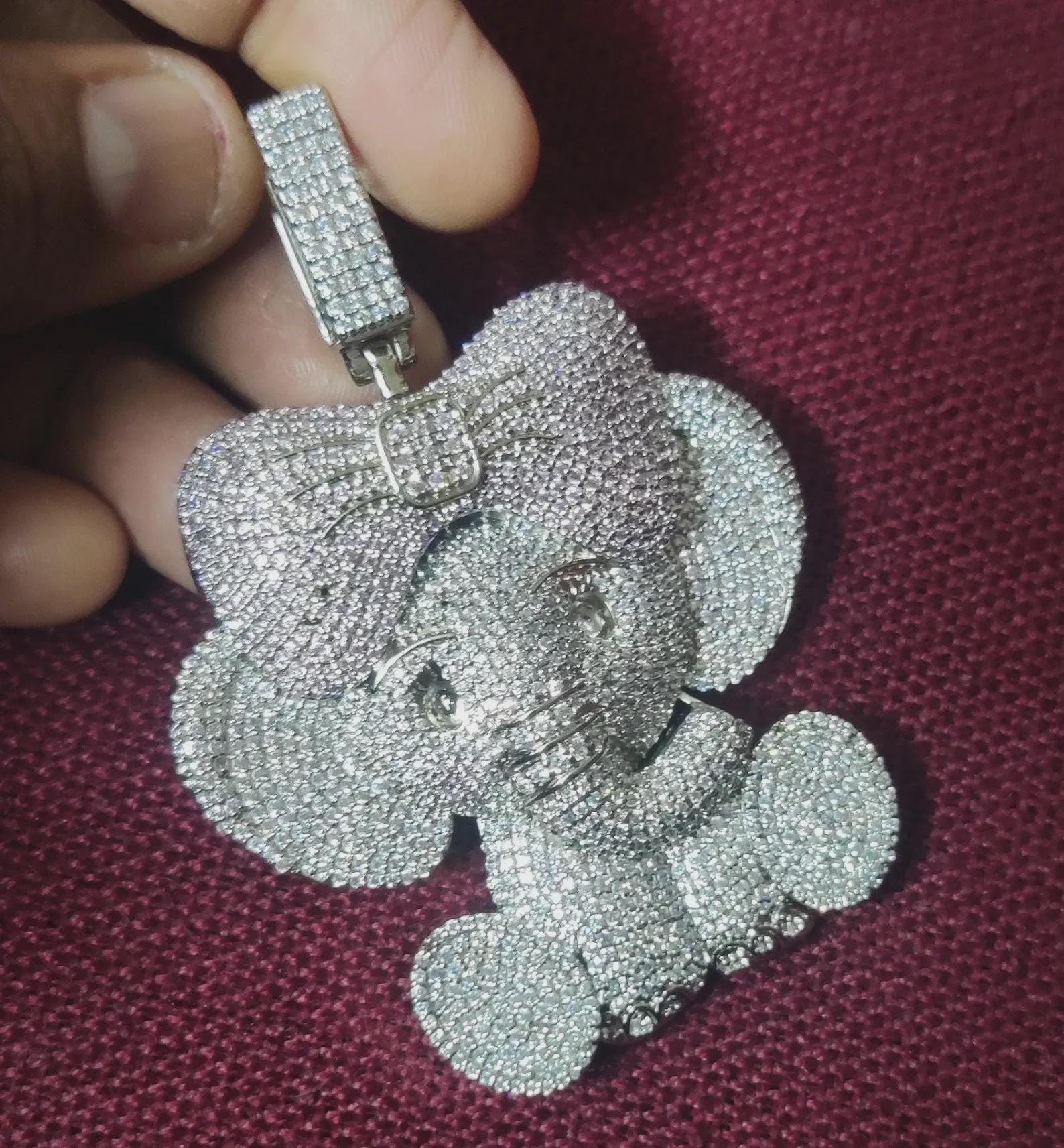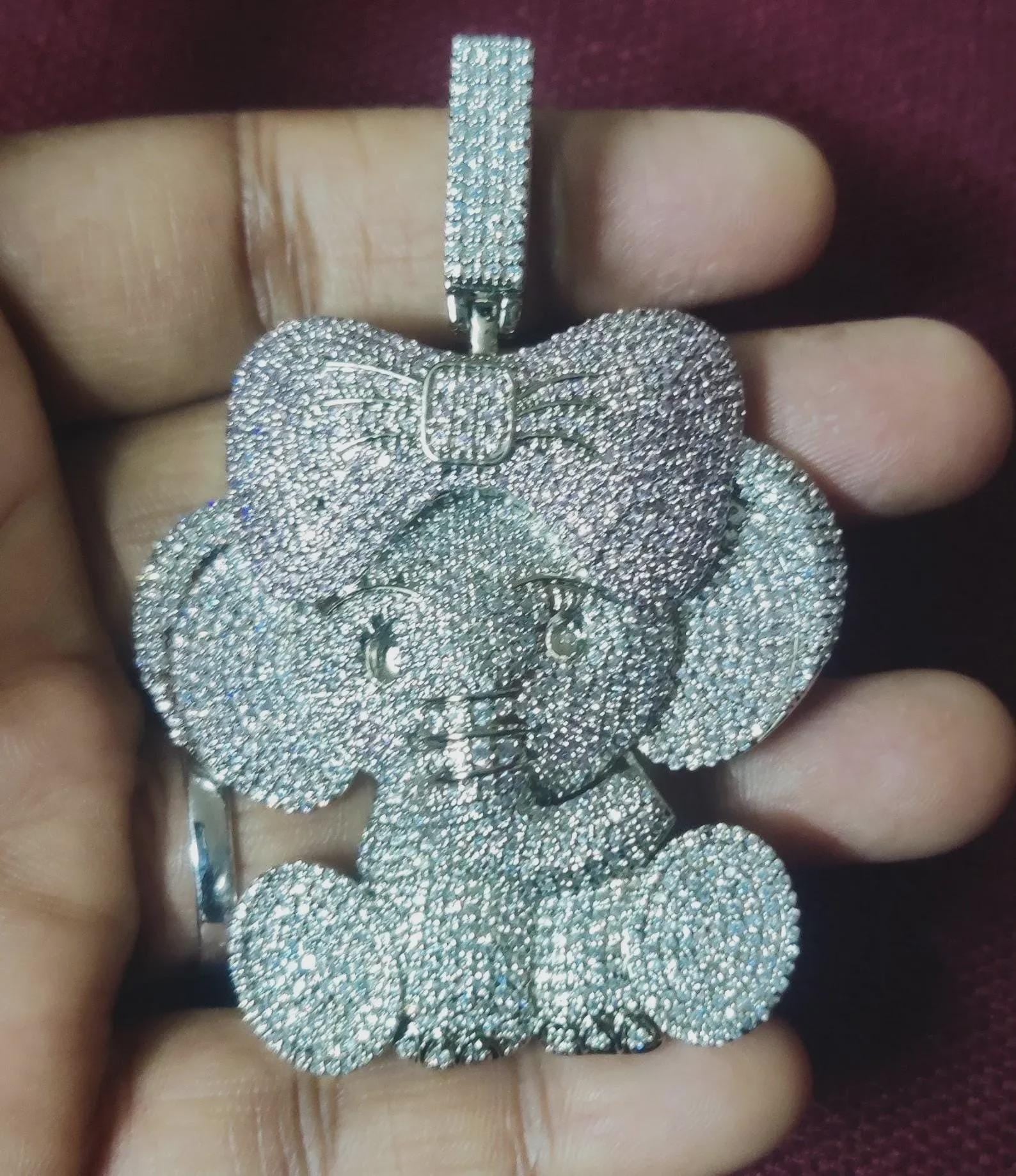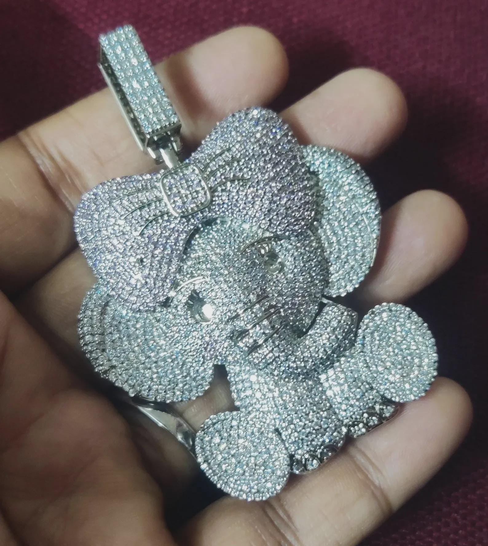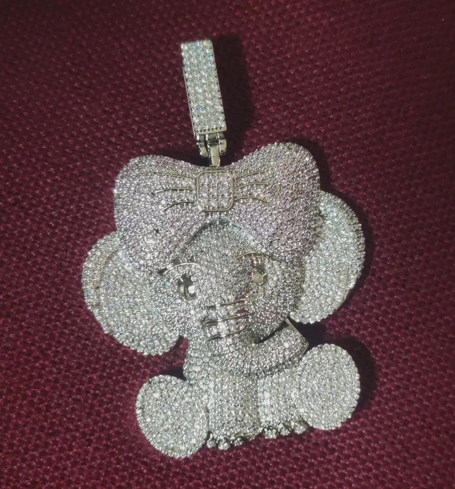 3Ct Diamond Round Cut Simulated Diamond Pendant, Cartoon Pendant 14K White Gold Finish 925 Sterling Silver Birthday and Party Pendant Gift