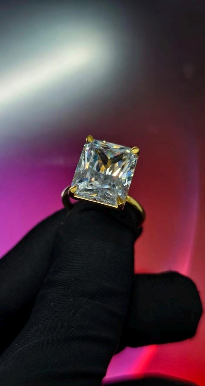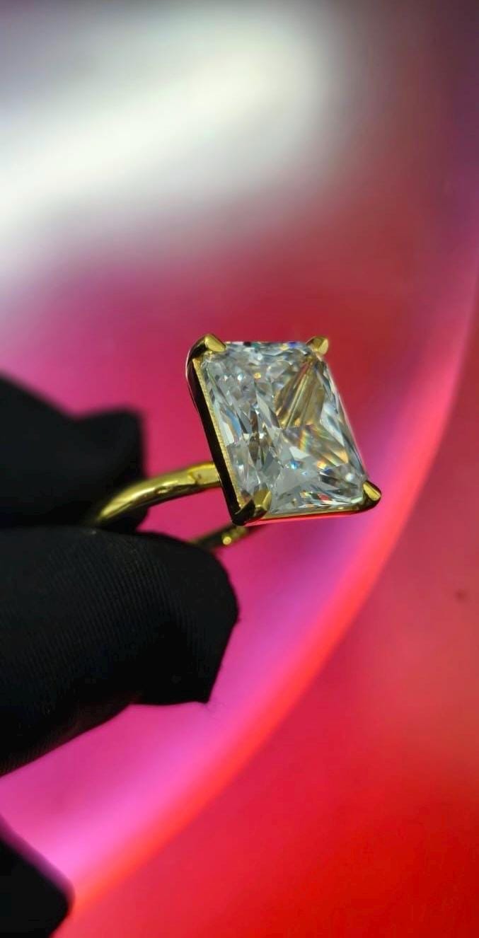 3Ct Radiant Cut Simulated Diamond Wedding Engagement Ring 14k Yellow Gold Plated- 925 Silver
