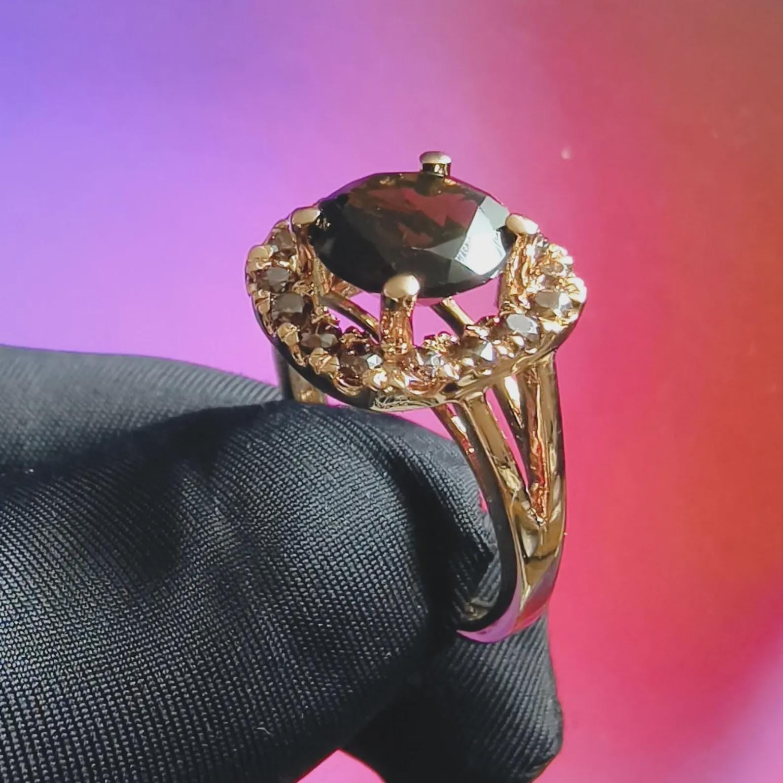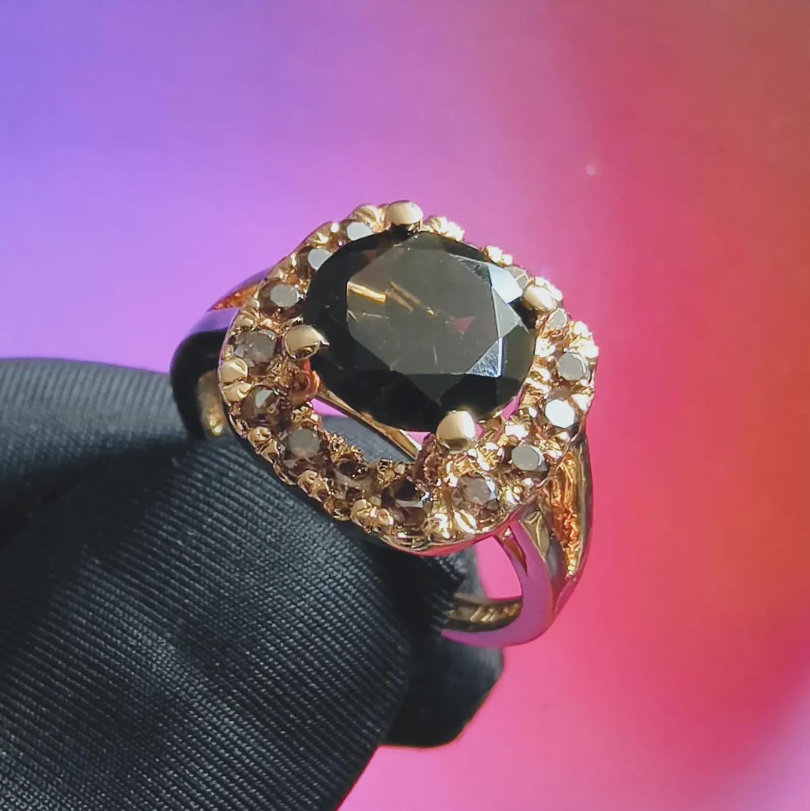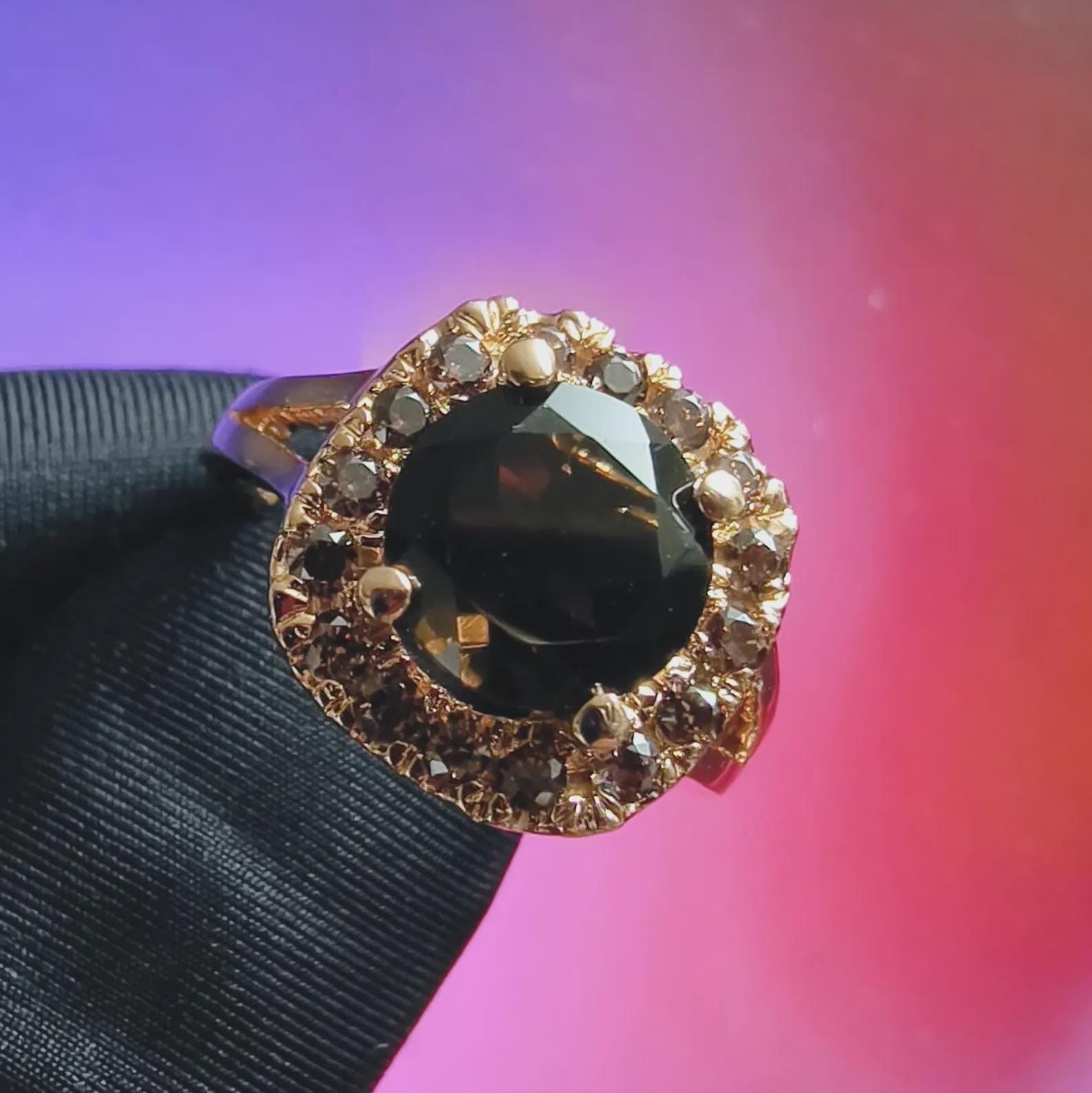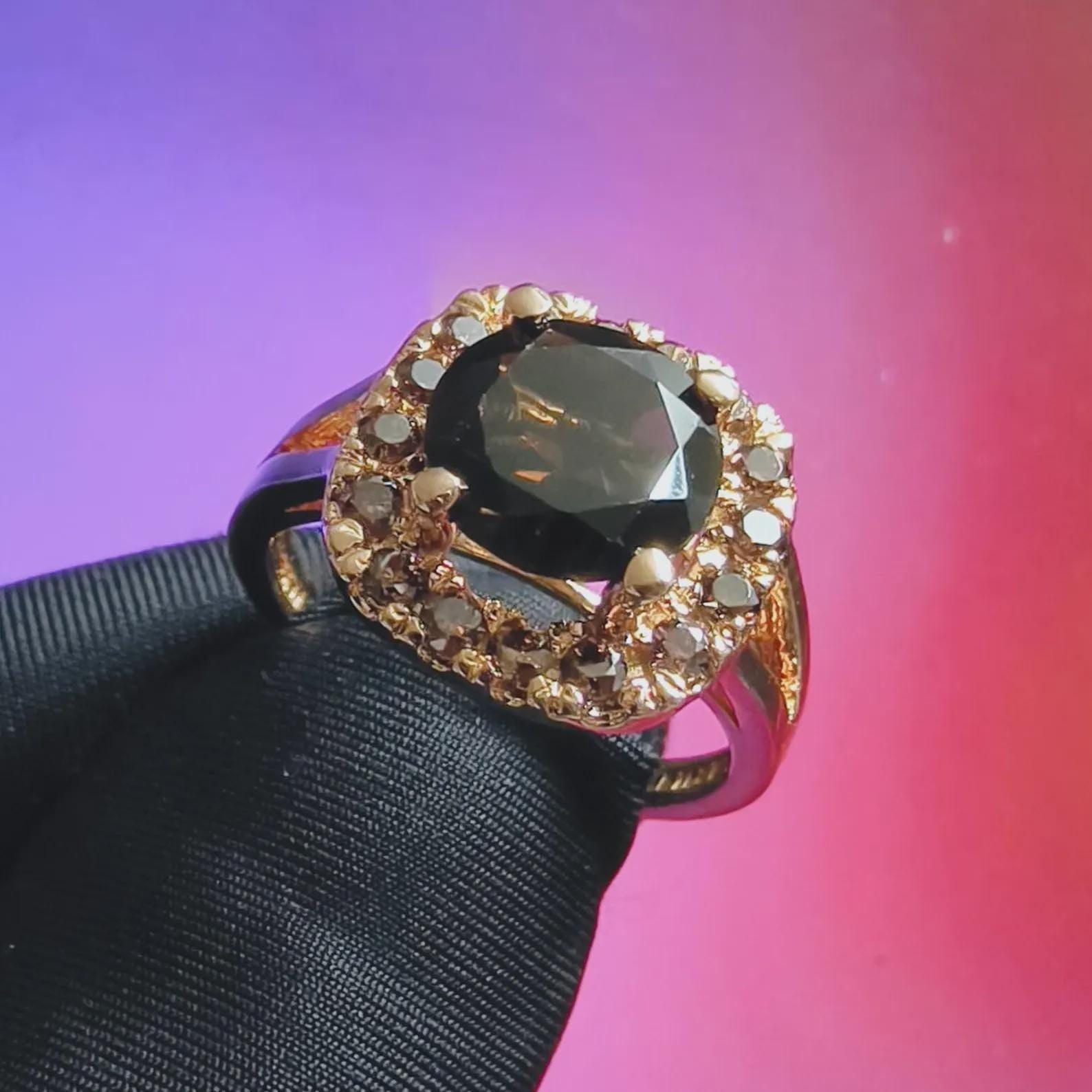 3Ct Round Cut Simulated Chocolate Diamond Halo Engagement Ring 14K Yellow Gold Finish 925 Sterling Silver, Wedding Band, Gift For her