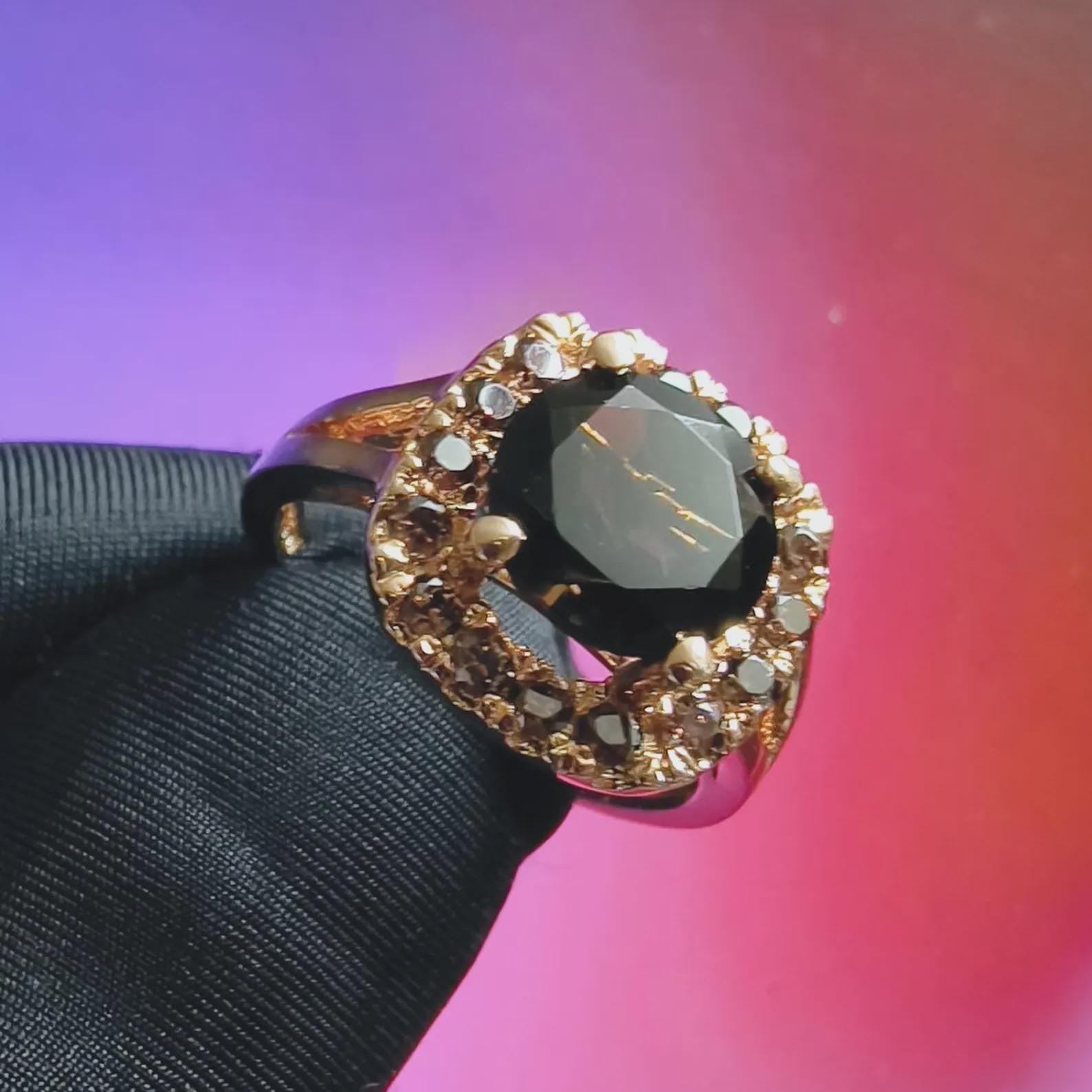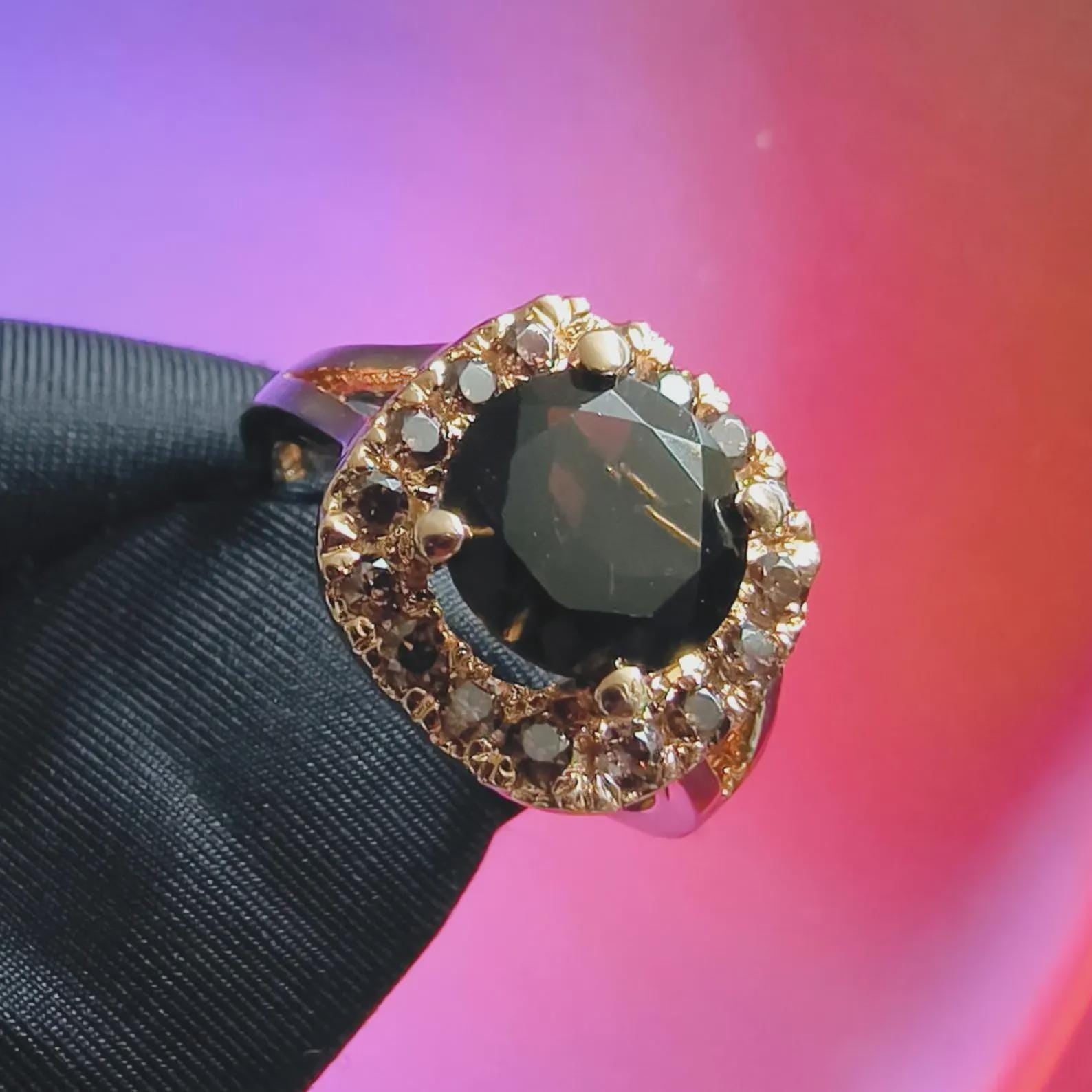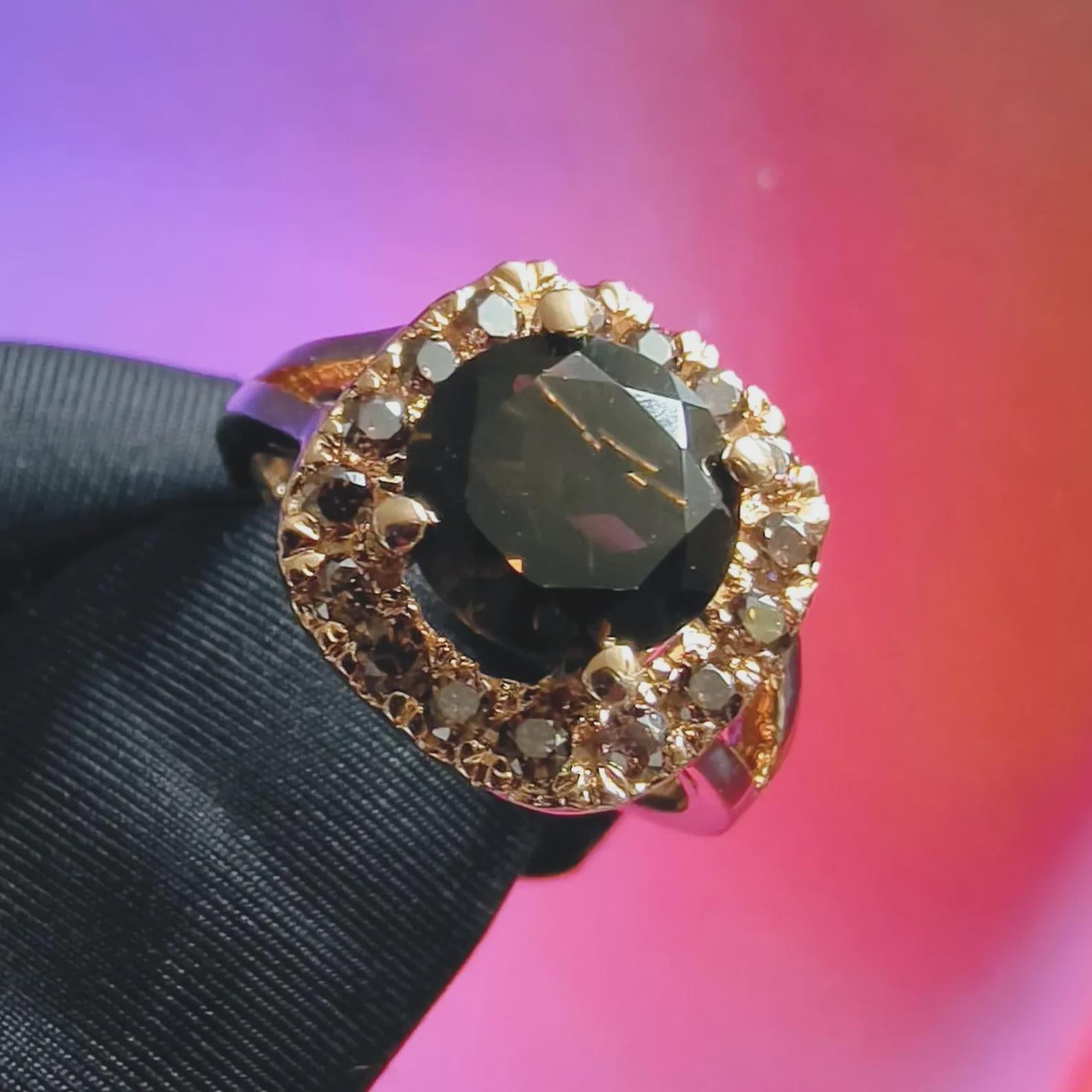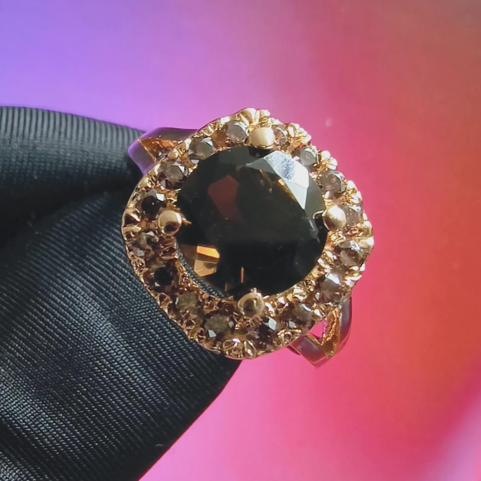 3Ct Round Cut Simulated Chocolate Diamond Halo Engagement Ring 14K Yellow Gold Finish 925 Sterling Silver, Wedding Band, Gift For her