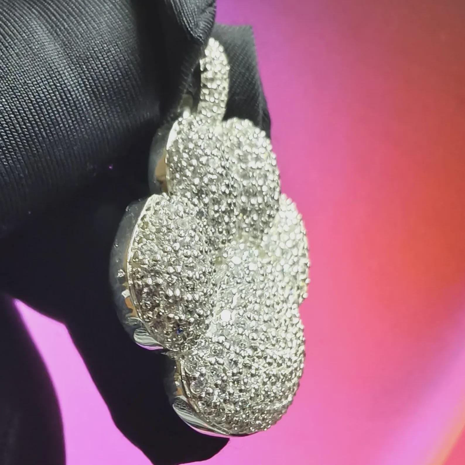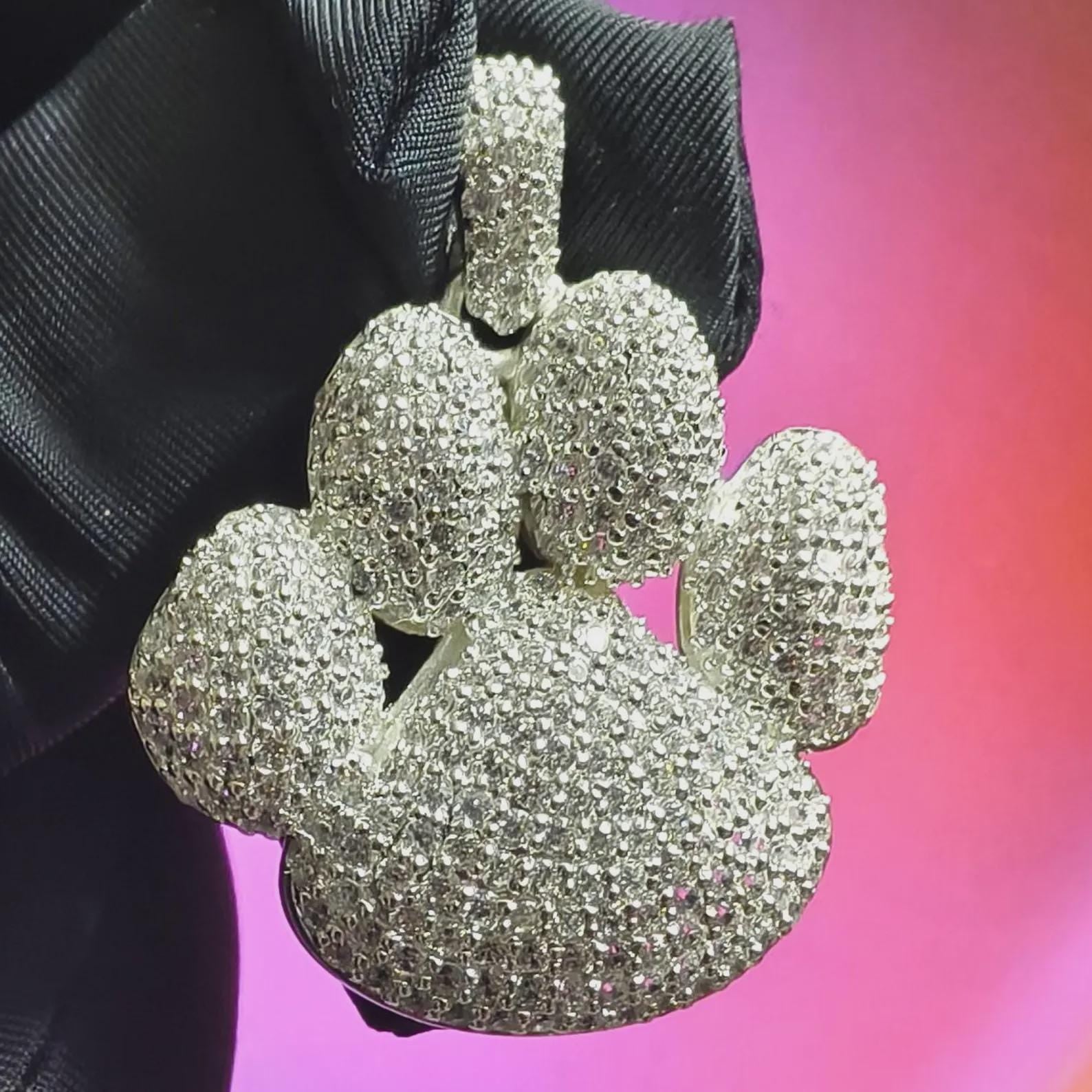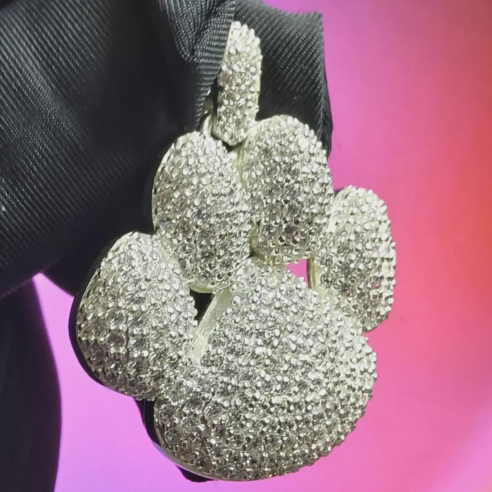 3Ct Round Cut Simulated White Diamond Dog Paw Pendant 14K White Gold Finish Free Chain 925 Sterling Silver Hip Hop Dog Paw Pendant