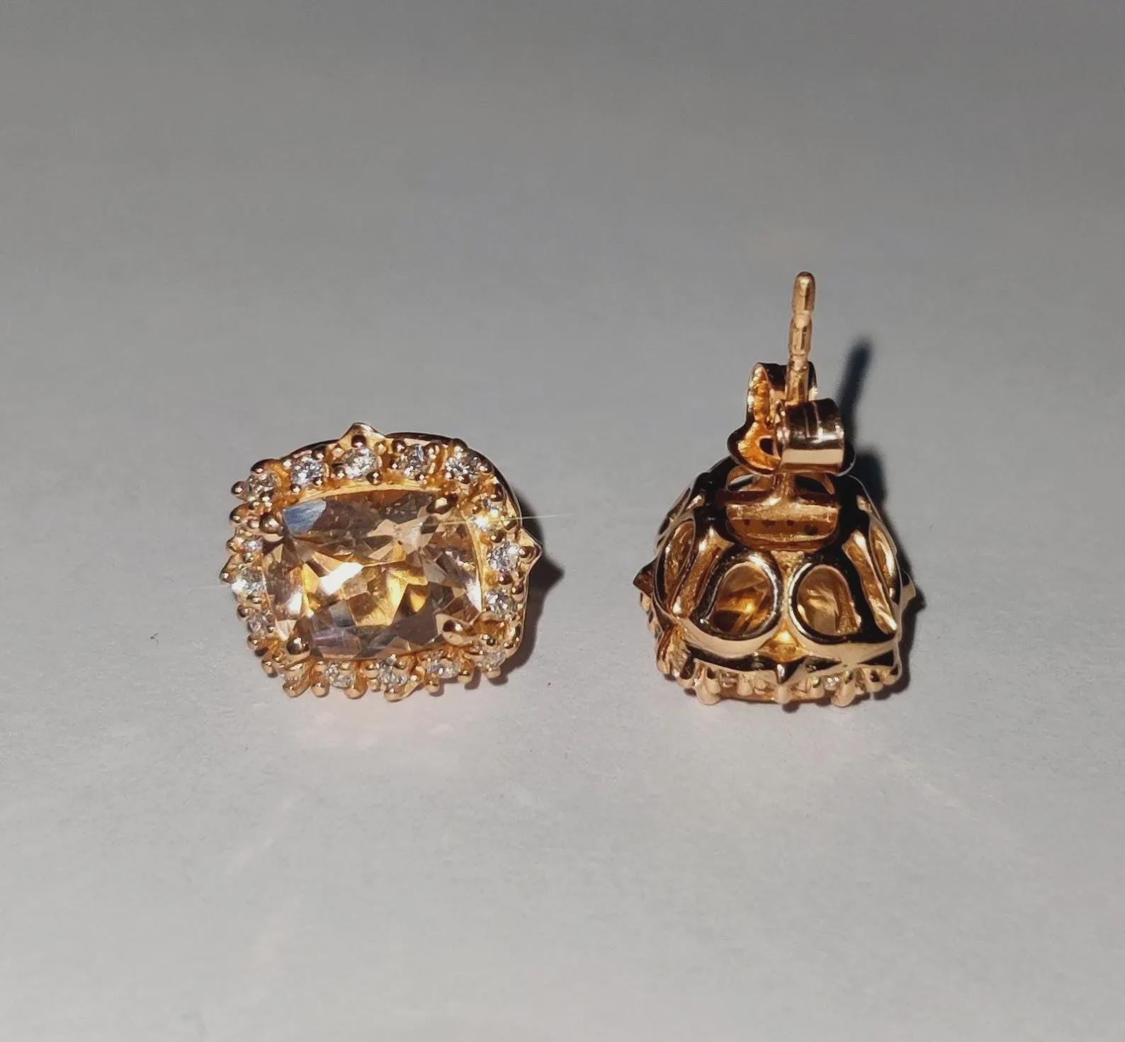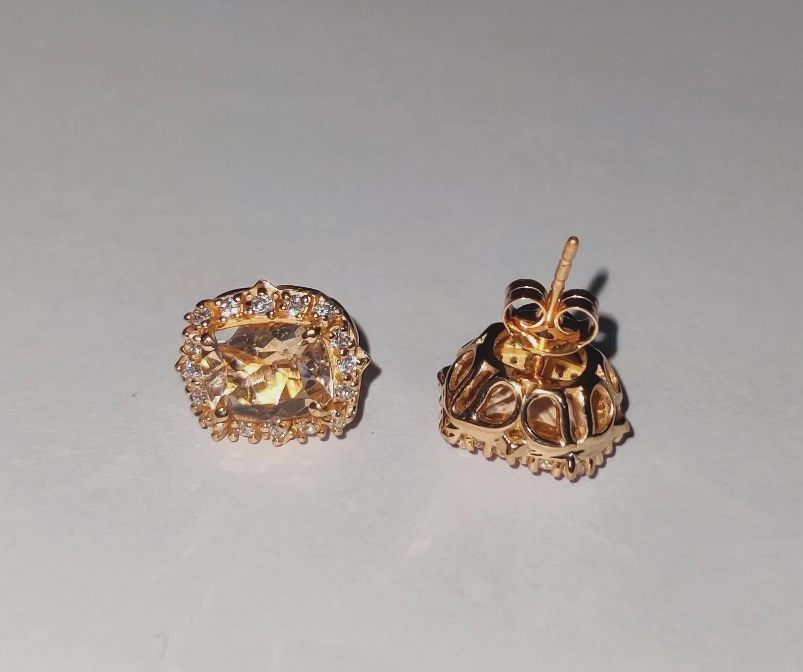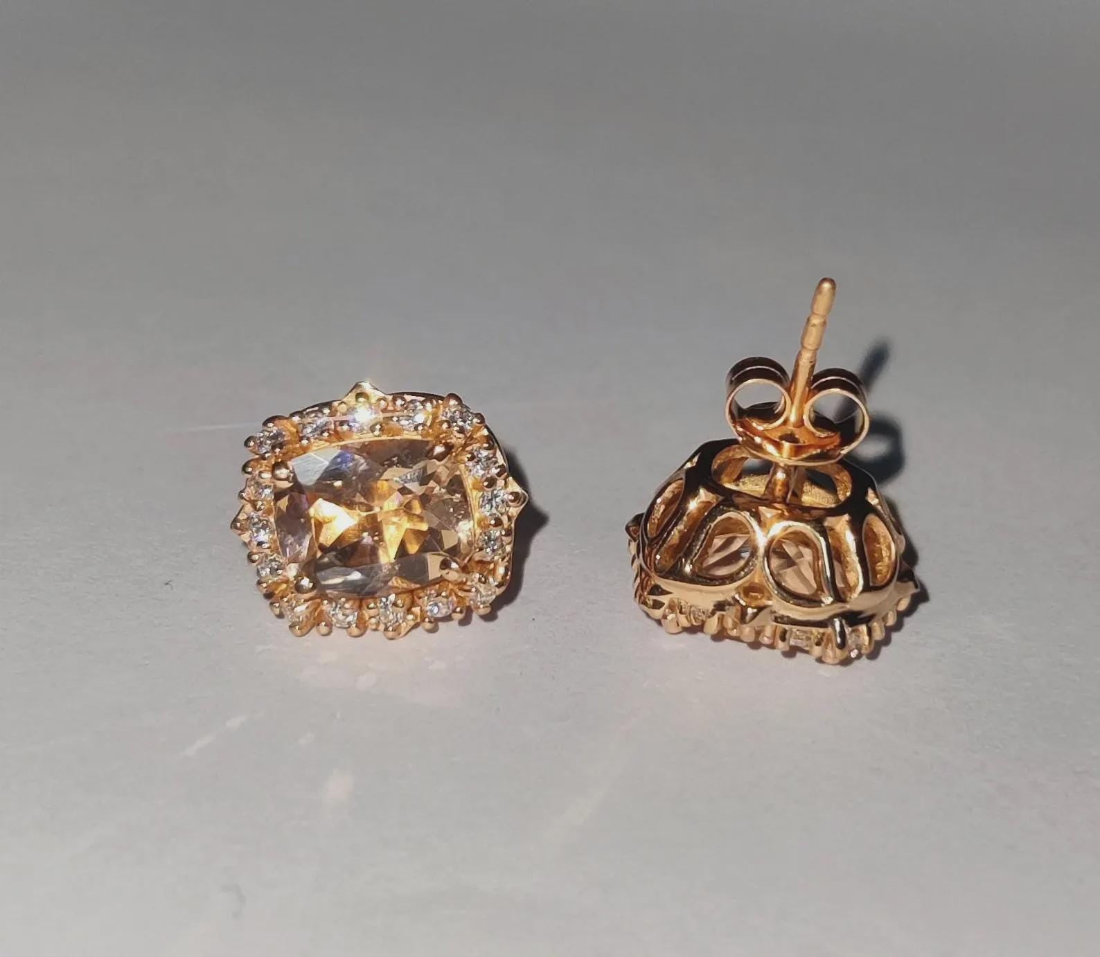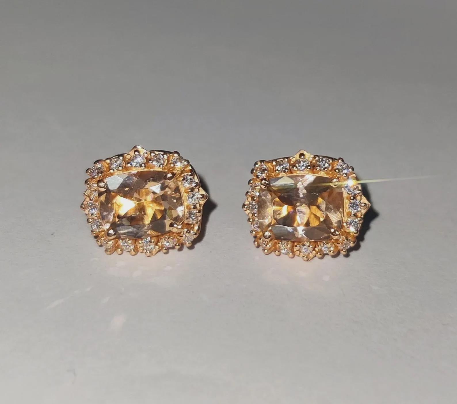 4Ct Cushion Cut Morganite Stud Earrings Simulated Diamond 14K Rose Gold Finish Fancy Halo Earrings 925 Sterling Silver Gift For Party Wear