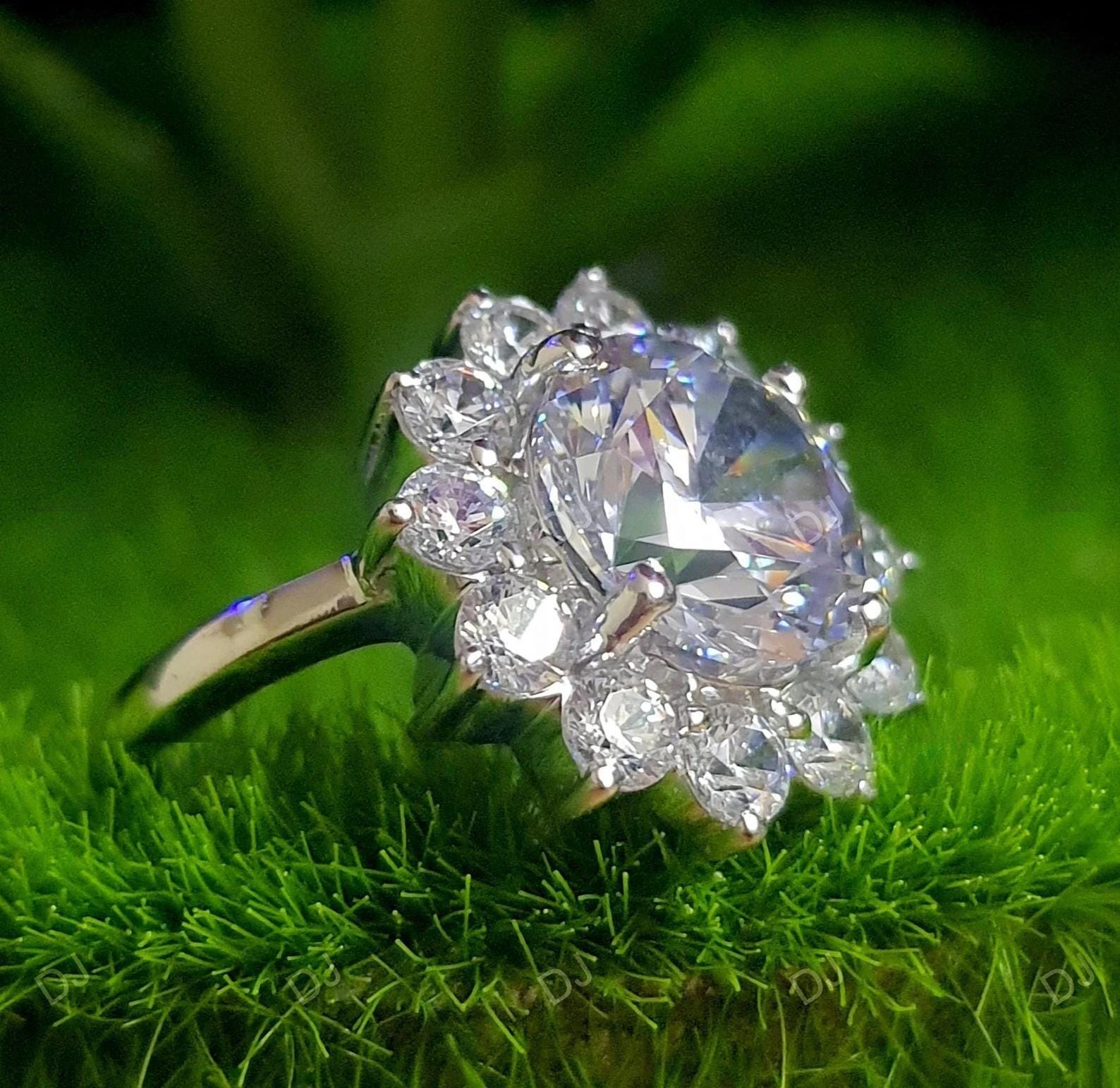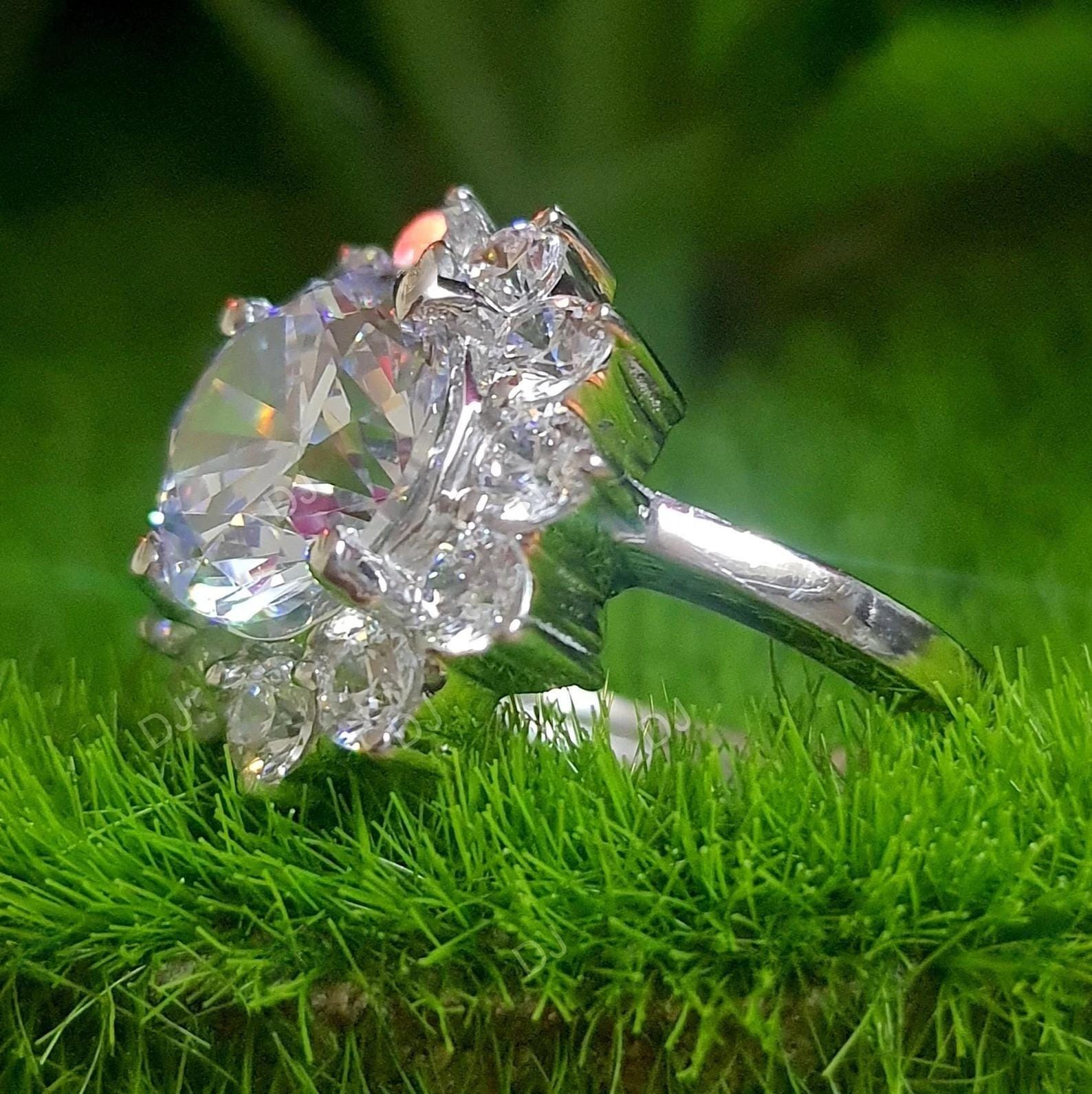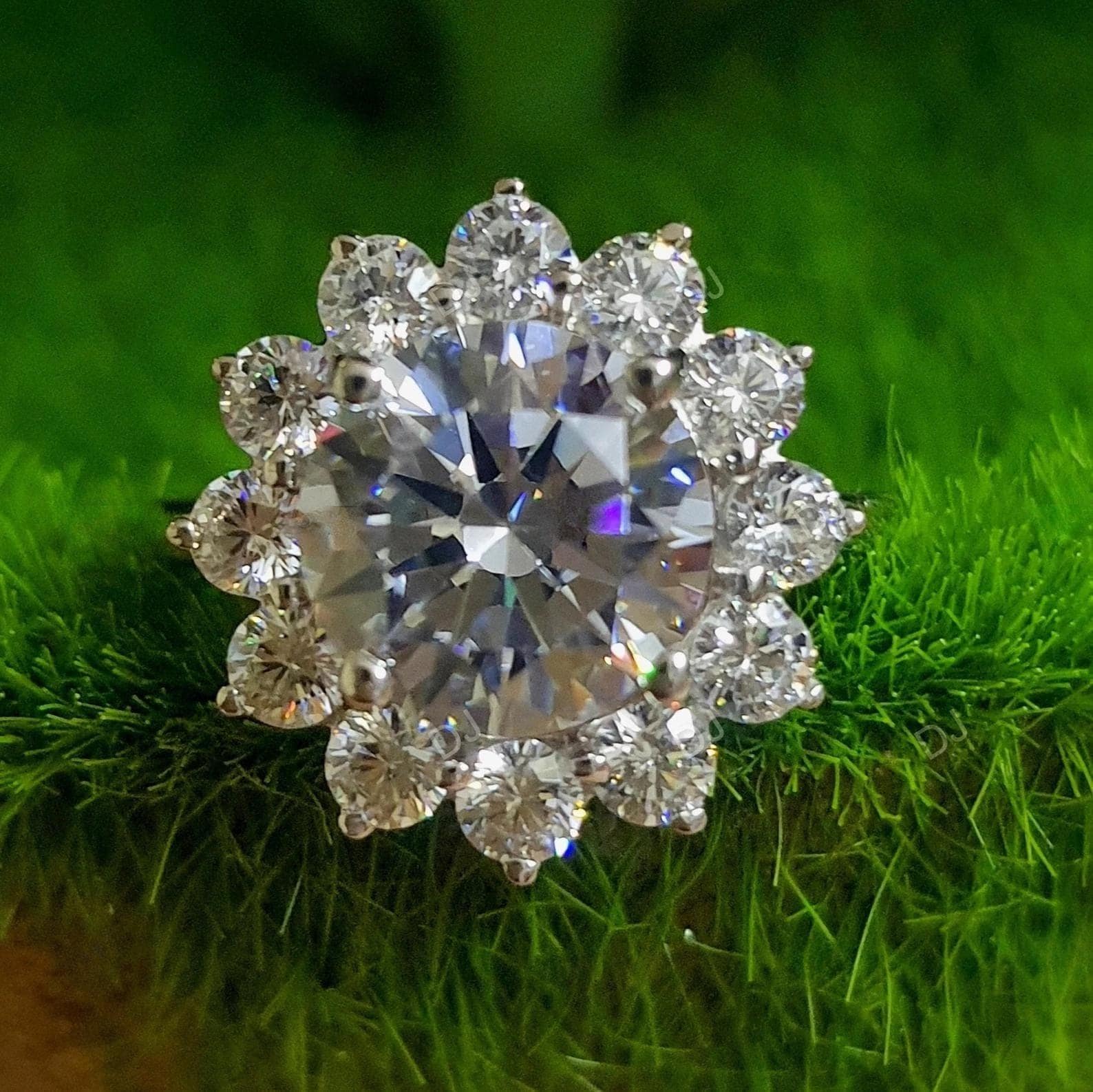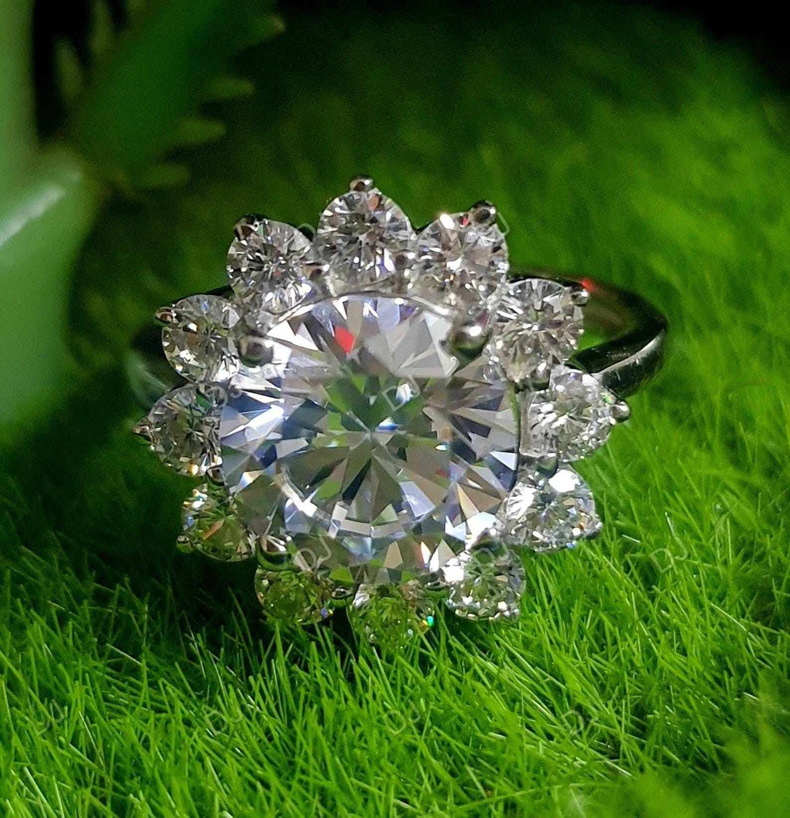 4Ct Round Cut Diamond 14K White Gold Finish Flower Cluster Engagement Anniversary Band Ring, Birthday Gift, Ring For Her