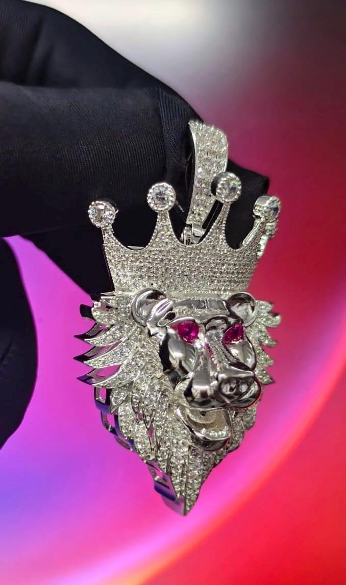 Beautiful 4Ct Round Cut Diamond Lion Head pendant. Crafted in 925 Sterling Silver with 14K White Gold Plating, its whimsical design adds a touch of magic to any outfit. A perfect jewelry gift, it captures the iconic charm of Lion.