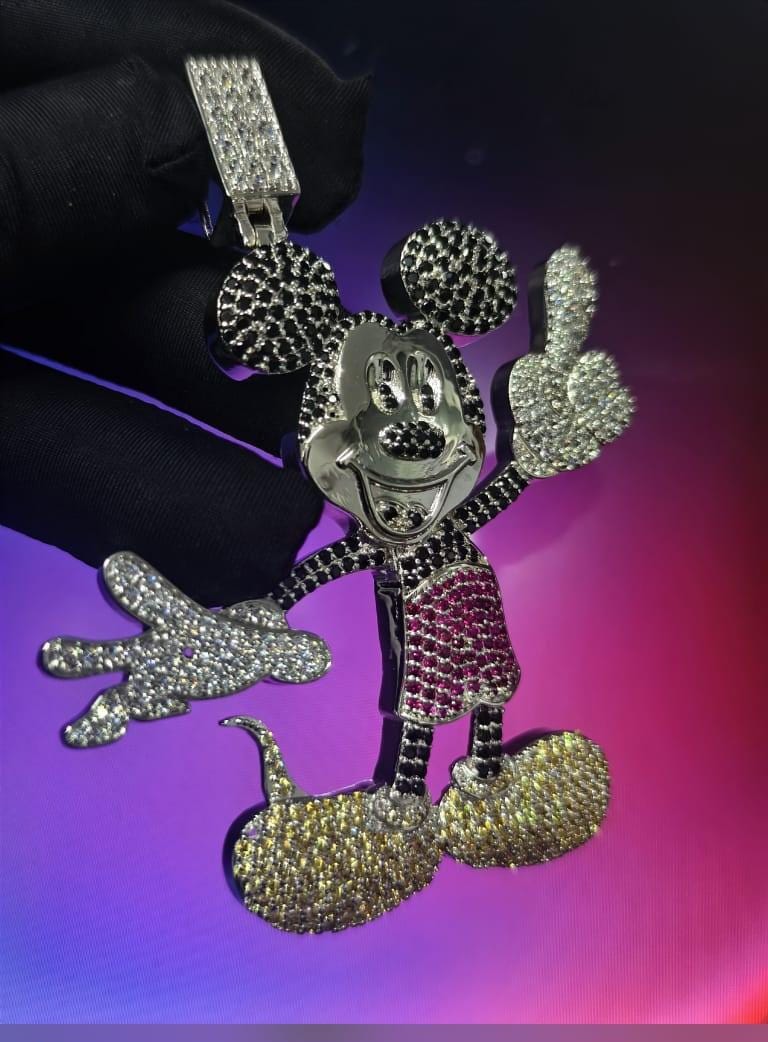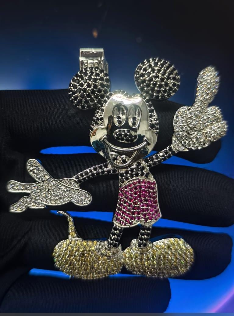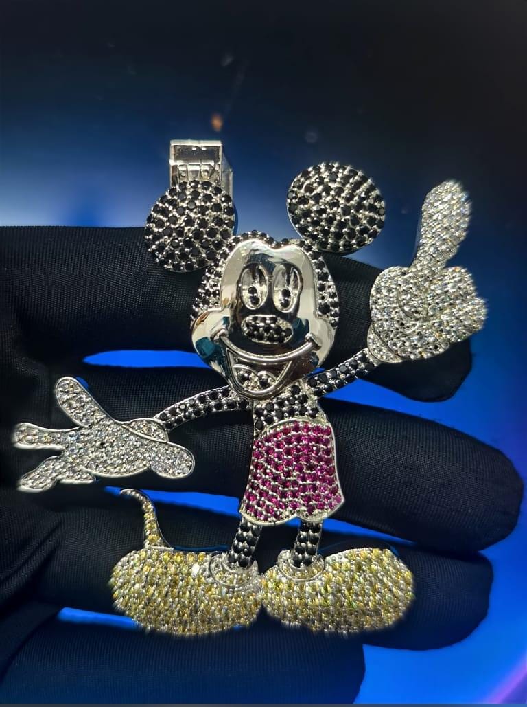 Beautiful 4Ct Round Cut Diamond Mickey Mouse pendant. Crafted in 925 Sterling Silver with 14K White Gold Plating, its whimsical design adds a touch of magic to any outfit. A perfect jewelry gift, it captures the iconic charm of Mickey Mouse.