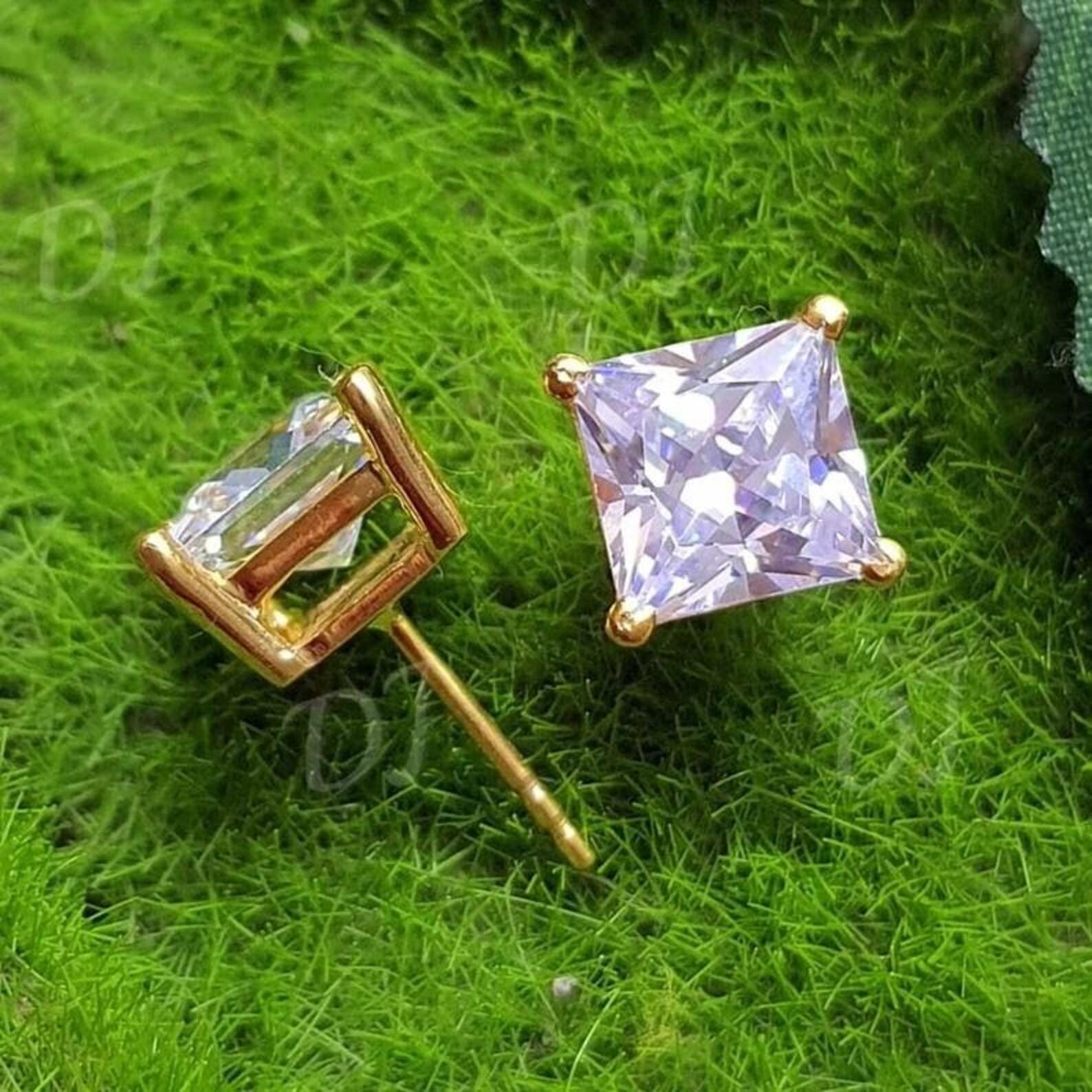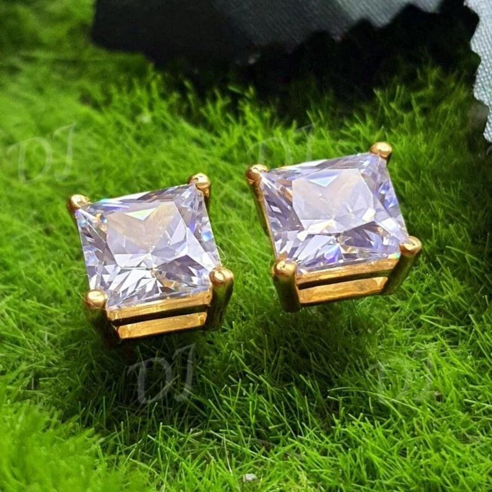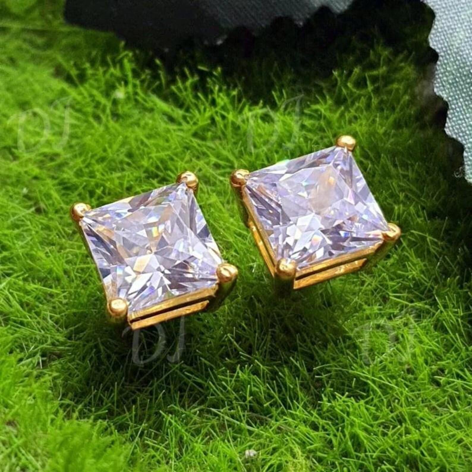 8mm Princess Cut Prong Stud Earrings Simulated Diamond Earrings 14K Yellow Gold Finish 925 Silver Prong Setting Earring,Gift For Anniversary