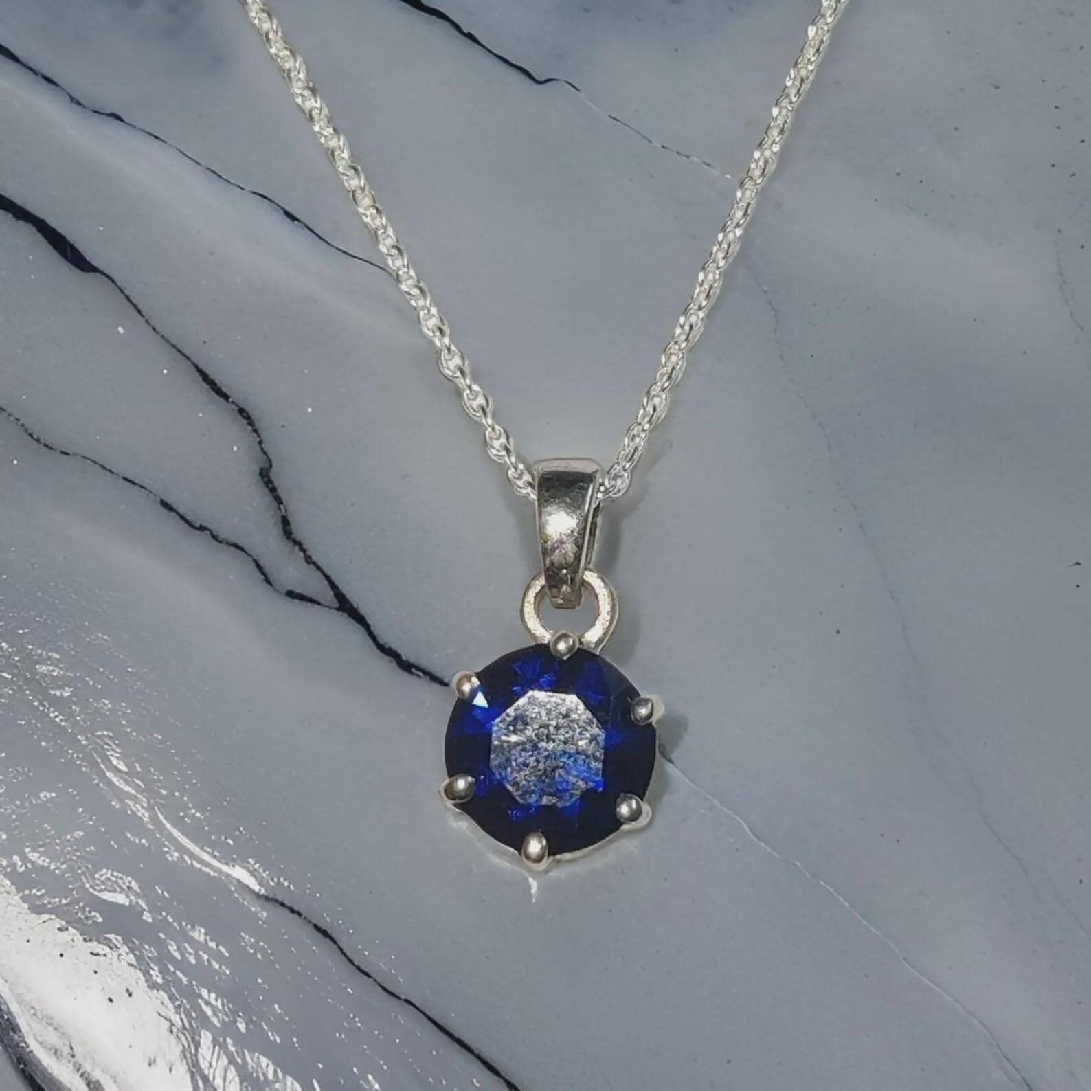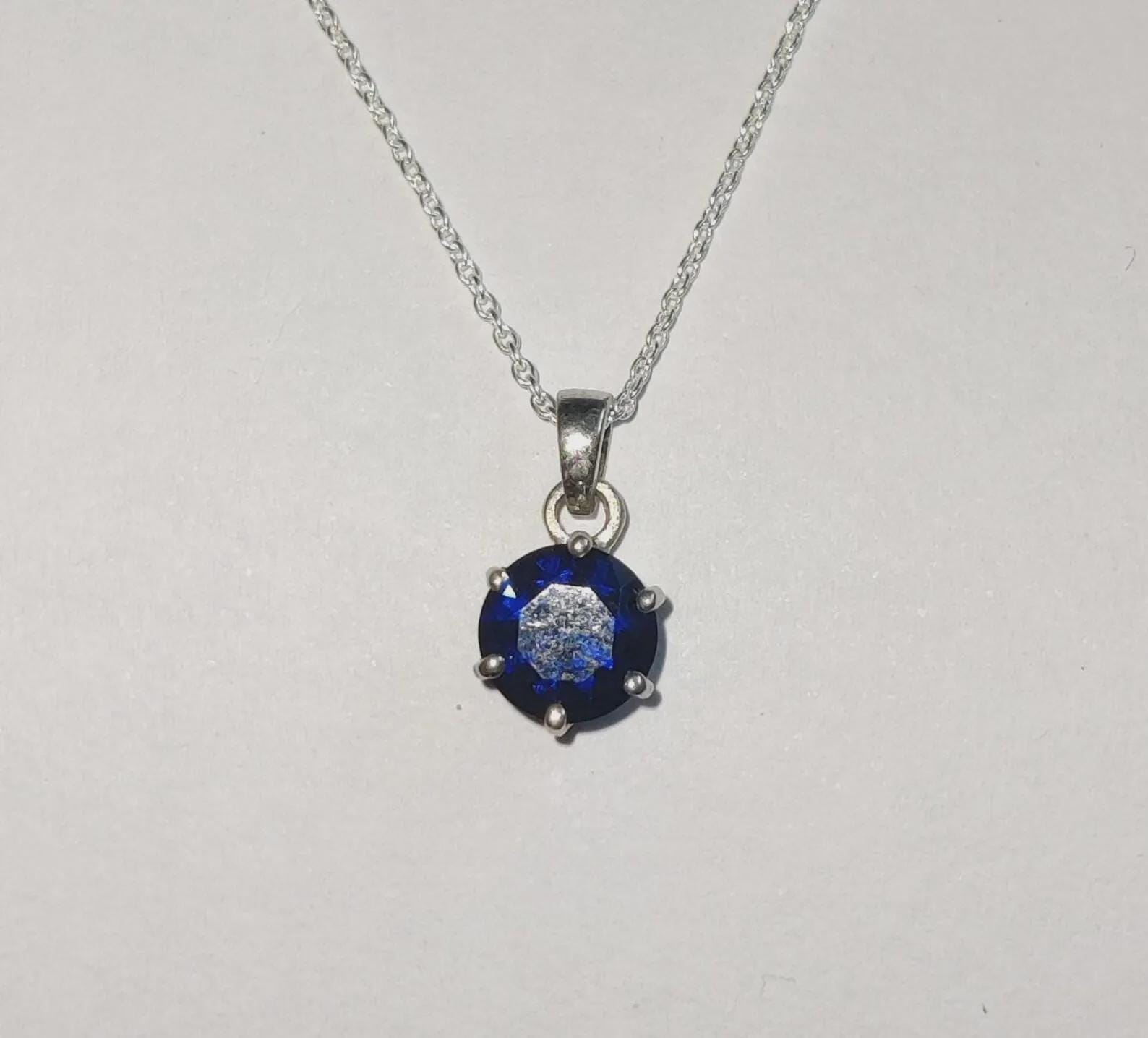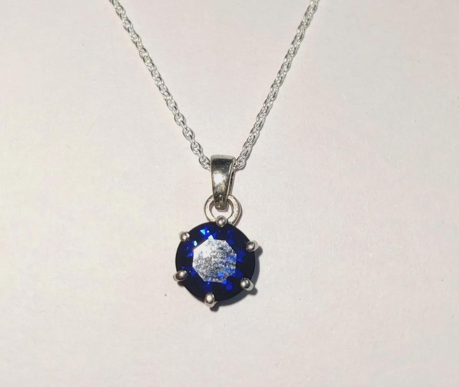 Blue Sapphire Pendant 2Ct Lab-Created Round Cut Blue Sapphire Solitaire Pendant 14K White Gold Plated Sapphire Pendant Blue Sapphire Pendant