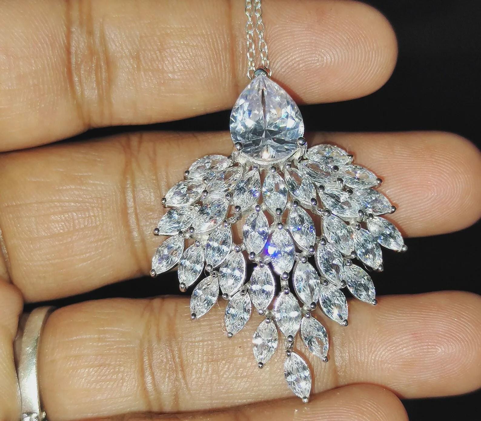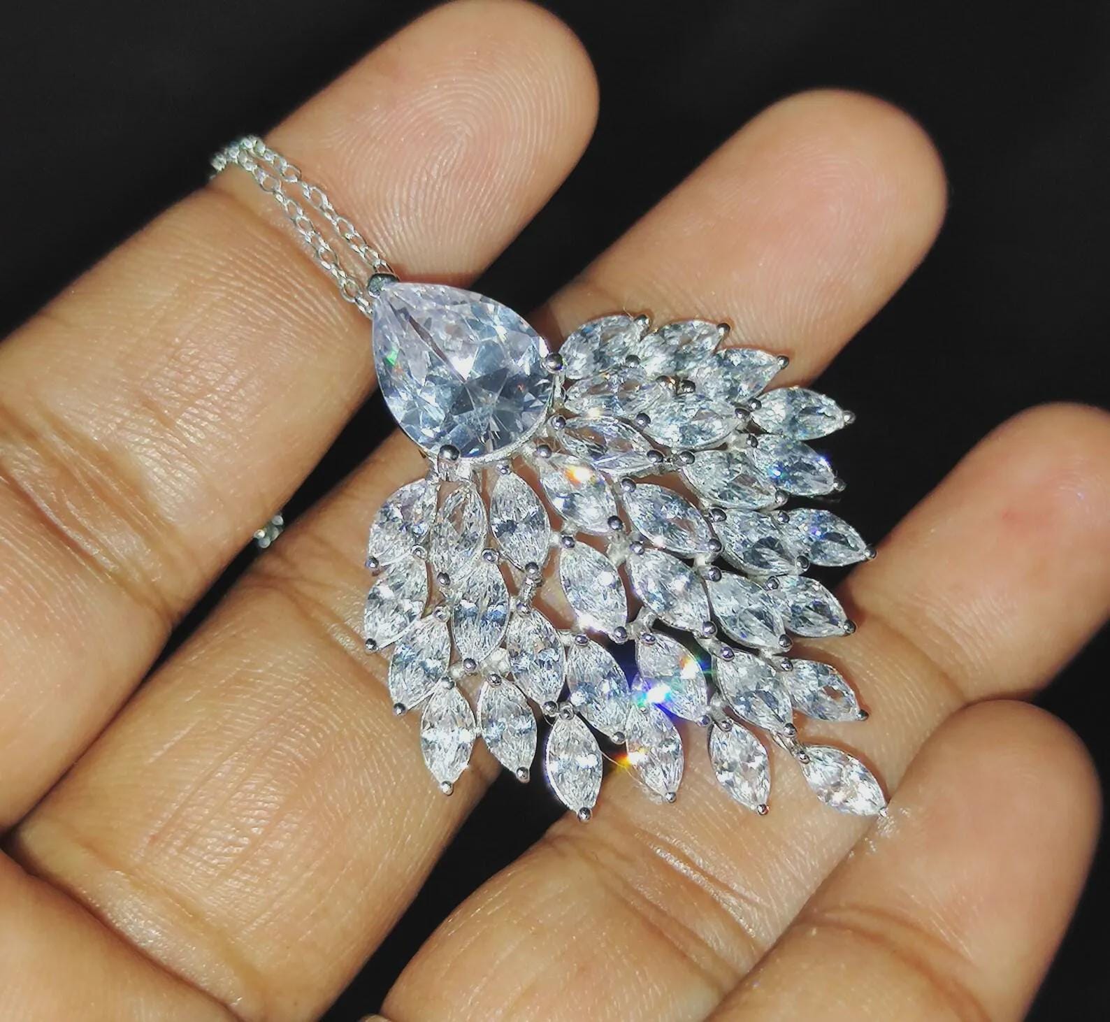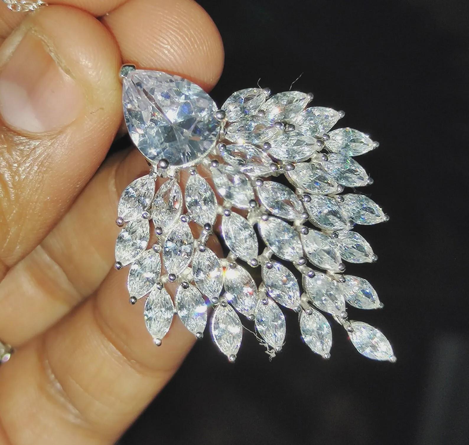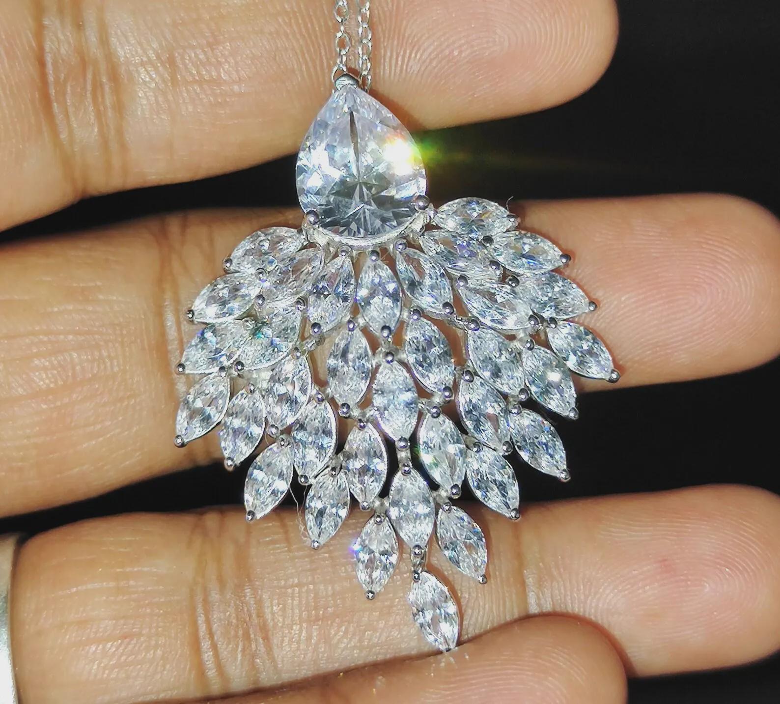 Diamond Pendant Necklace 3Ct Marquise Cut Lab-Created Diamond Cluster Pendant Necklaces Pendant 14K White Gold Plated Diamond Pendant