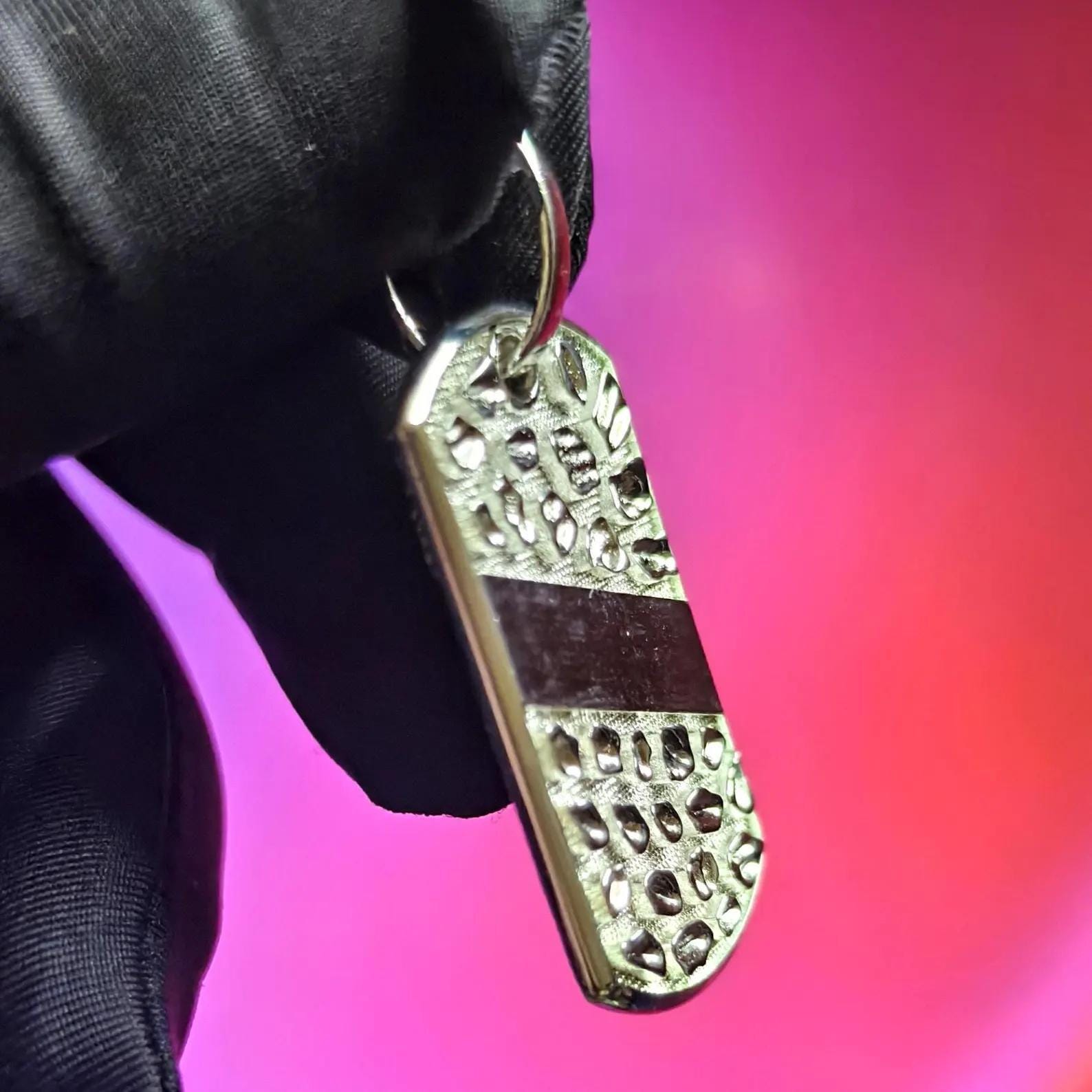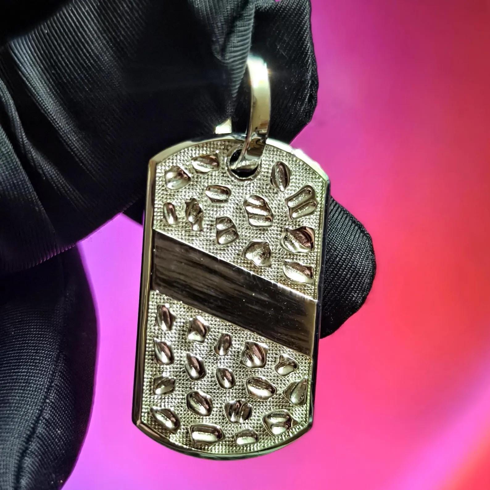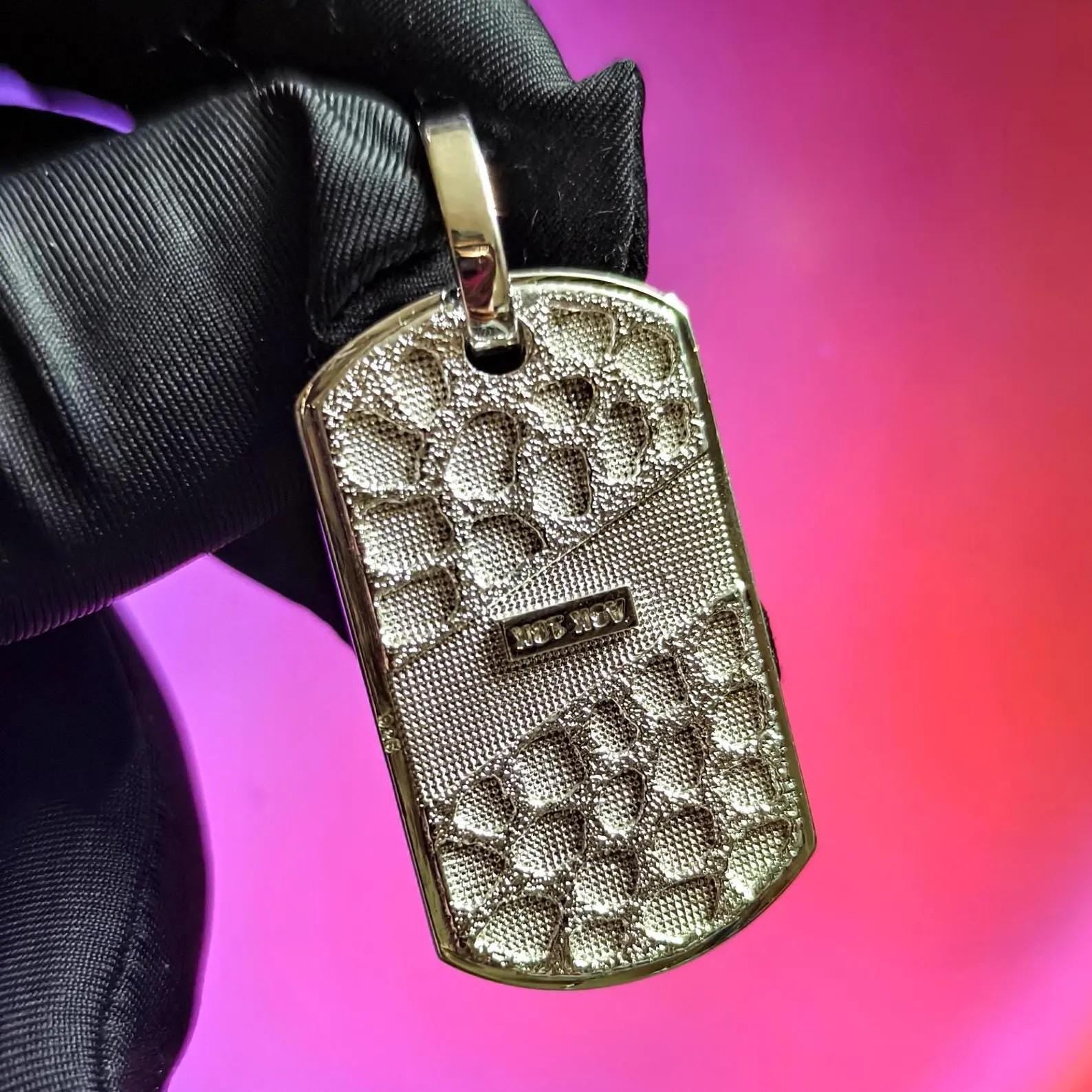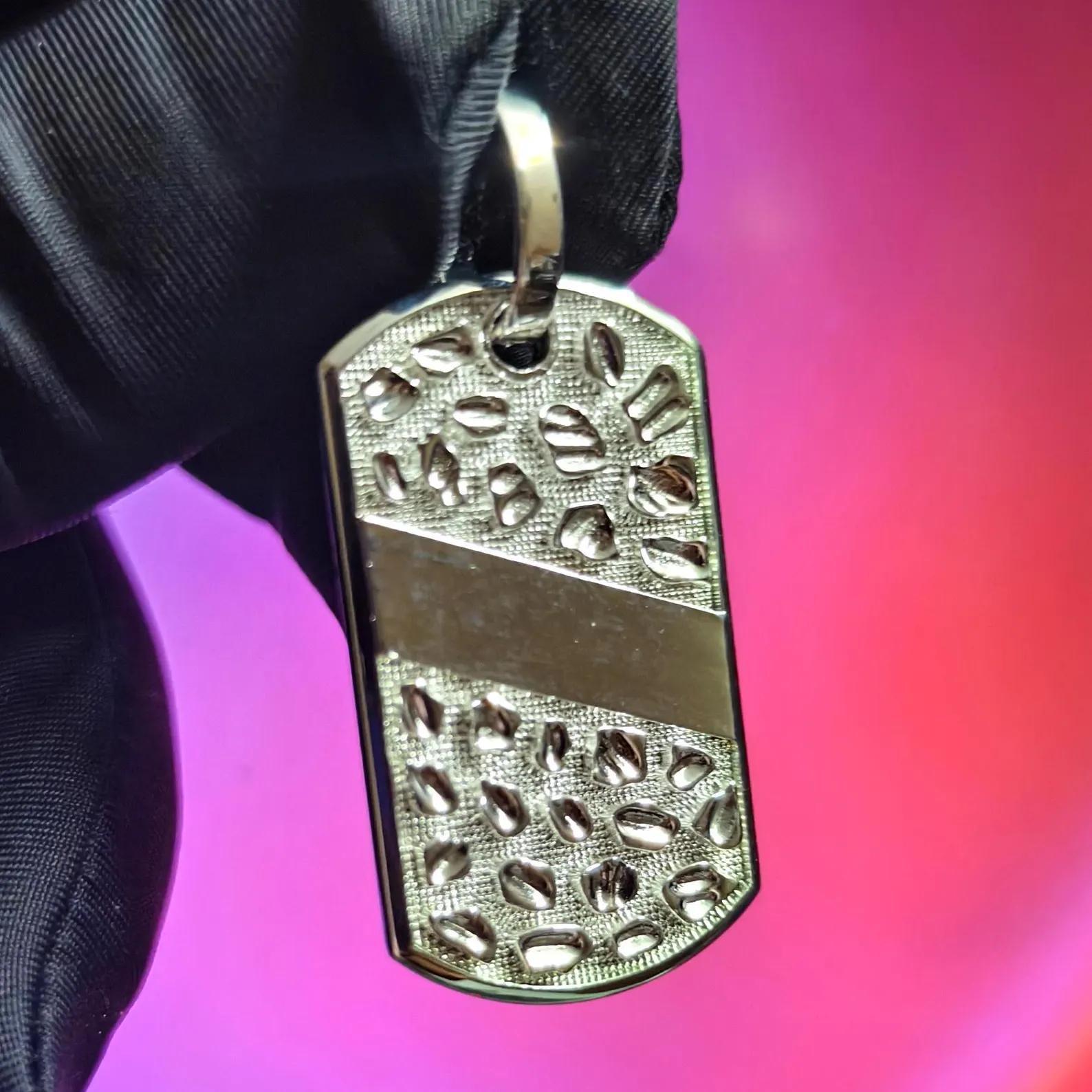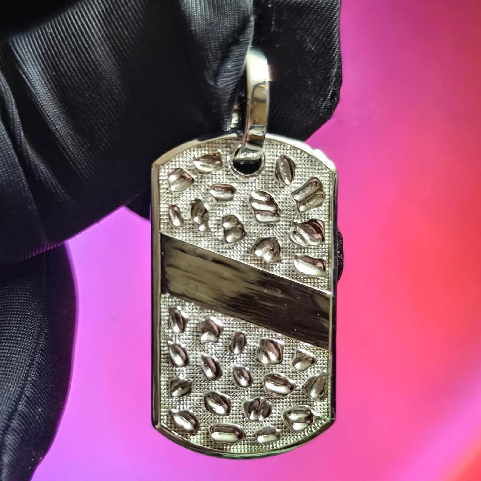 Dog Tag Rectangle Nugget Pendant Necklace 14K White Gold Plated 925 Sterling Silver, Dog Tag Pendant, Rectangle Shape Pendant, For Birthday