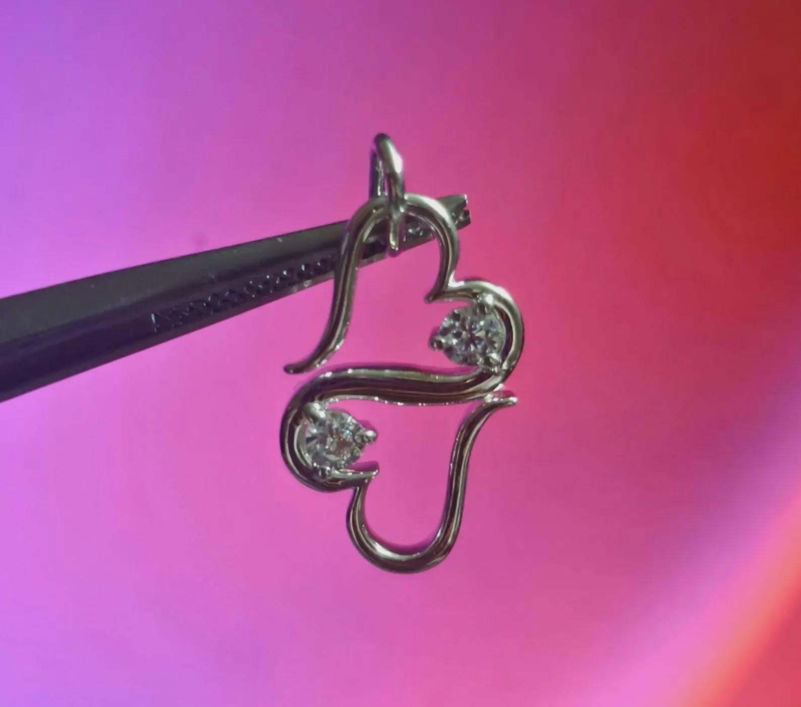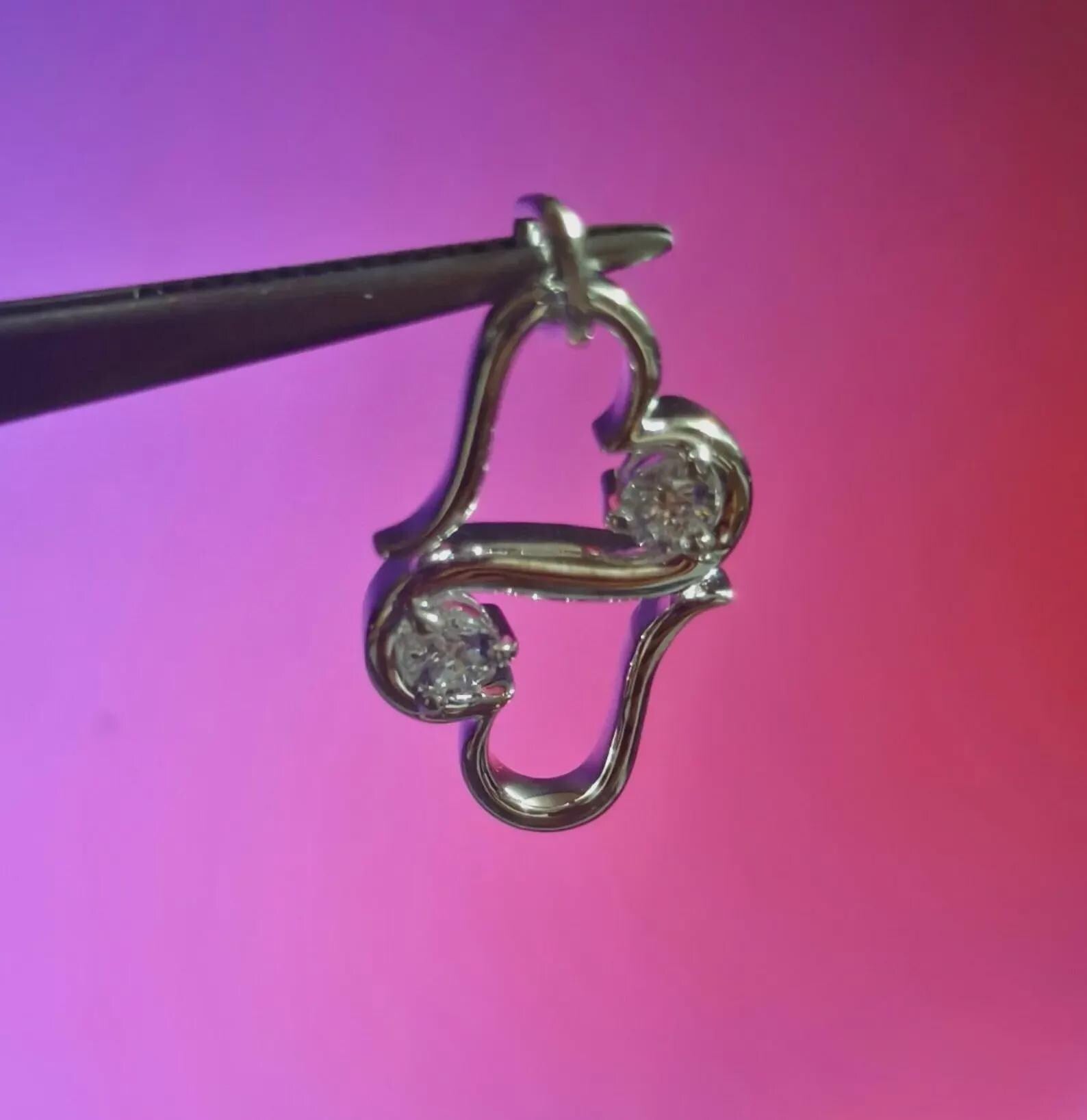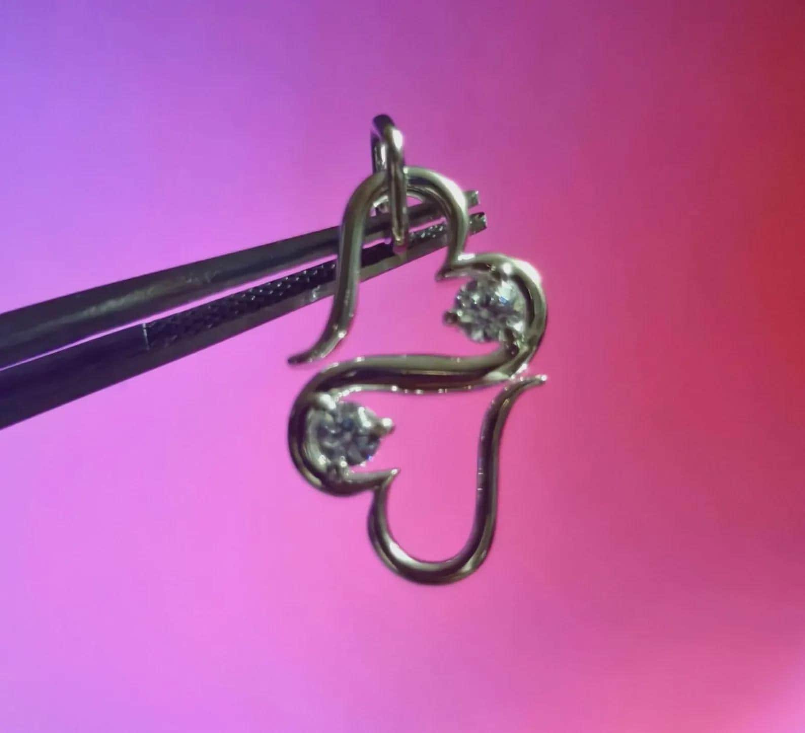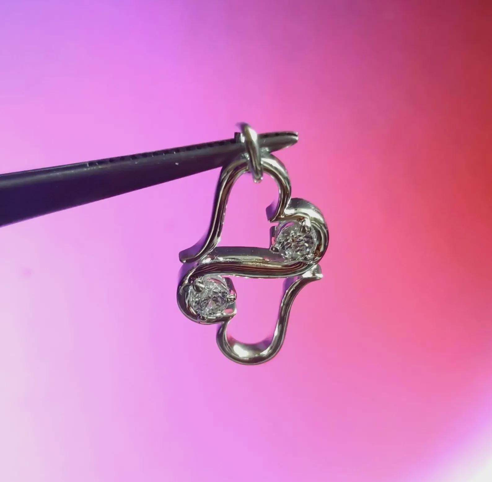 Double Heart Pendant Round Cut Moissanite 14K White Gold Plated 925 Sterling Silver, Solitaire Pendant , Love Pendant