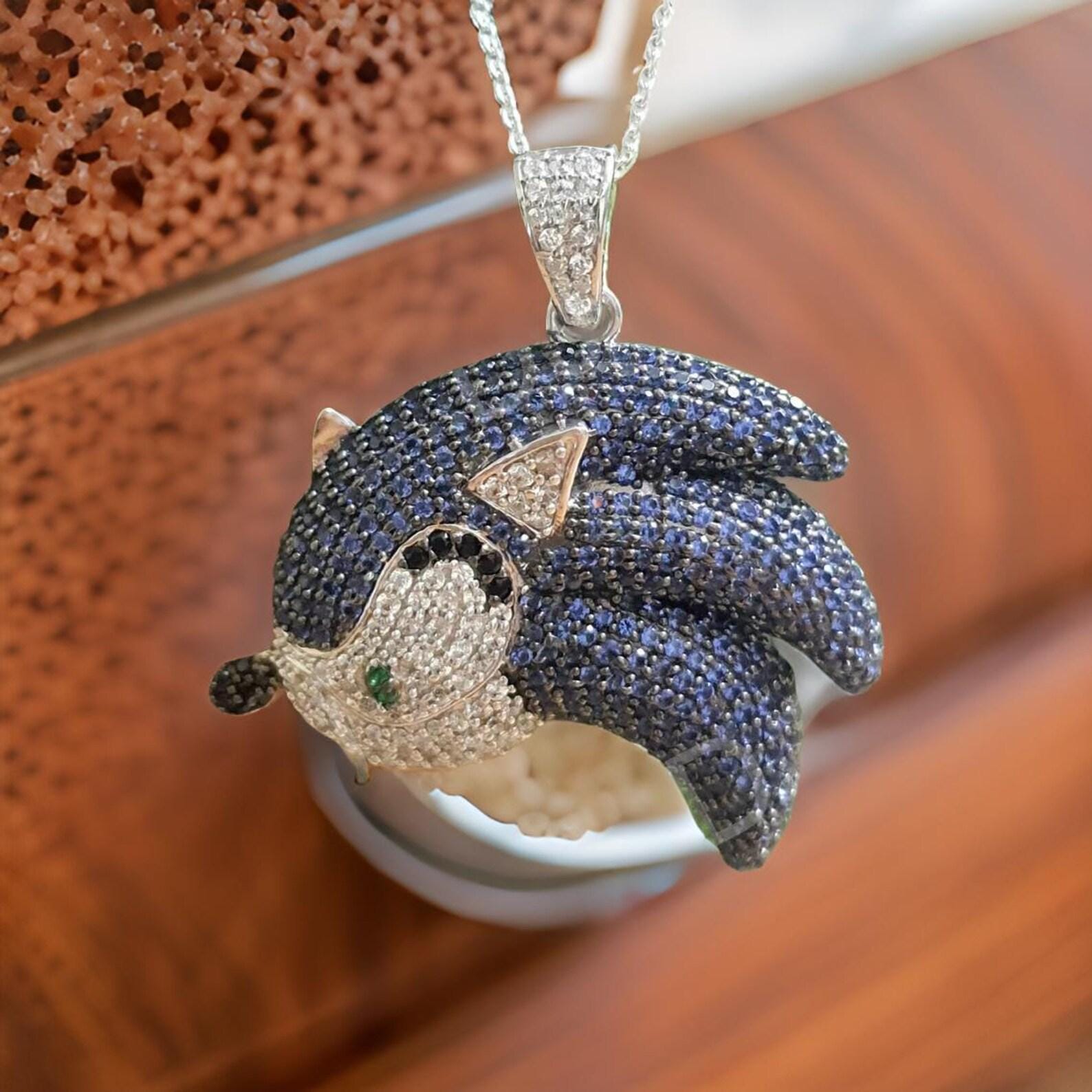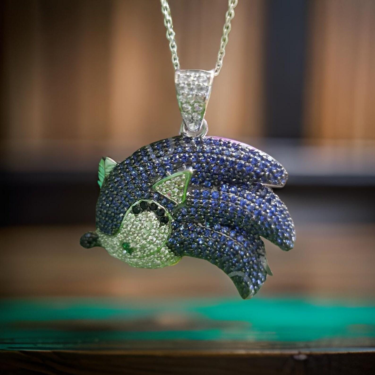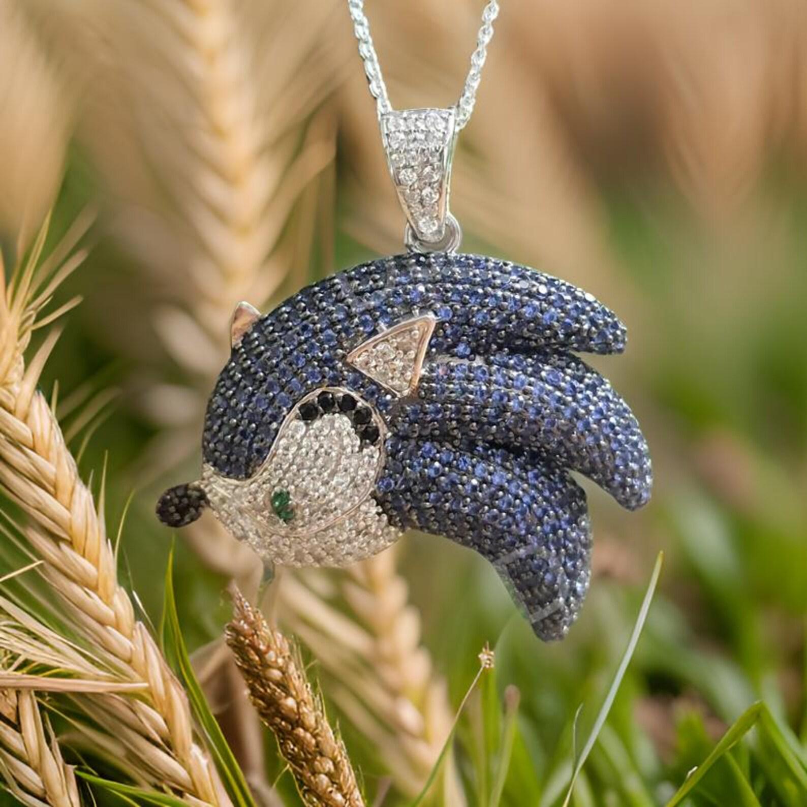 Multi - Color Round Cut Simulated Diamond Hedgehog Pendant Neclace 14K Yellow Gold Plated Free Chain 18" 925 Silver