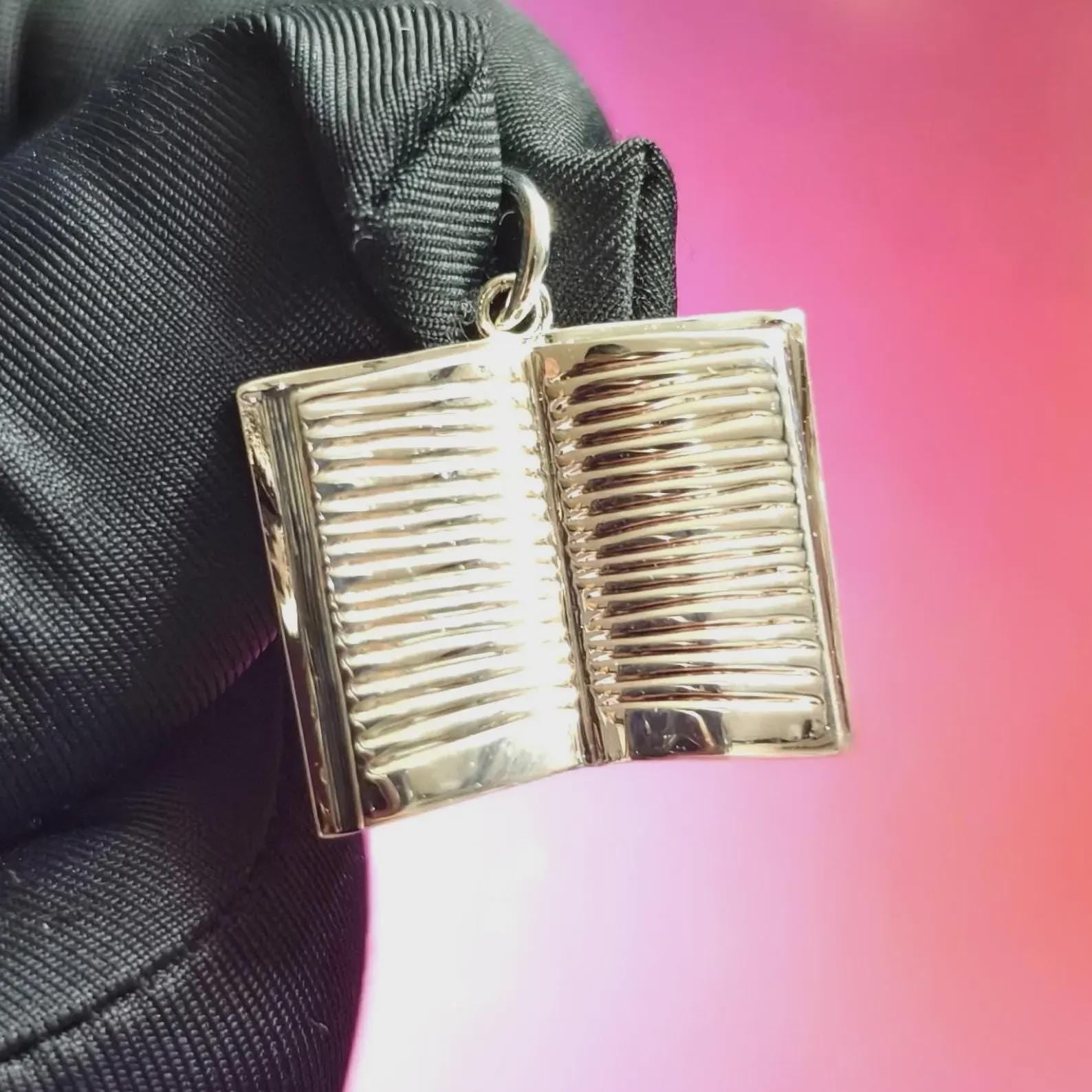 Pendant Open Book Pendant Necklace 14K White Gold Plated 925 Sterling Silver, Book Pendant, Note Book Pendant, For Birthday Or Party Wear
