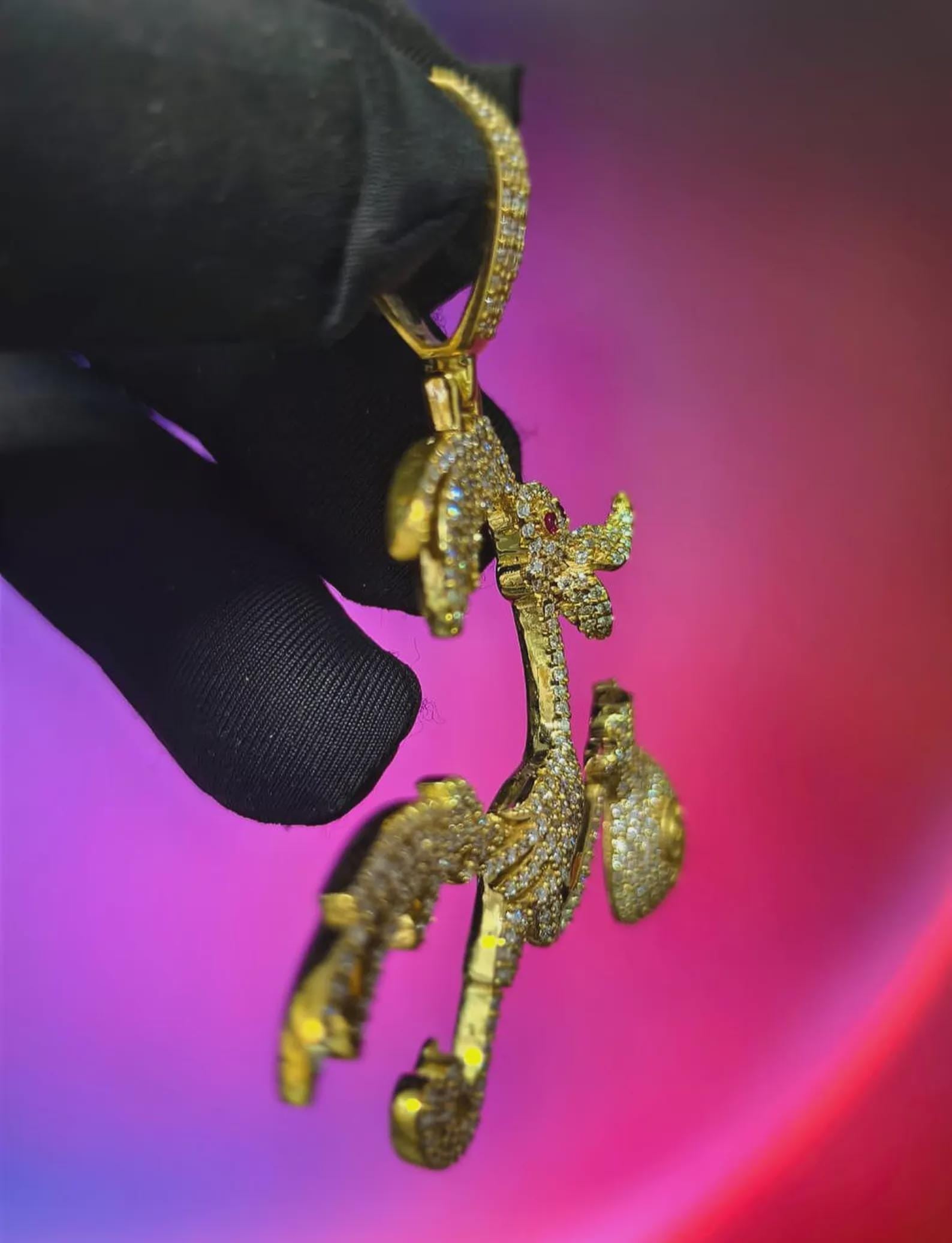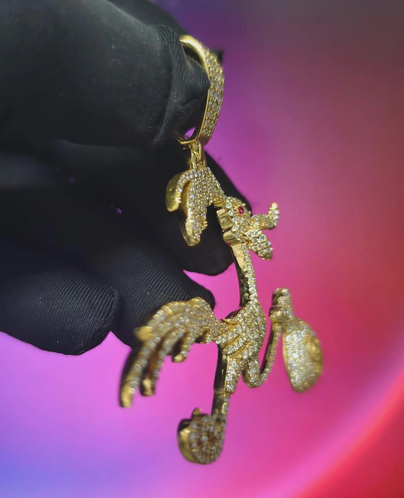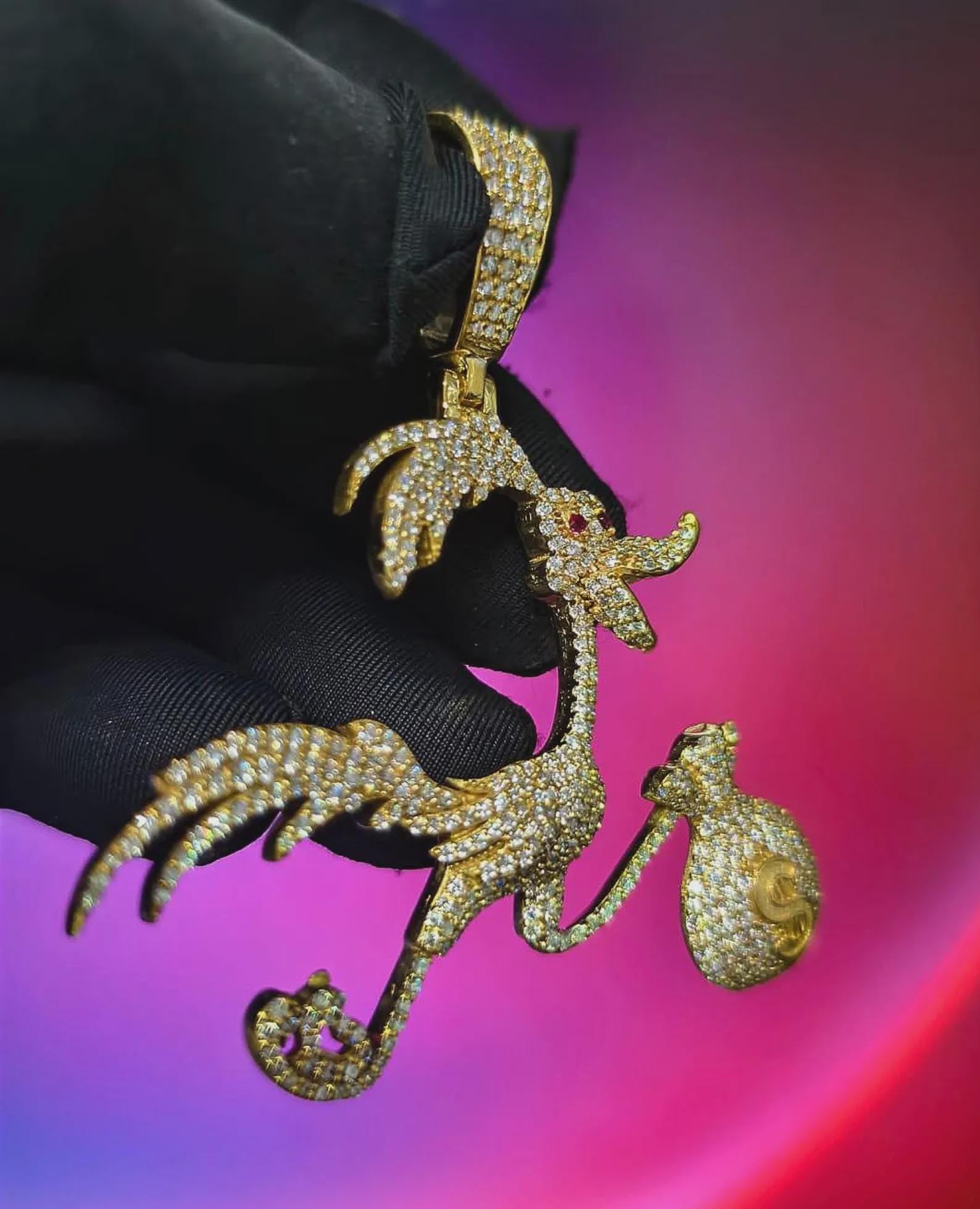Round Cut Moissanite Duck With Money Bag Pendant Hip Hop Bird Pendant 14K Yellow Gold Plated 925 Sterling Silver Free Chain
