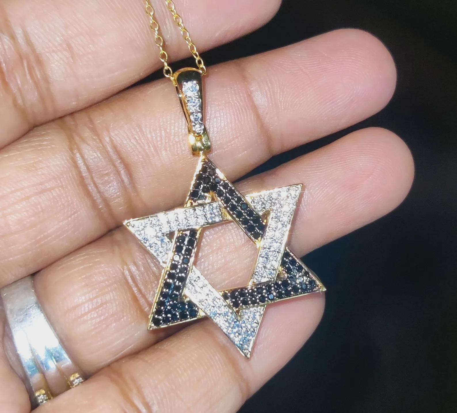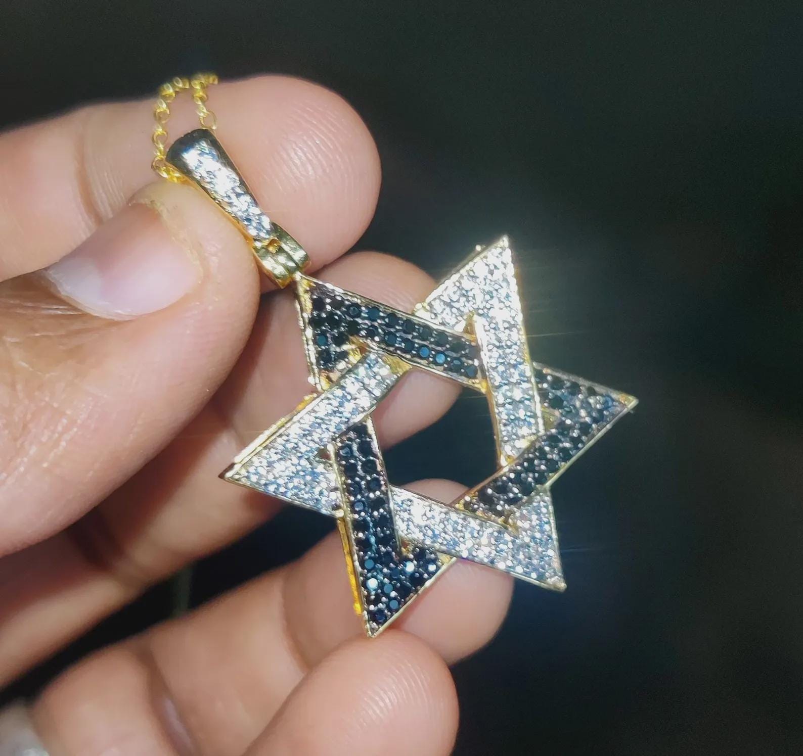 Round Cut Simulated Black and White Diamond Star of David Pendant 14K Yellow Gold Plated Pendant Gift