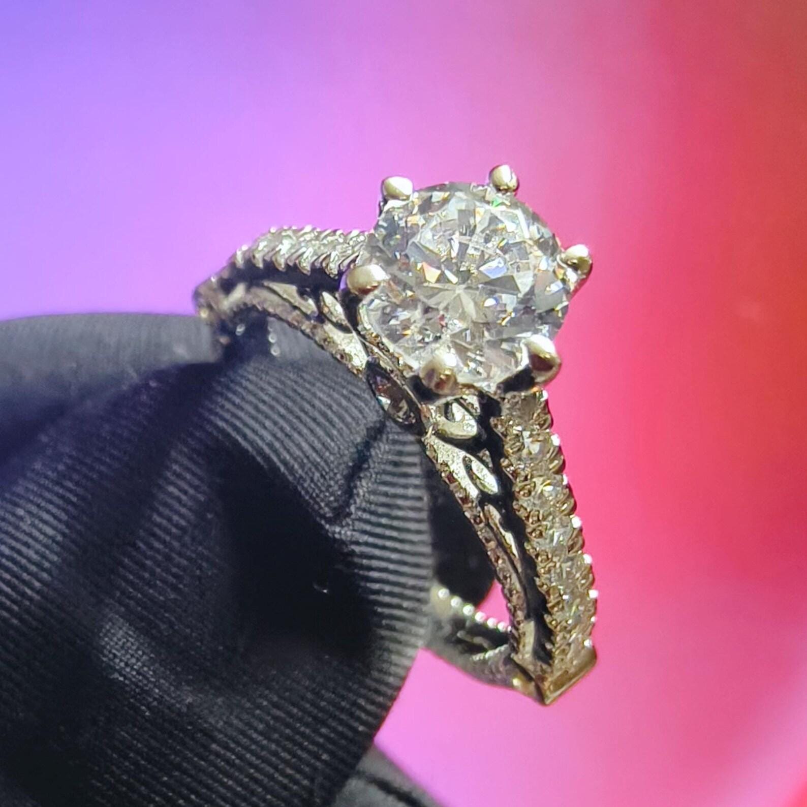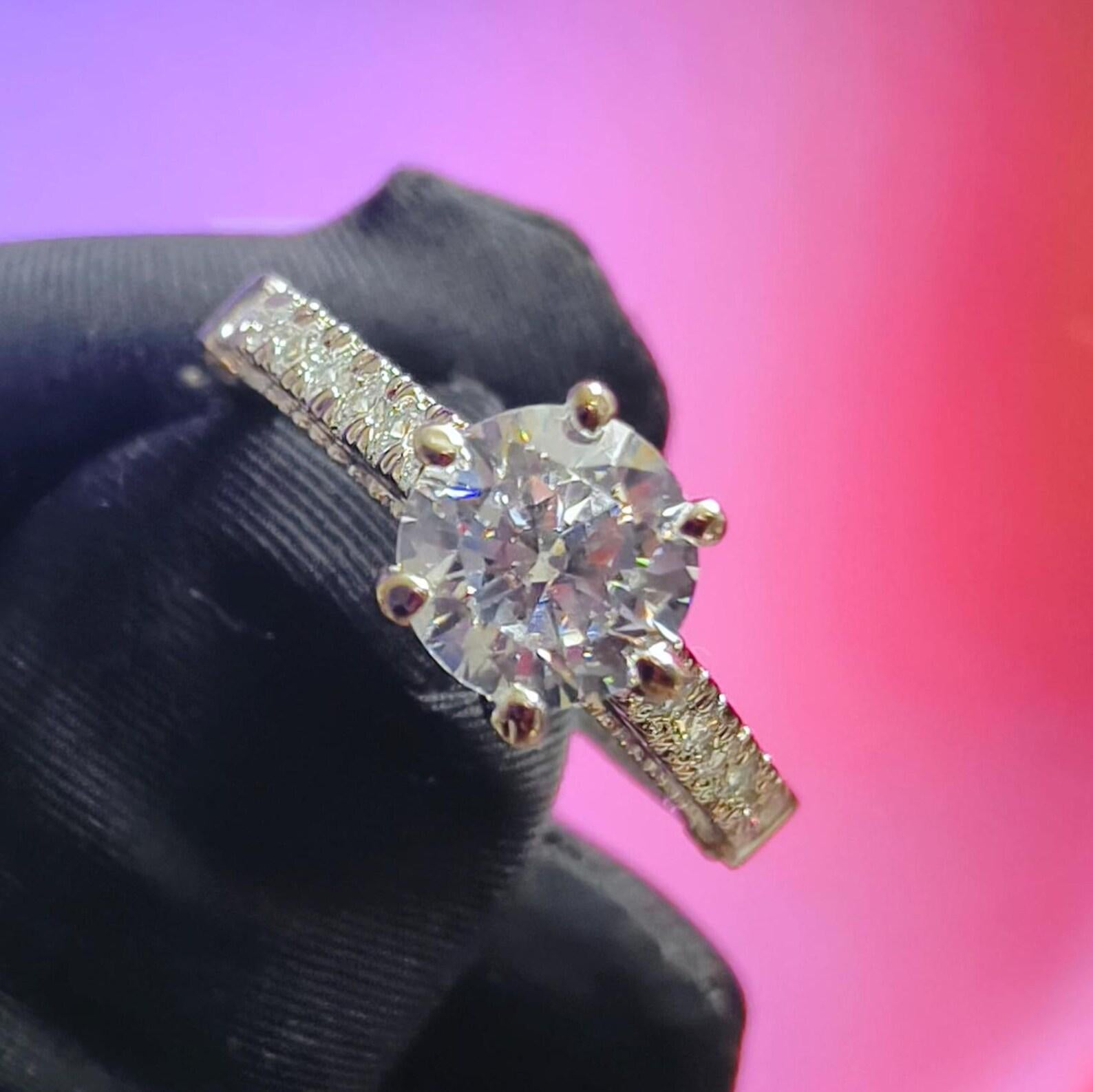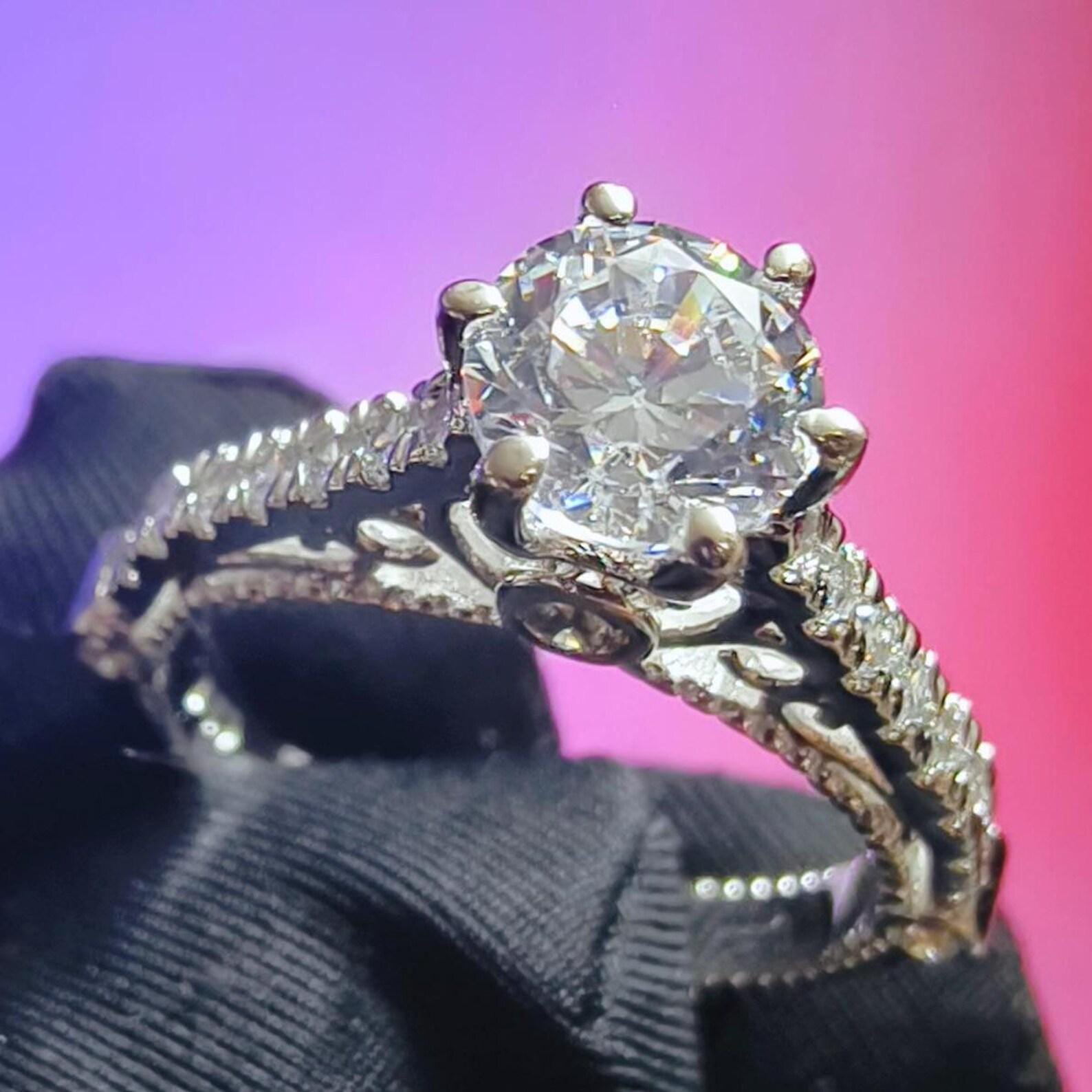 Round Cut Simulated White Diamond Wedding Engagement Anniversary Ring 14k White Gold Plated- 925 Silver, Gift for Her