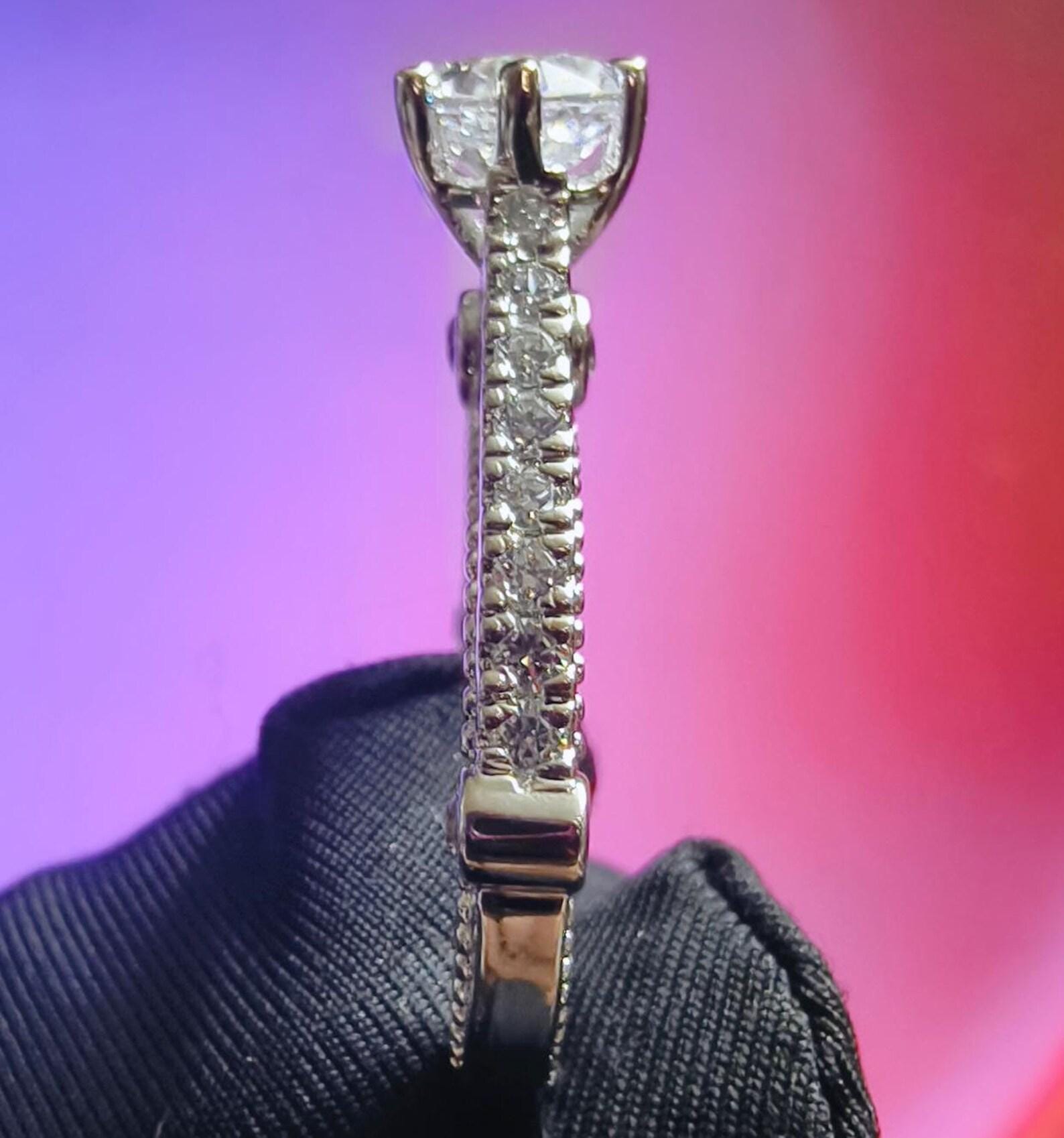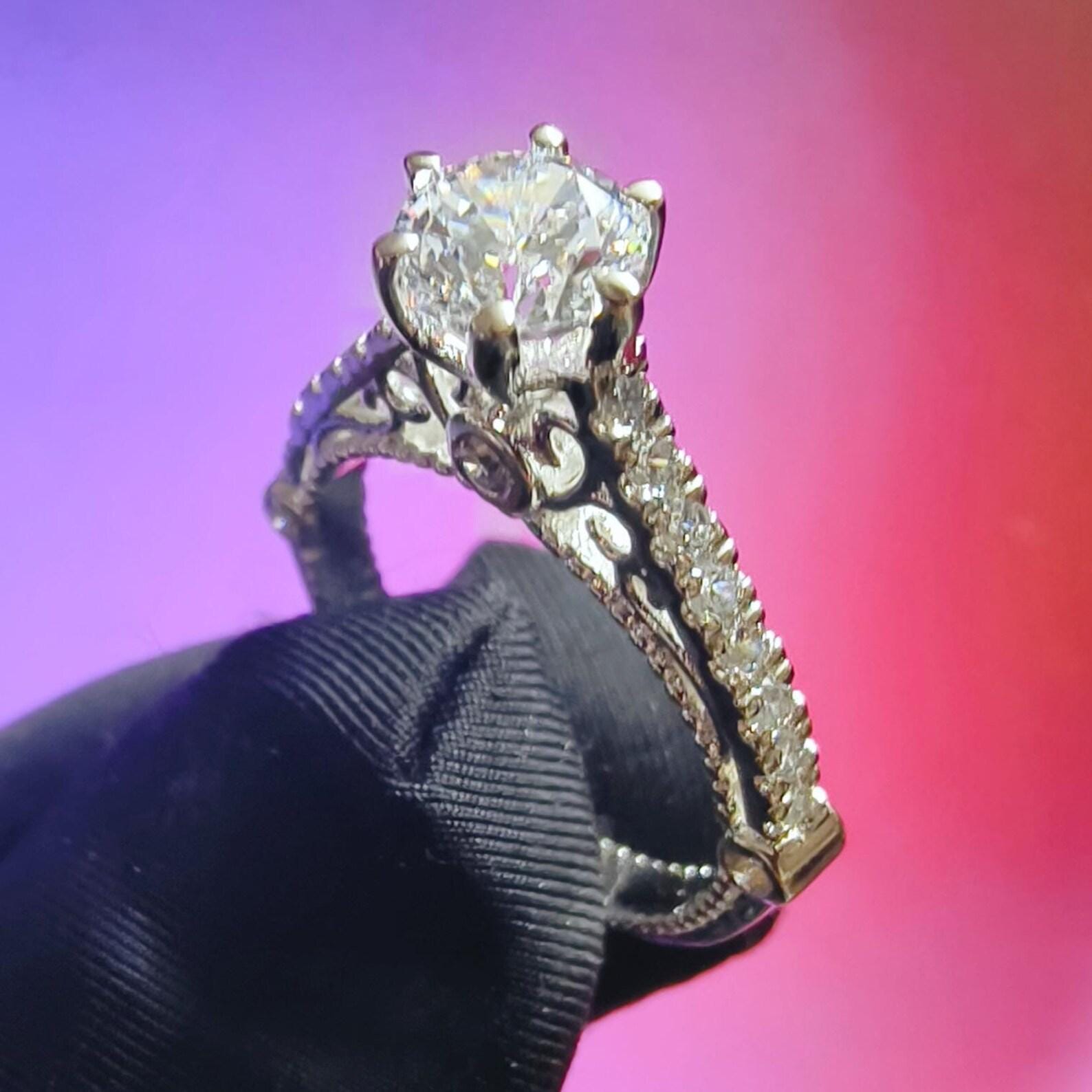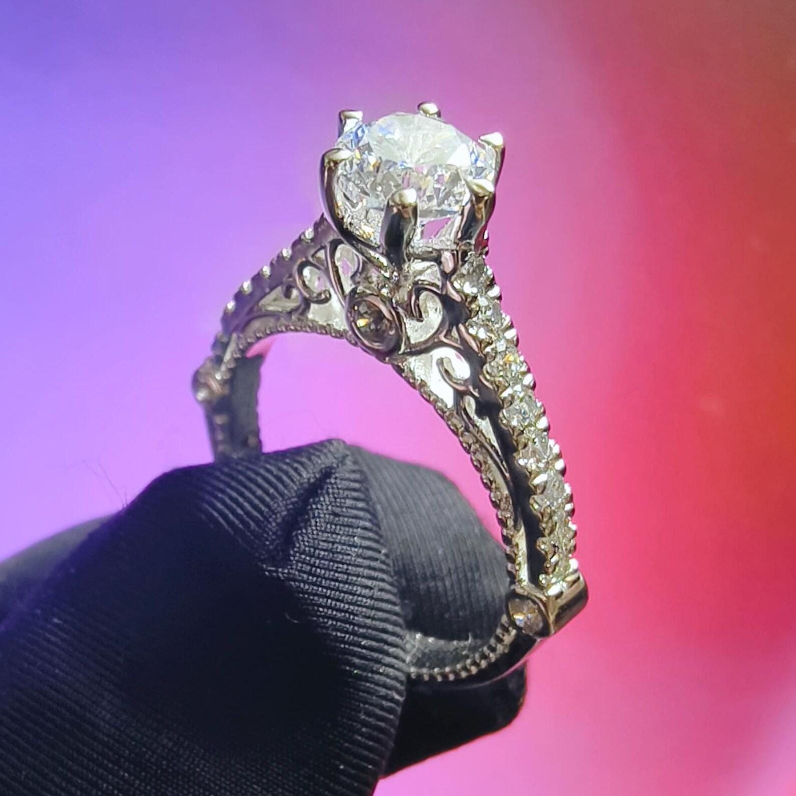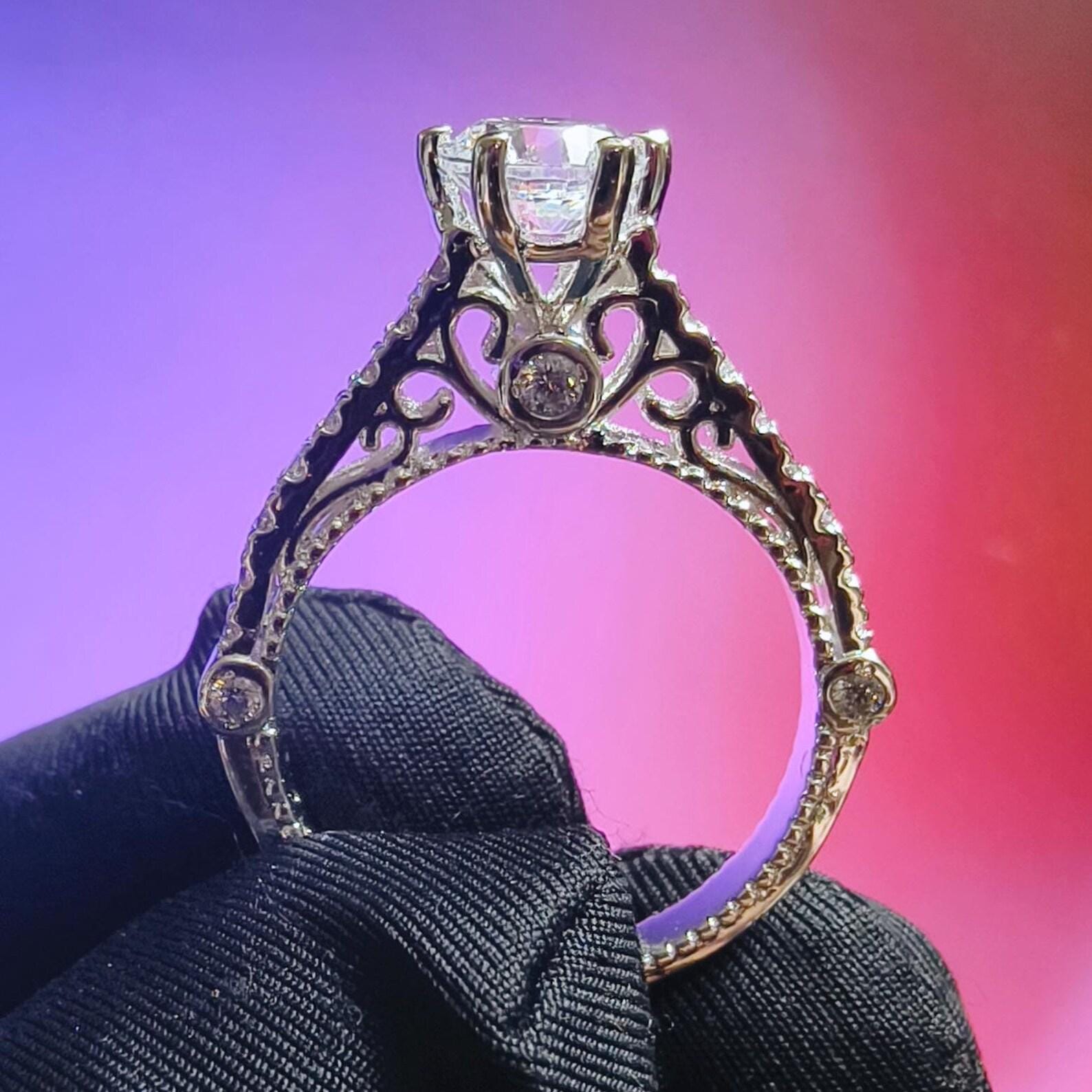 Round Cut Simulated White Diamond Wedding Engagement Anniversary Ring 14k White Gold Plated- 925 Silver, Gift for Her